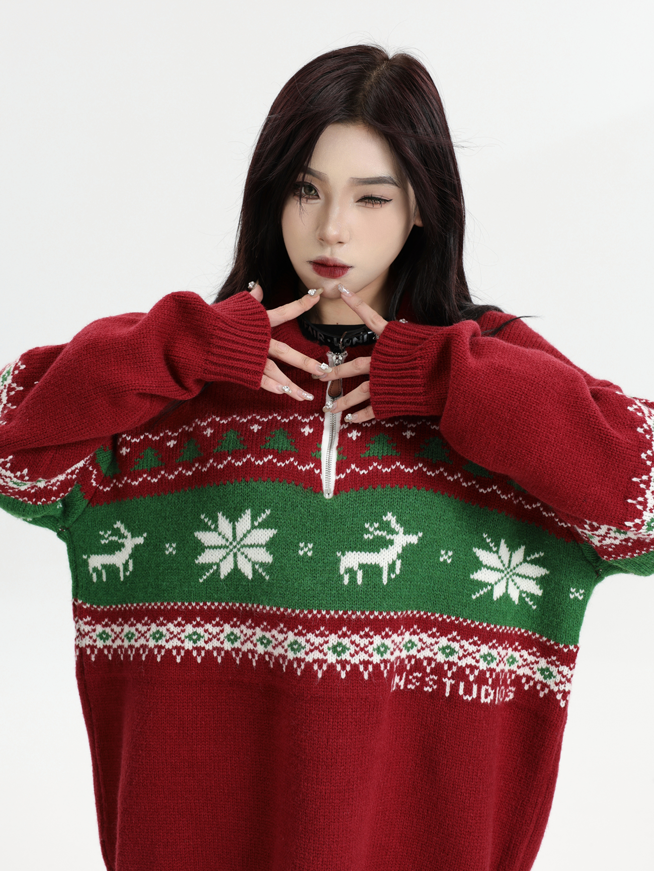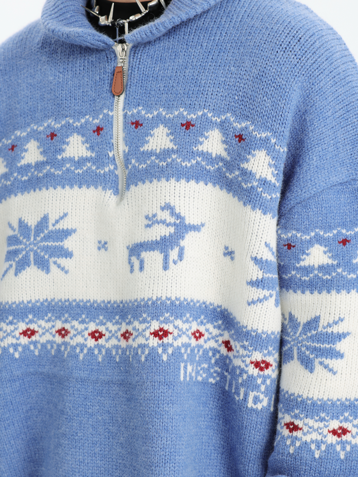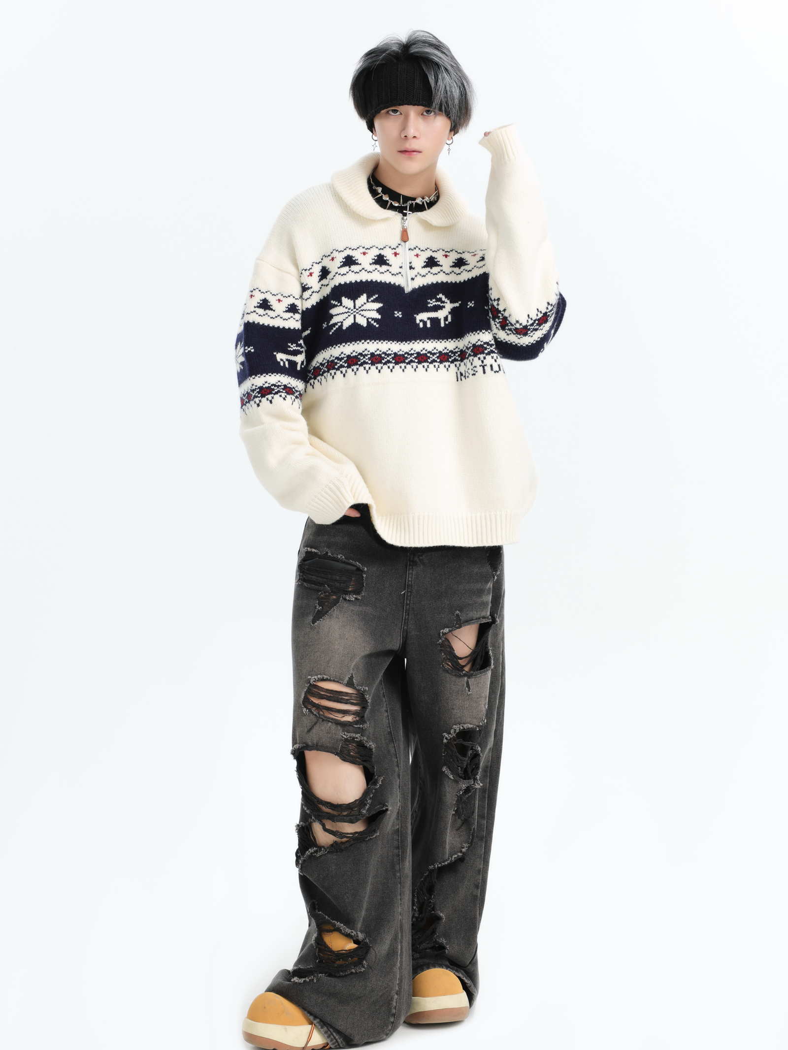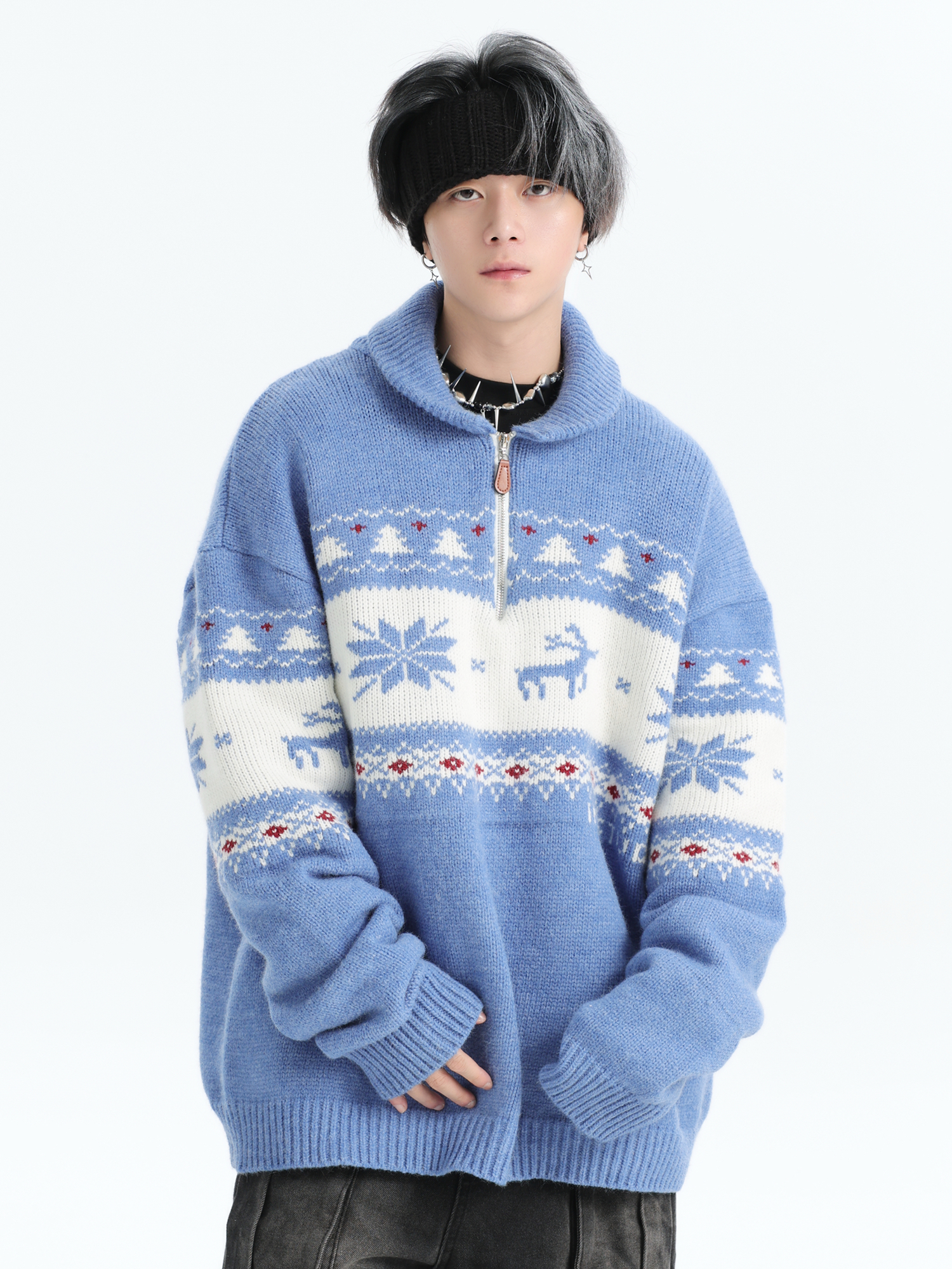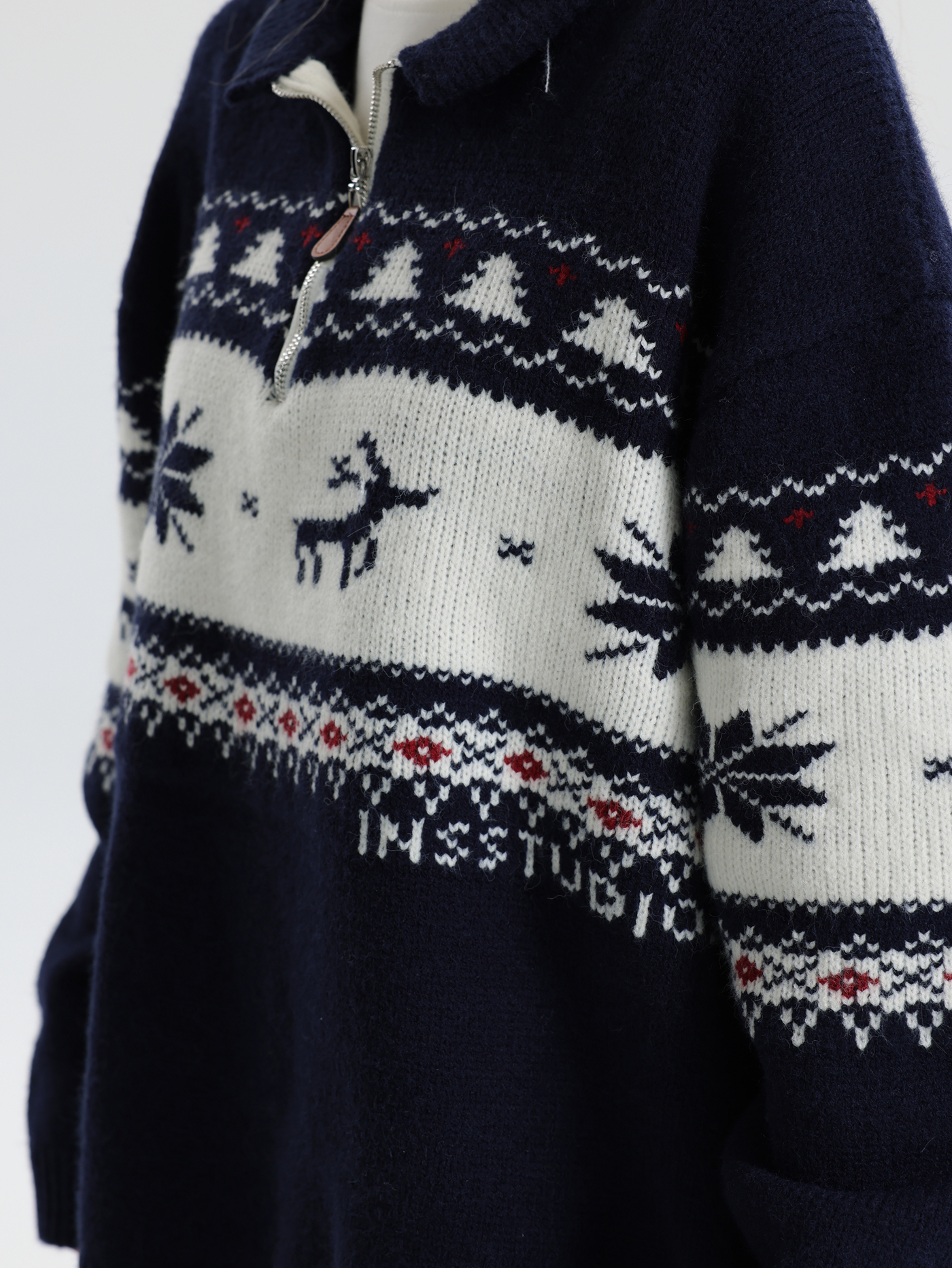 INSstudios 國潮牌情侶美式元寶領聖誕費爾島提花毛衣秋冬針織衫