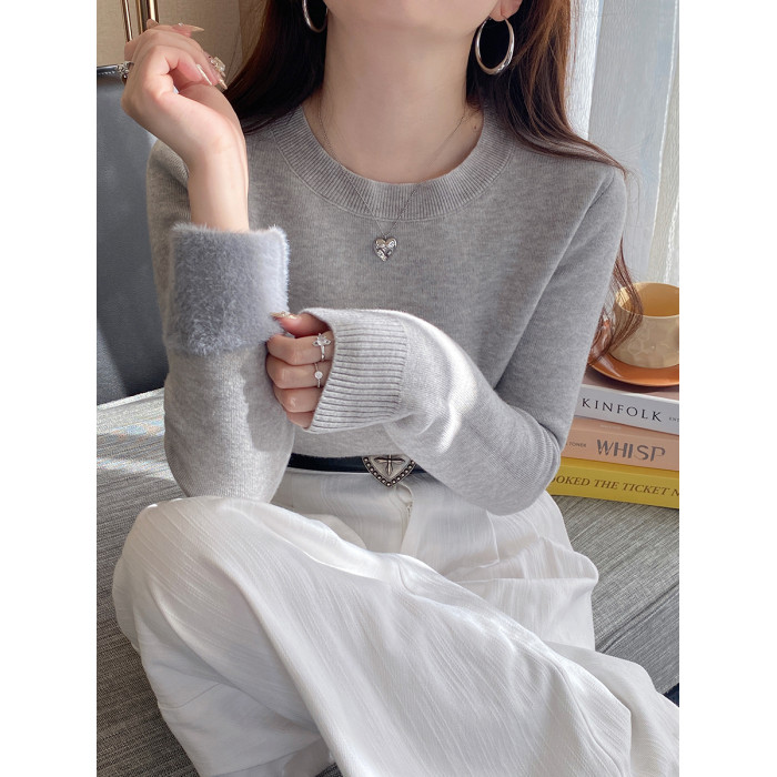加絨打底衫女2025新款秋冬圓領毛衣加厚保暖低領內搭冬季針織上衣