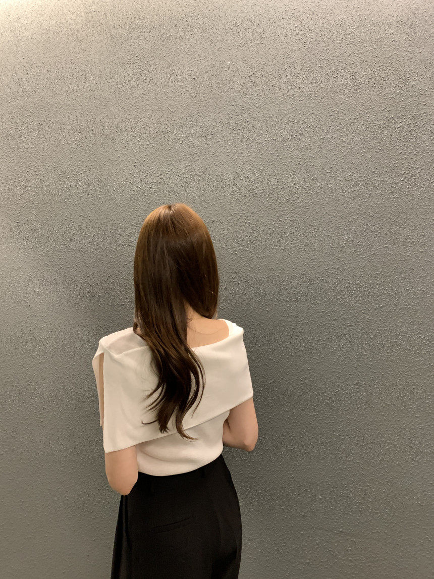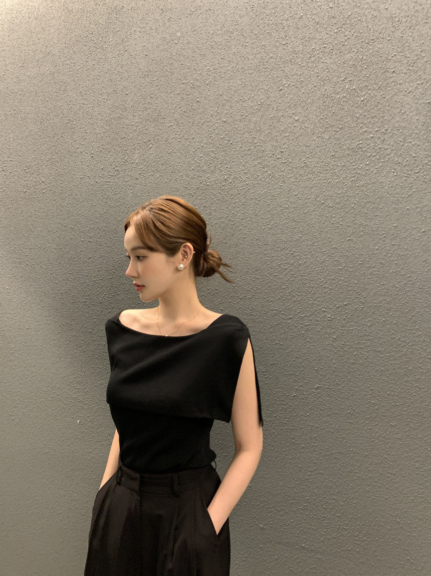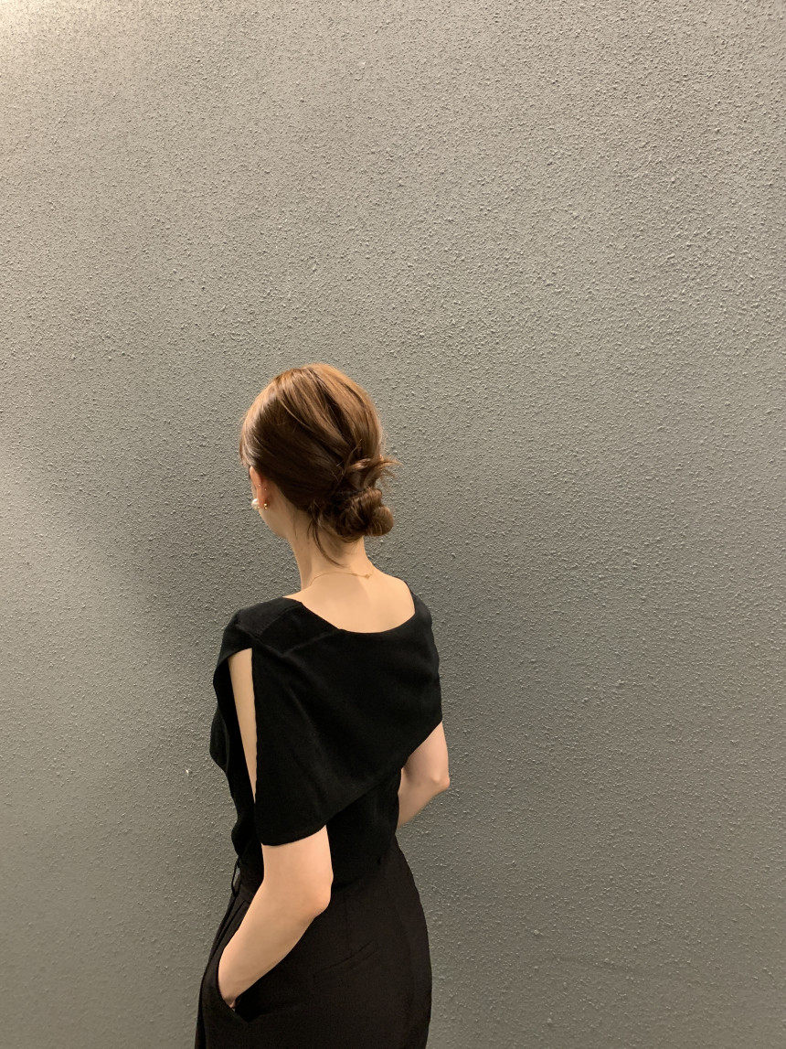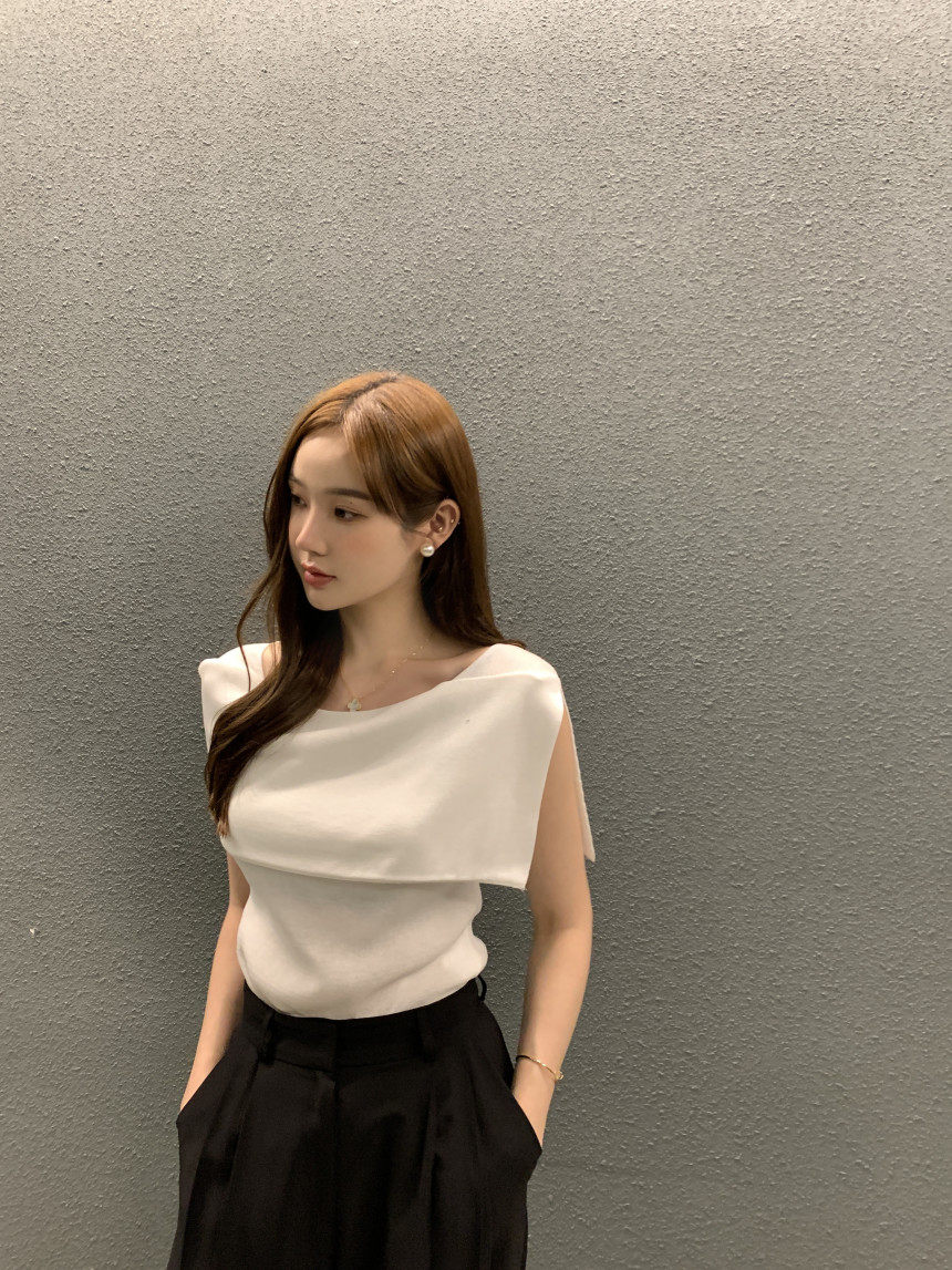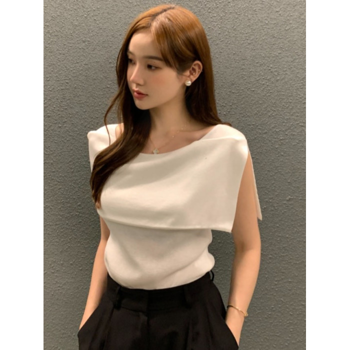 韓國chic小衆氣質大翻領側開叉設計修身顯瘦條紋撞色針織衫上衣女