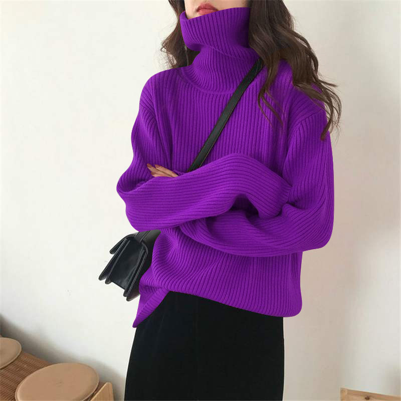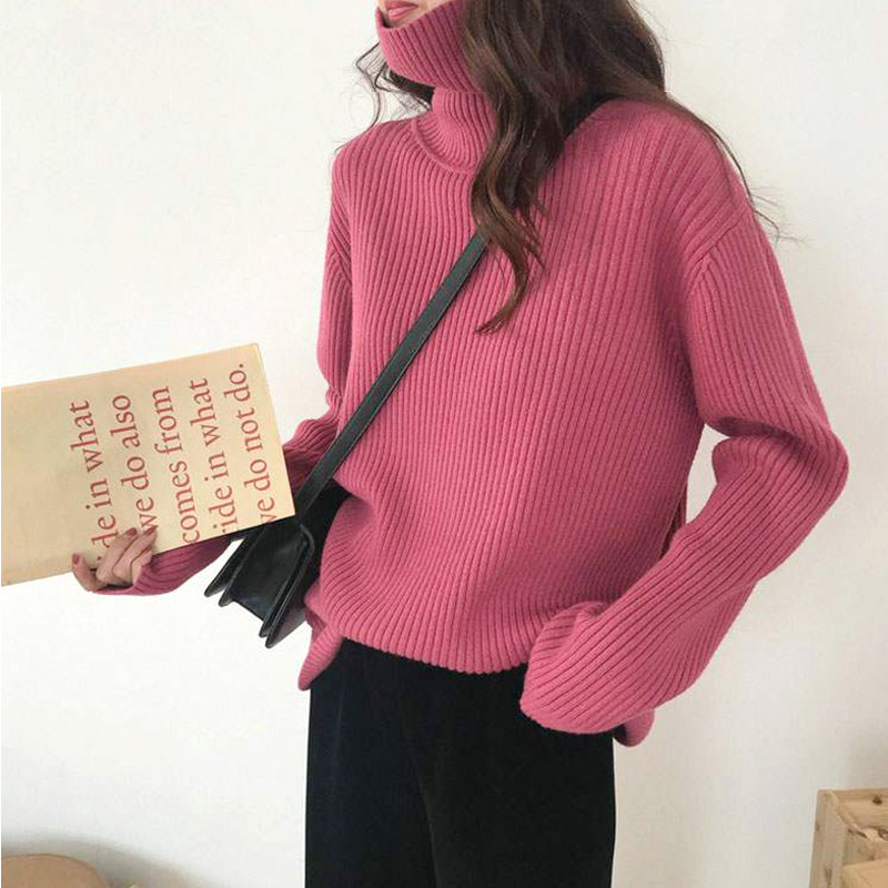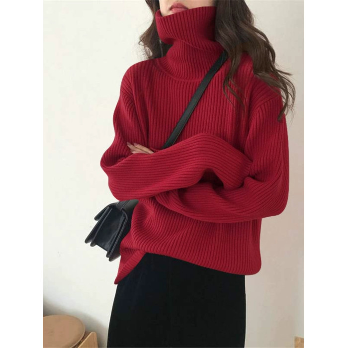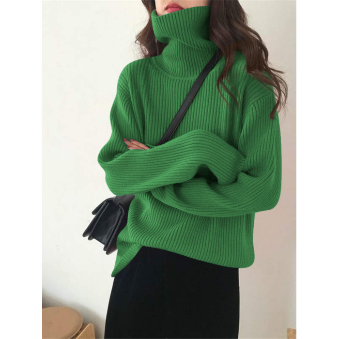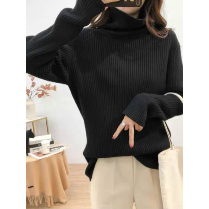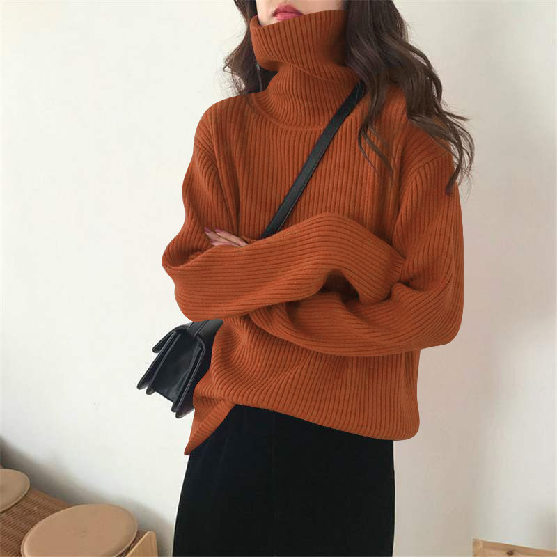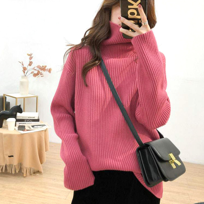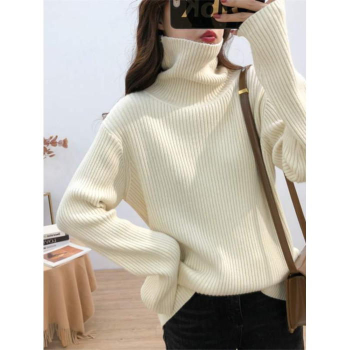 冬季加厚高領毛衣女套頭慵懶風2025新款時尚洋氣寬松坑條打底衫女