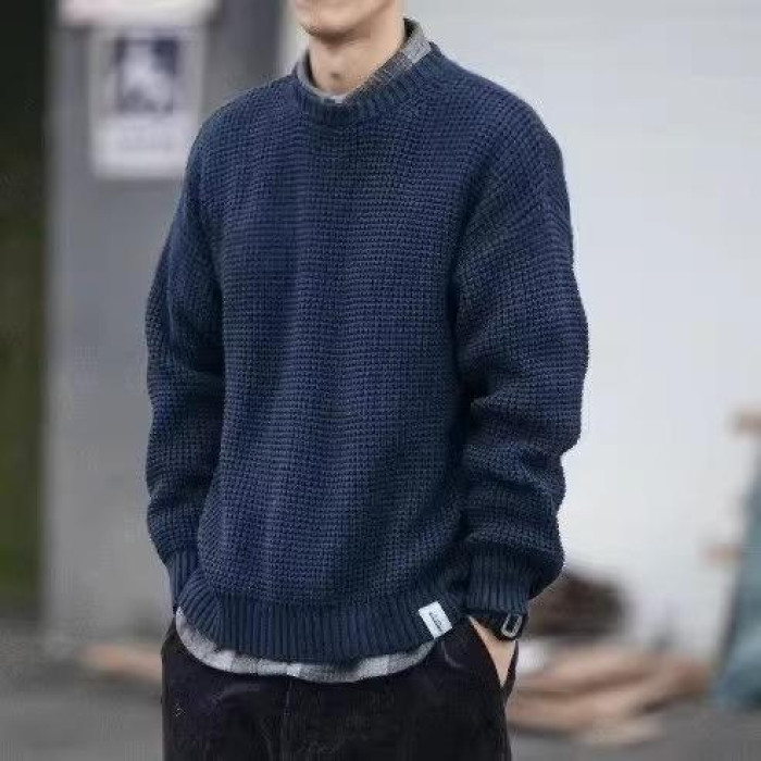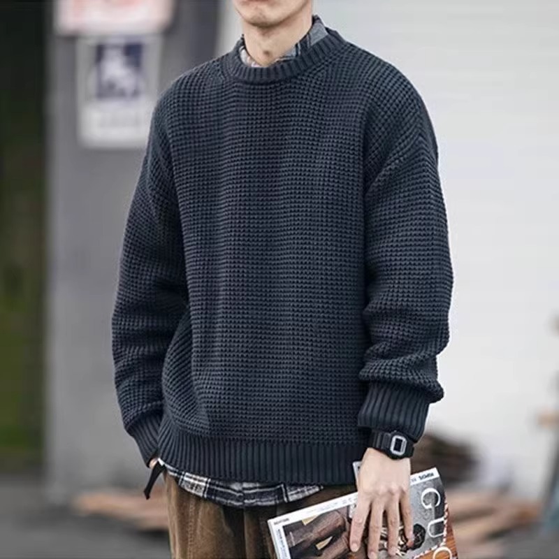 毛衣男士冬季寬松慵懶風日系復古線衣外套加厚簡約內搭打底針織衫