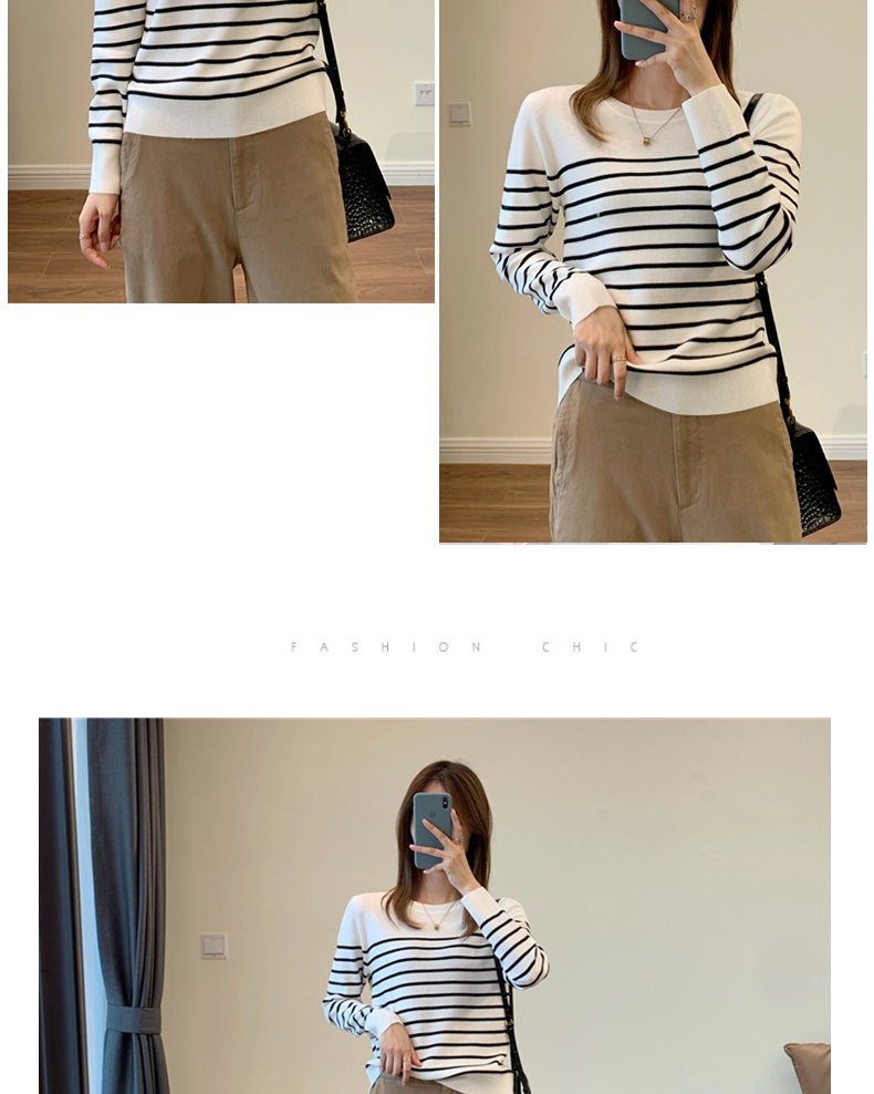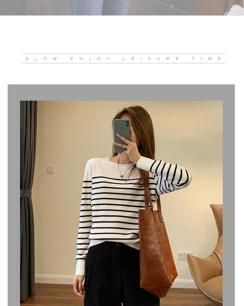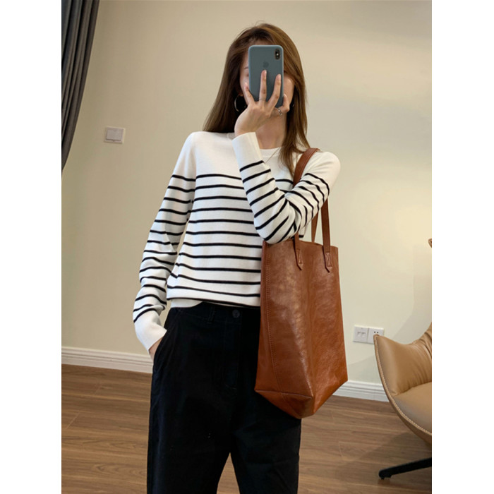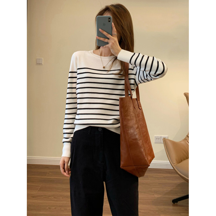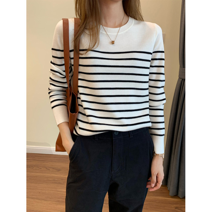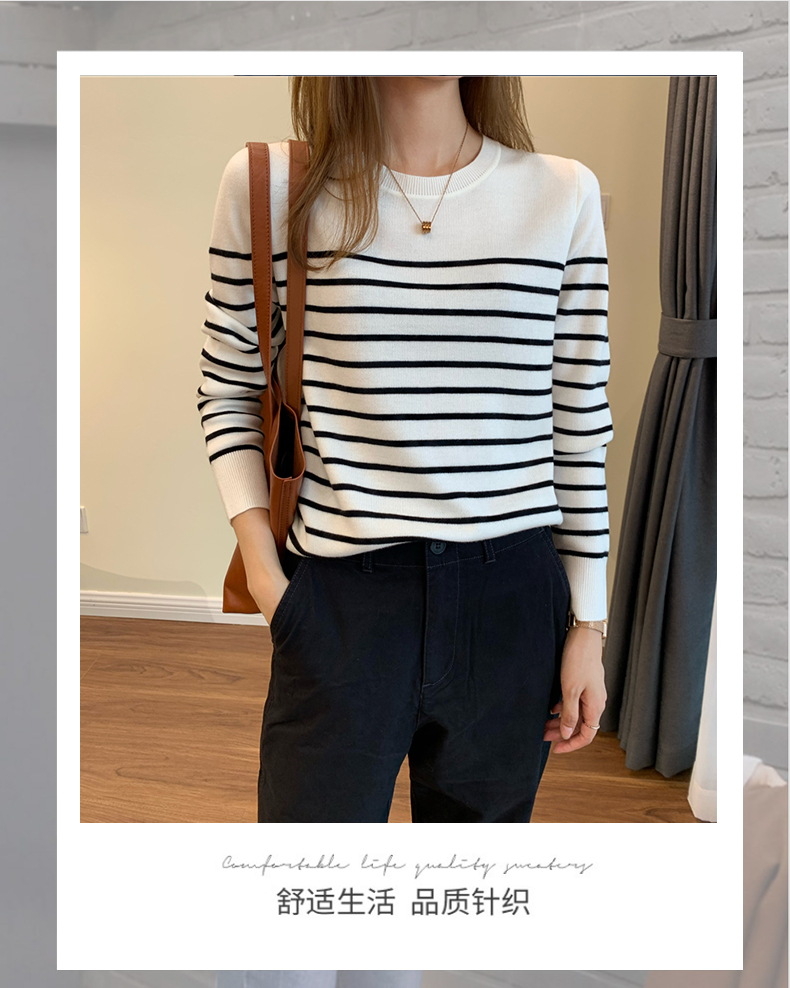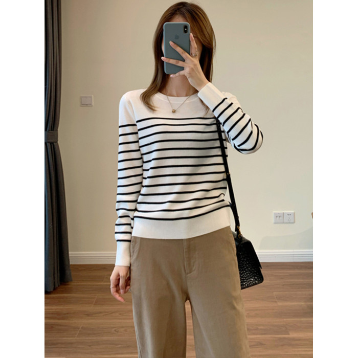 黑白條紋針織衫長袖秋季毛衣打底衫女秋冬2025新款內搭可外穿上衣