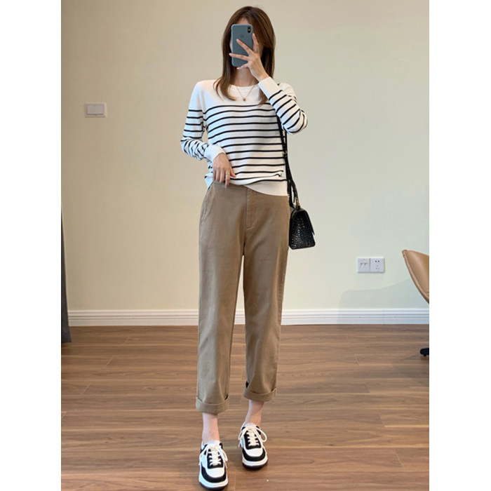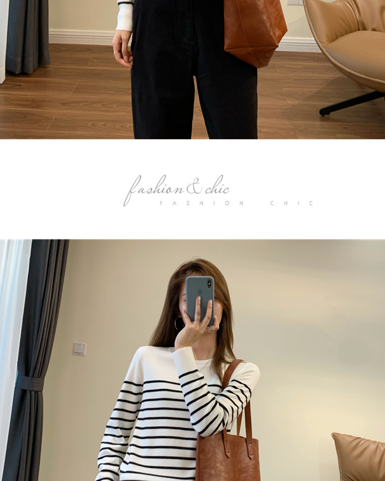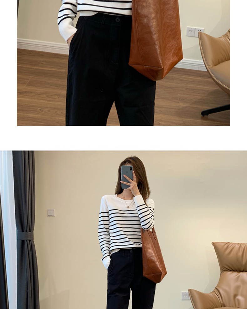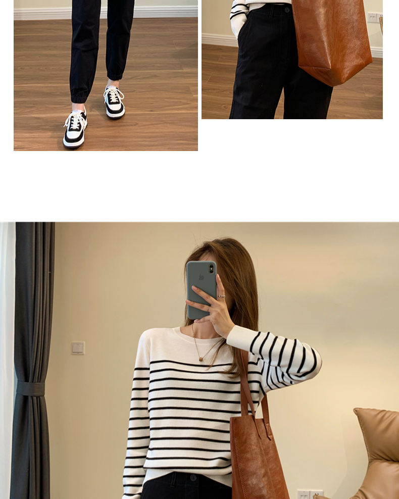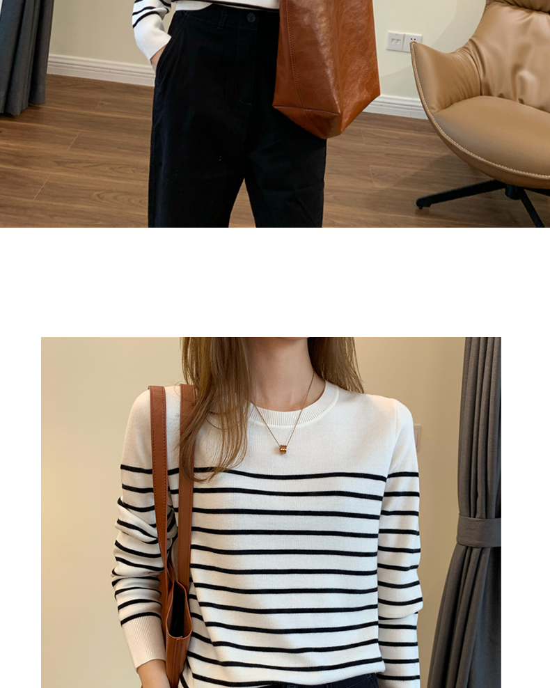 黑白條紋針織衫長袖秋季毛衣打底衫女秋冬2025新款內搭可外穿上衣