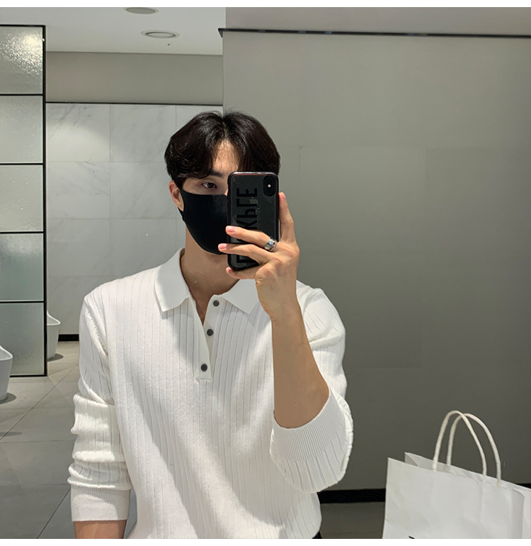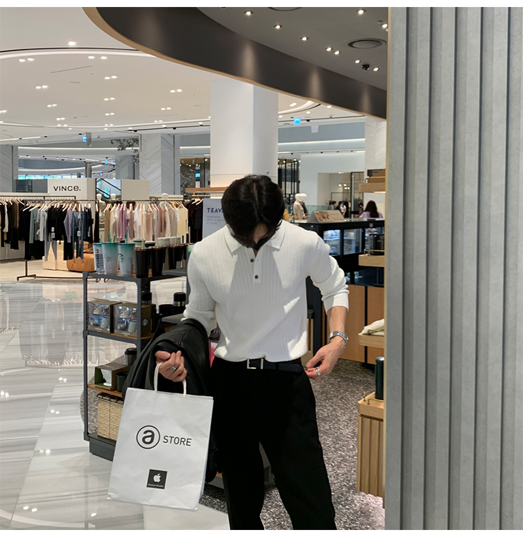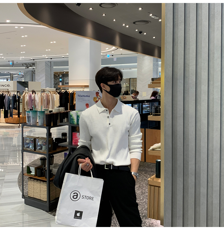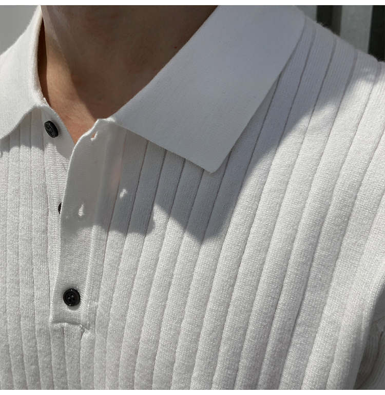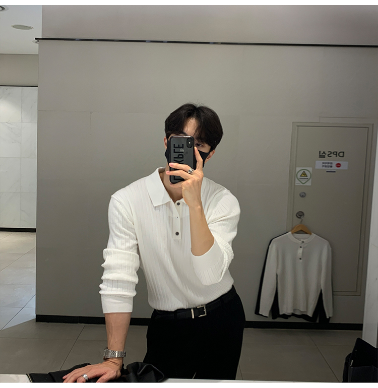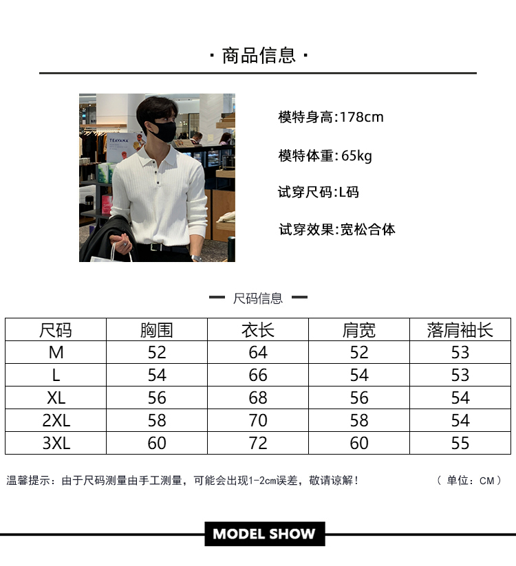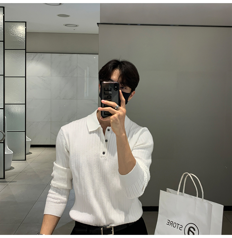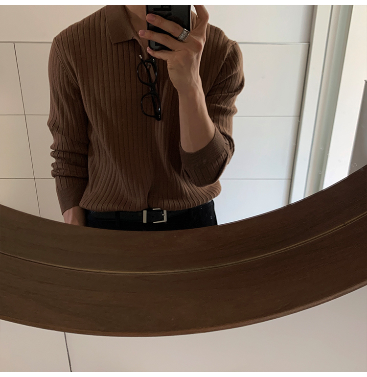 韓國秋冬高級感男士毛衣韓版寬松休閒純色翻領套頭長袖針織polo衫