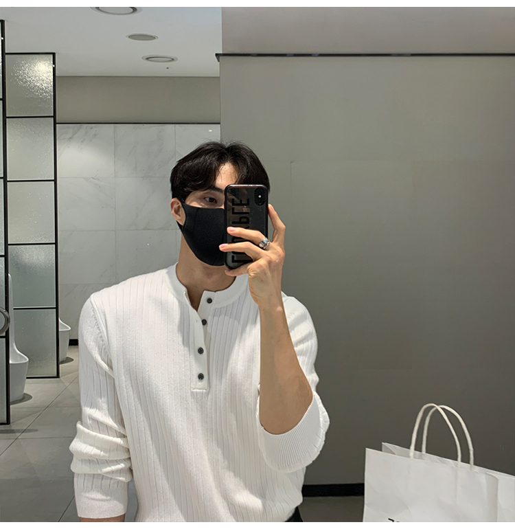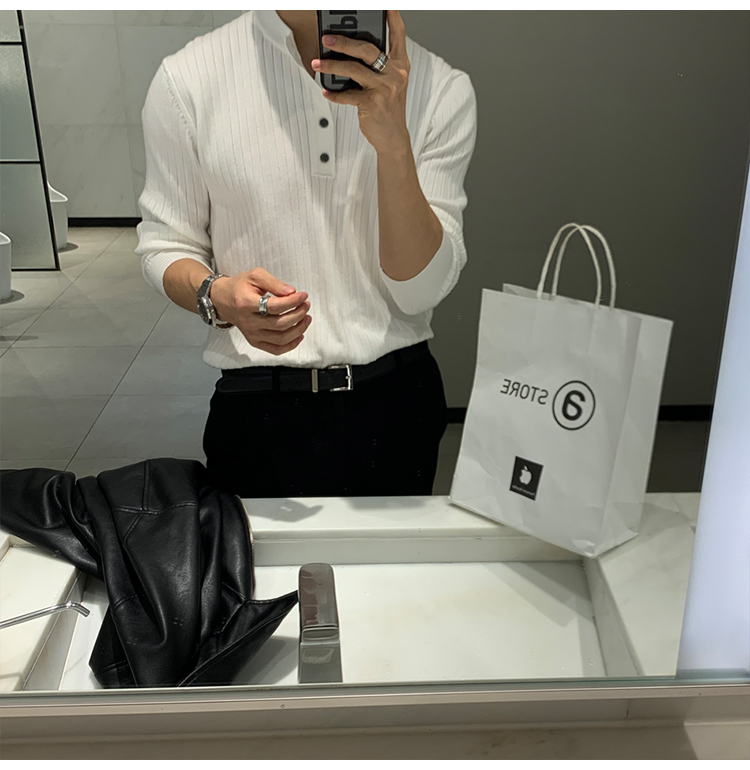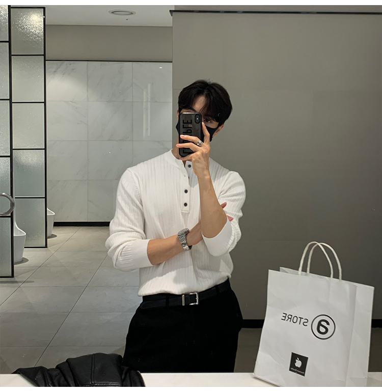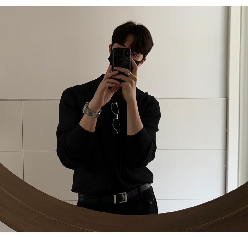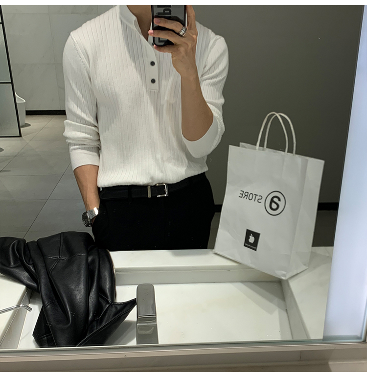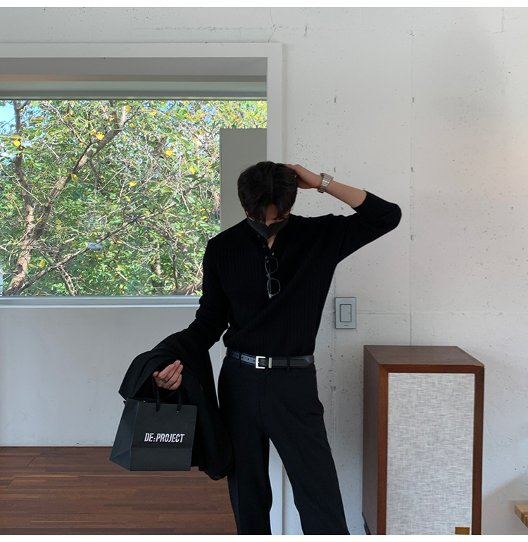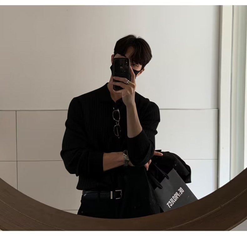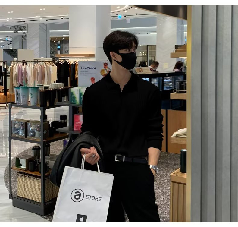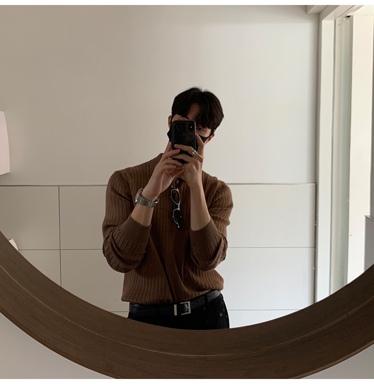 韓國秋冬高級感男士毛衣韓版寬松休閒純色翻領套頭長袖針織polo衫