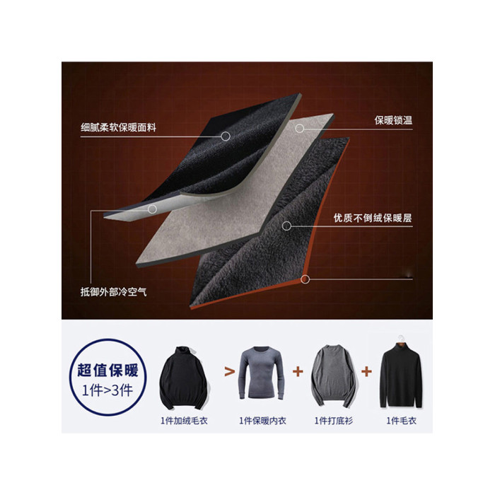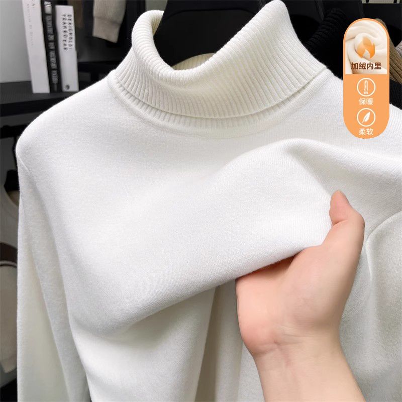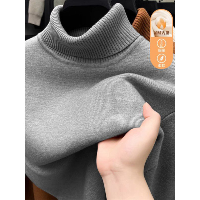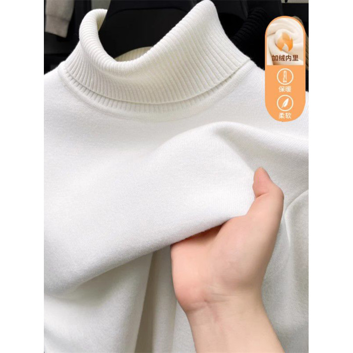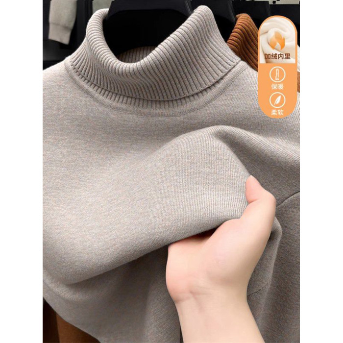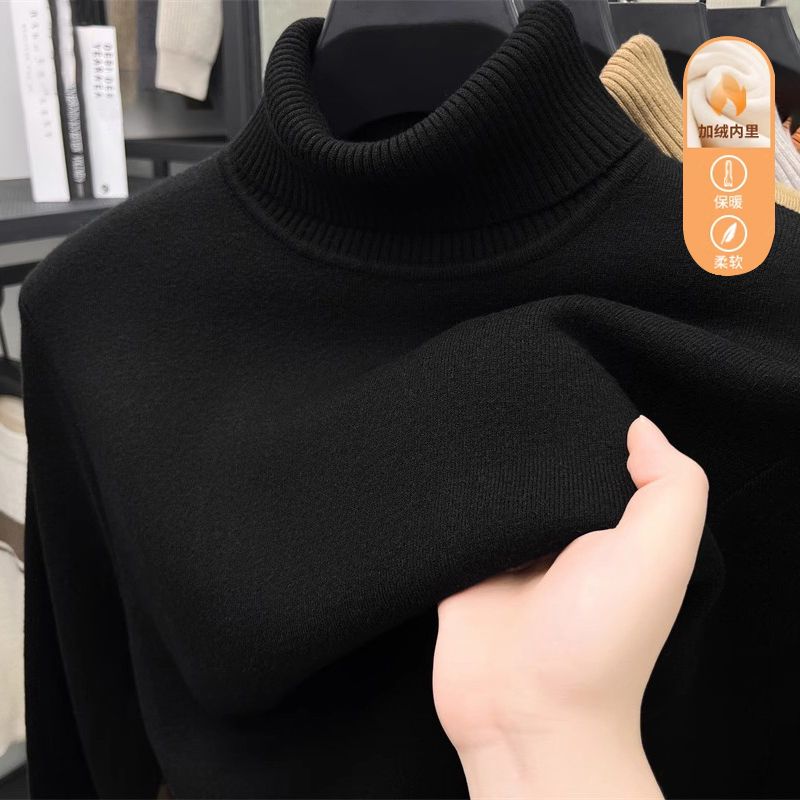 秋冬季高領一體絨毛衣男寬松百搭加絨加厚毛衫男士打底中領針織衫