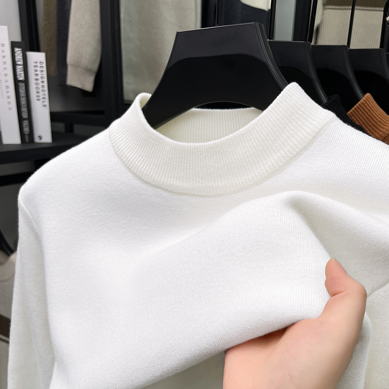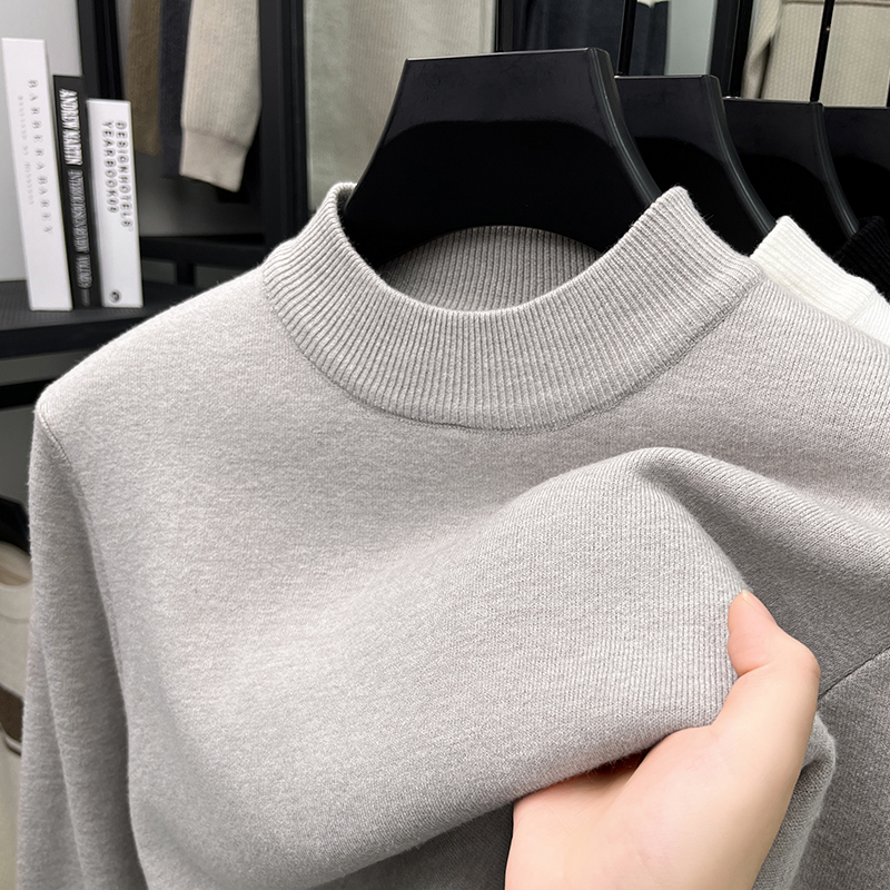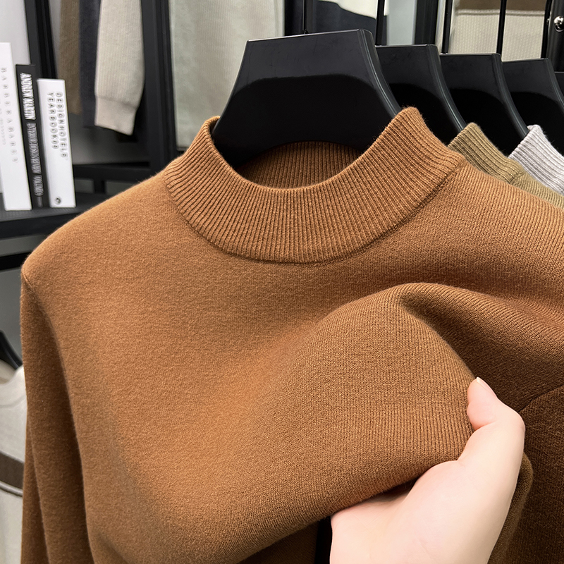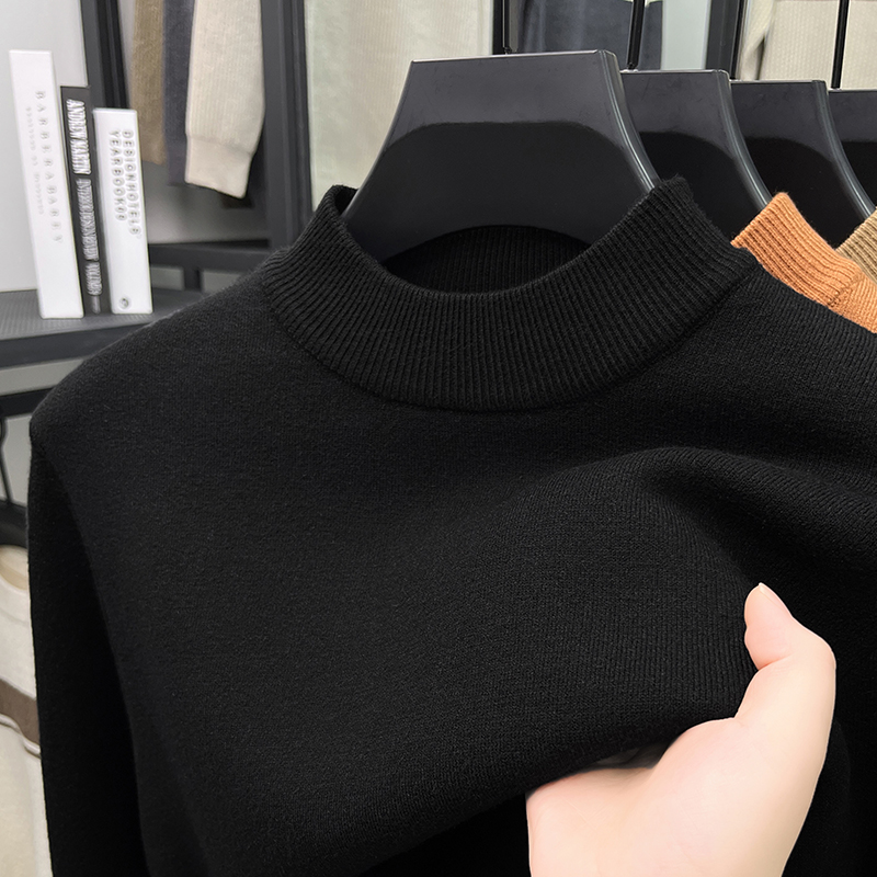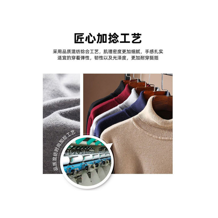 秋冬季高領一體絨毛衣男寬松百搭加絨加厚毛衫男士打底中領針織衫