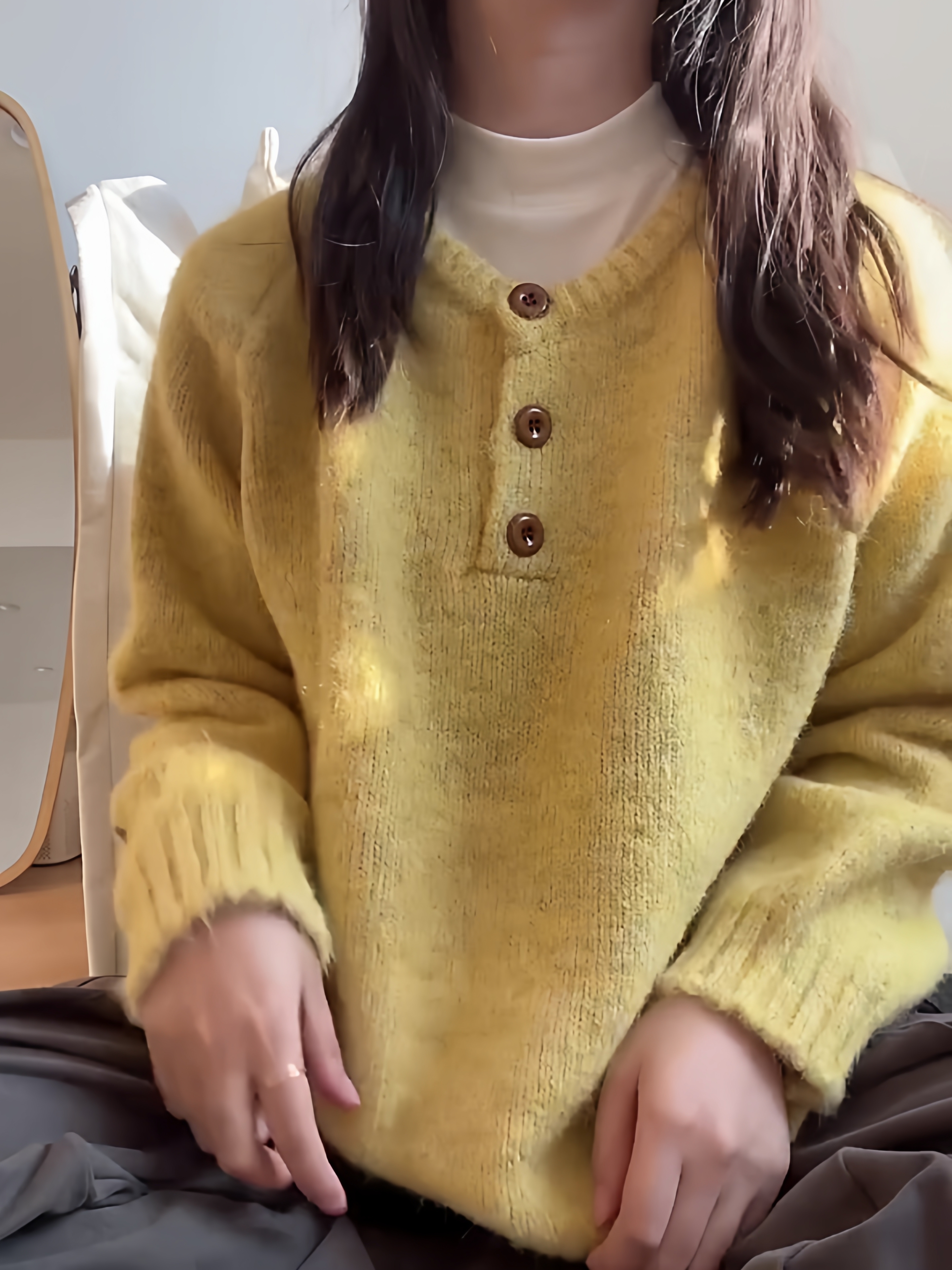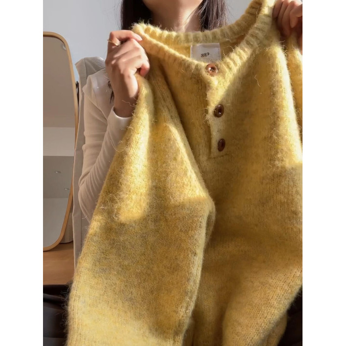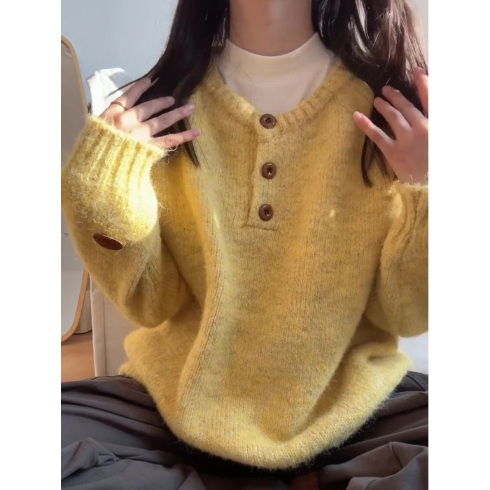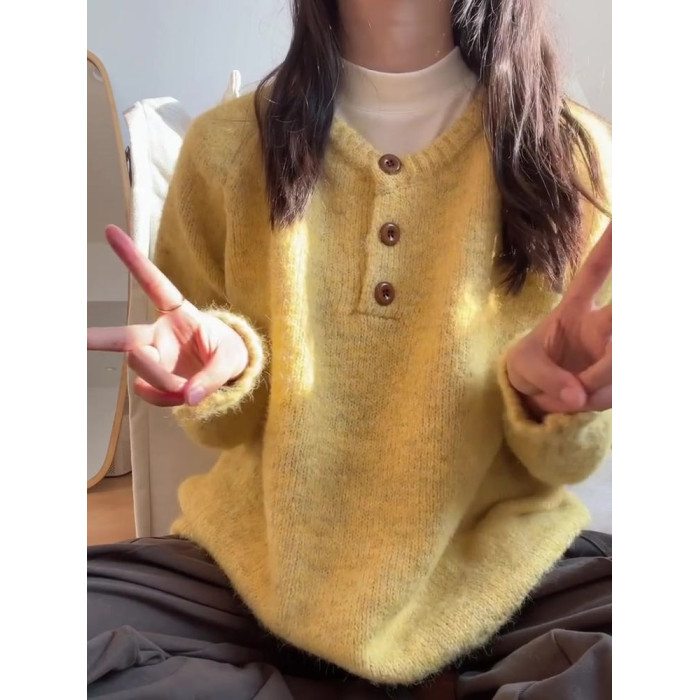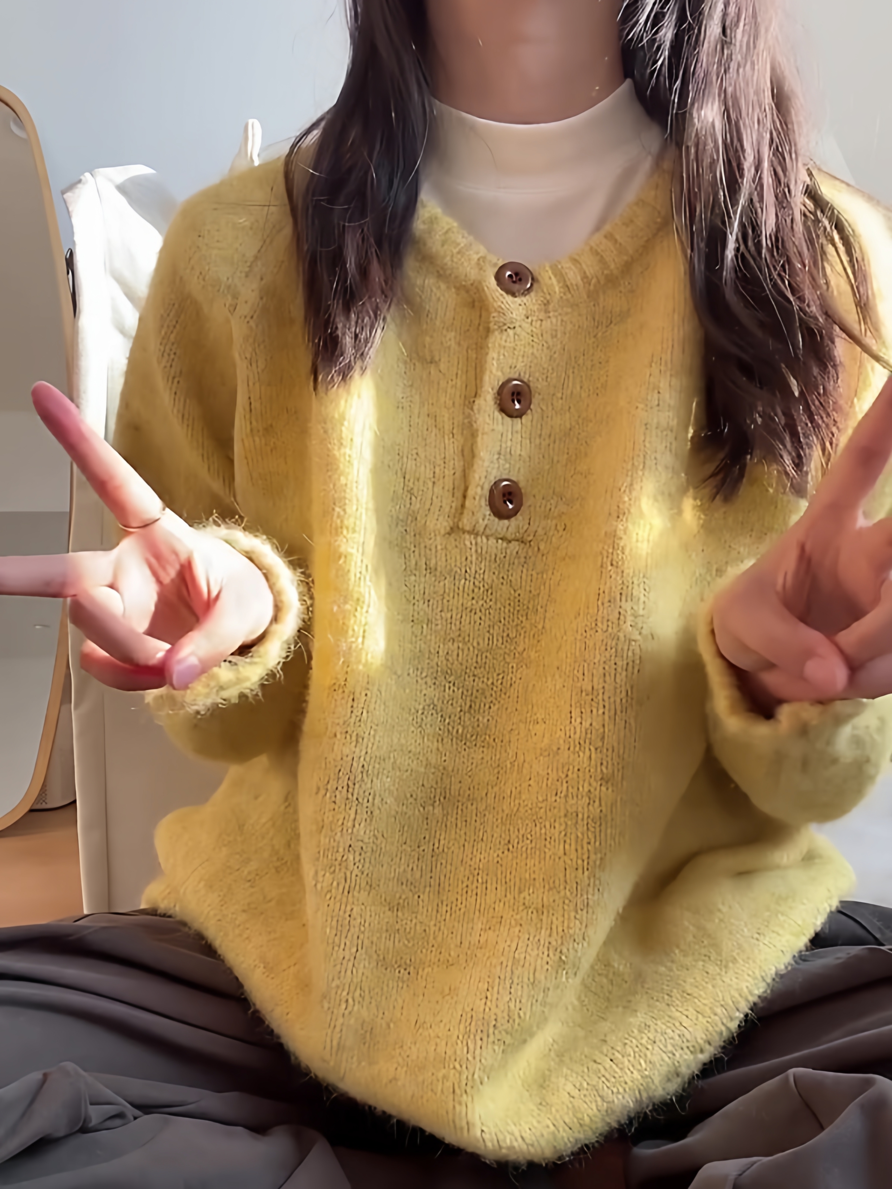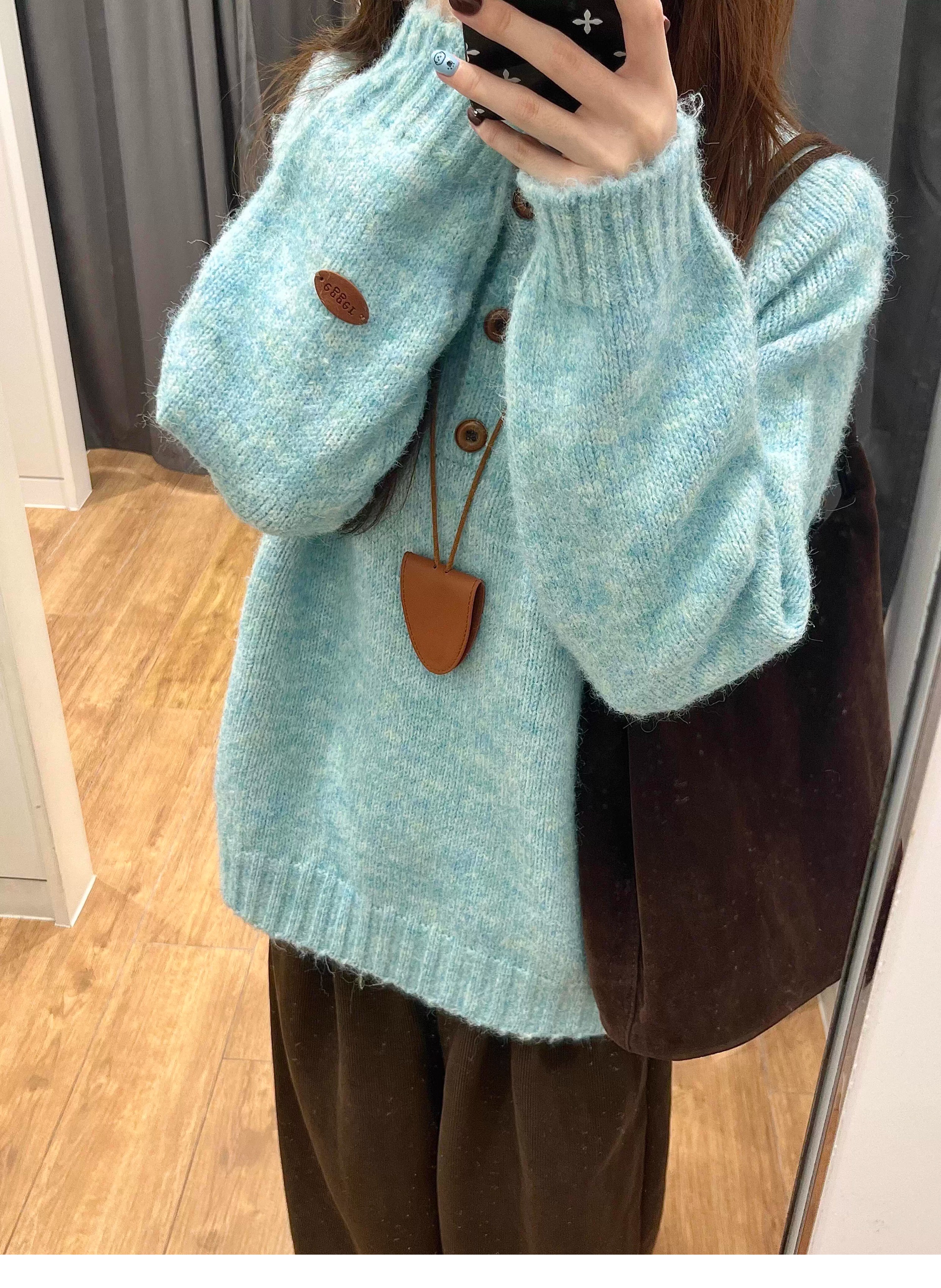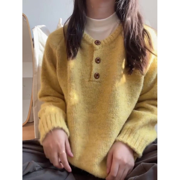 秋冬氛圍感亨利領長袖針織衫女2025新款加厚寬松慵懶軟糯套頭毛衣