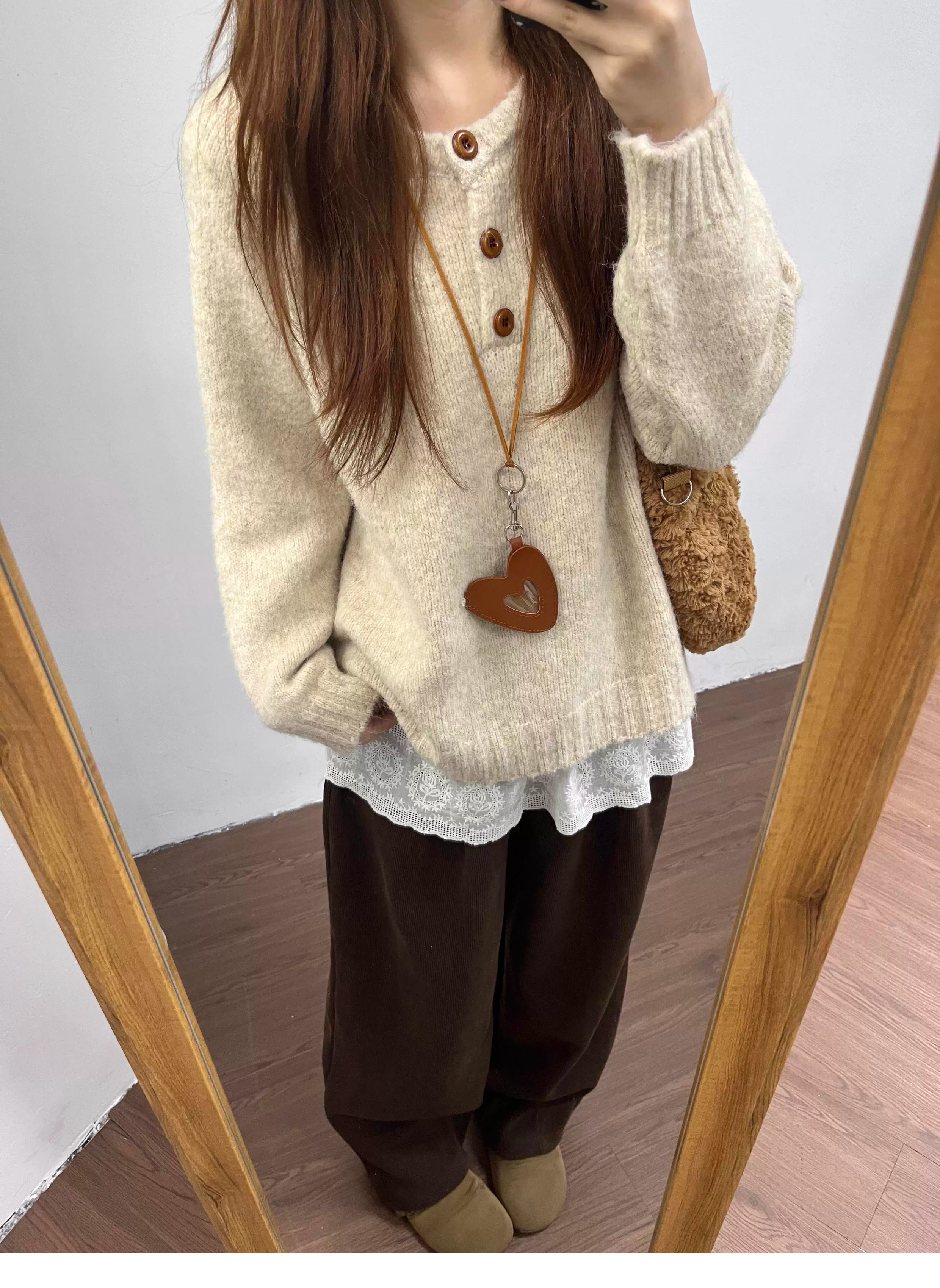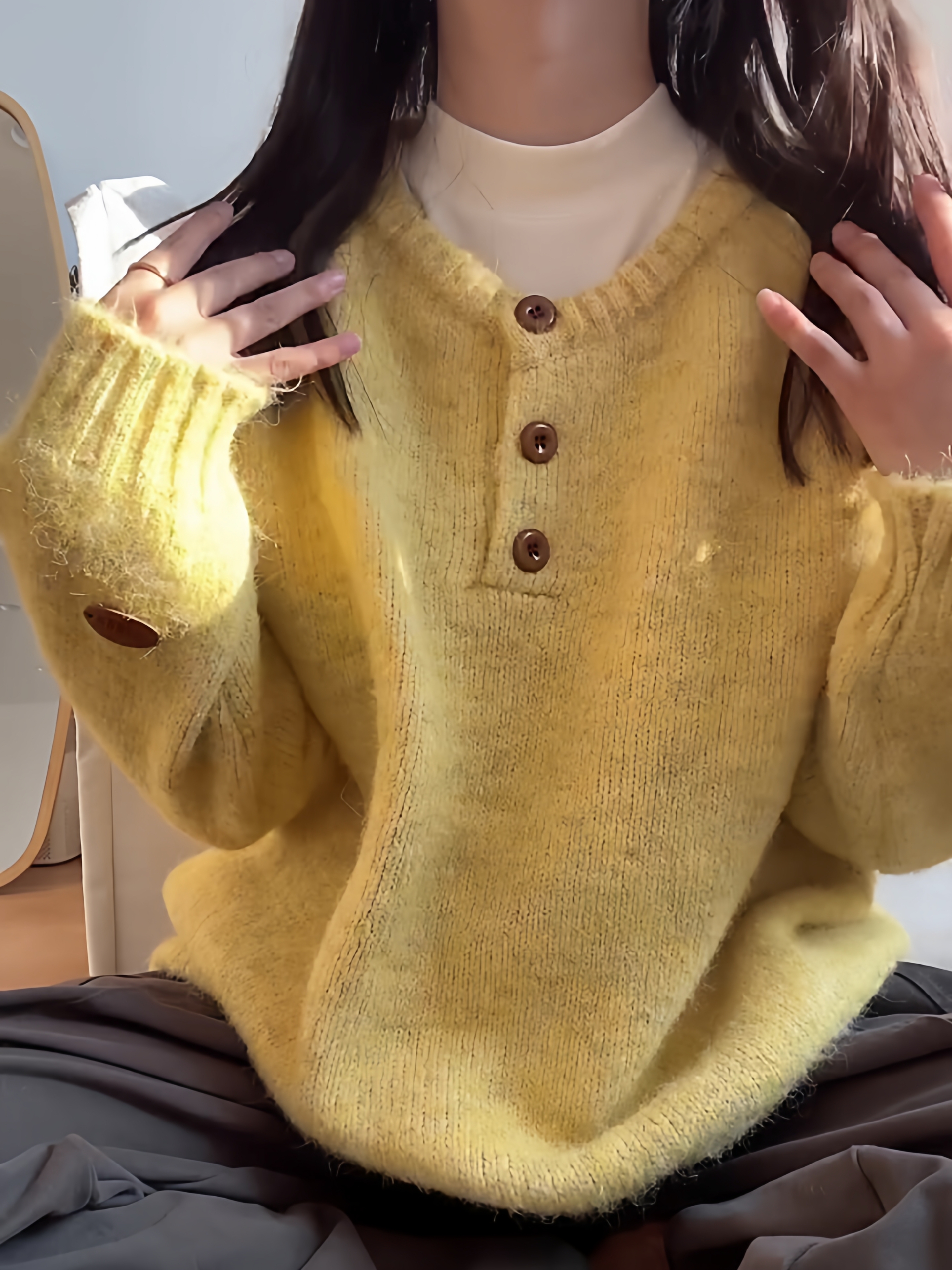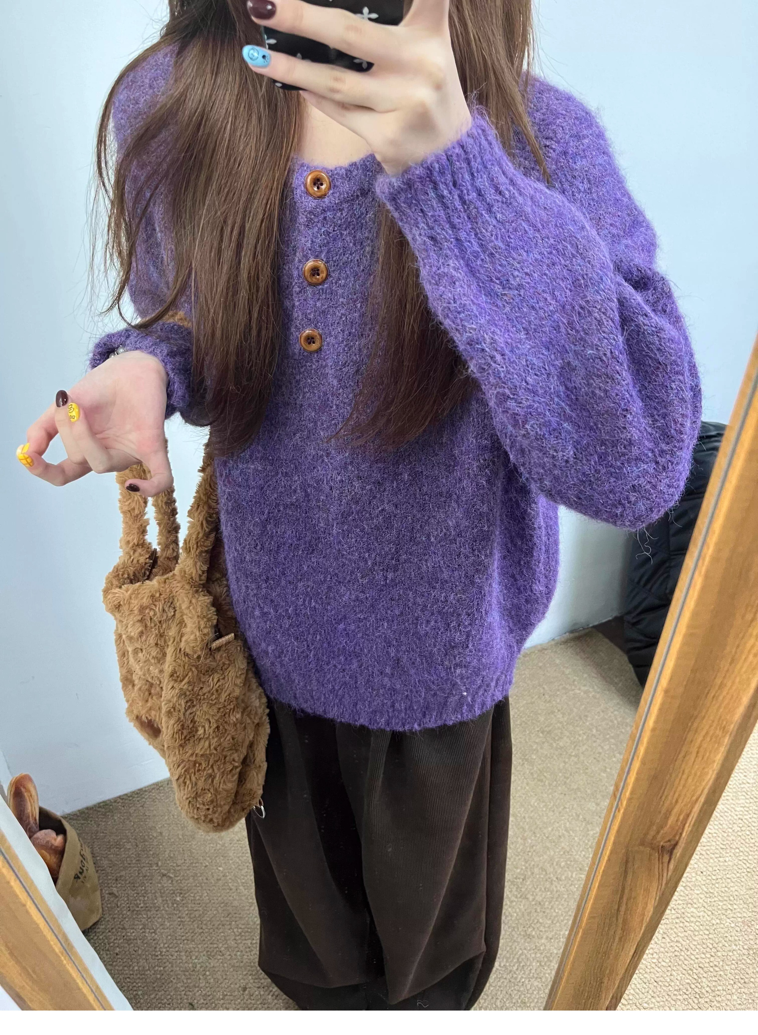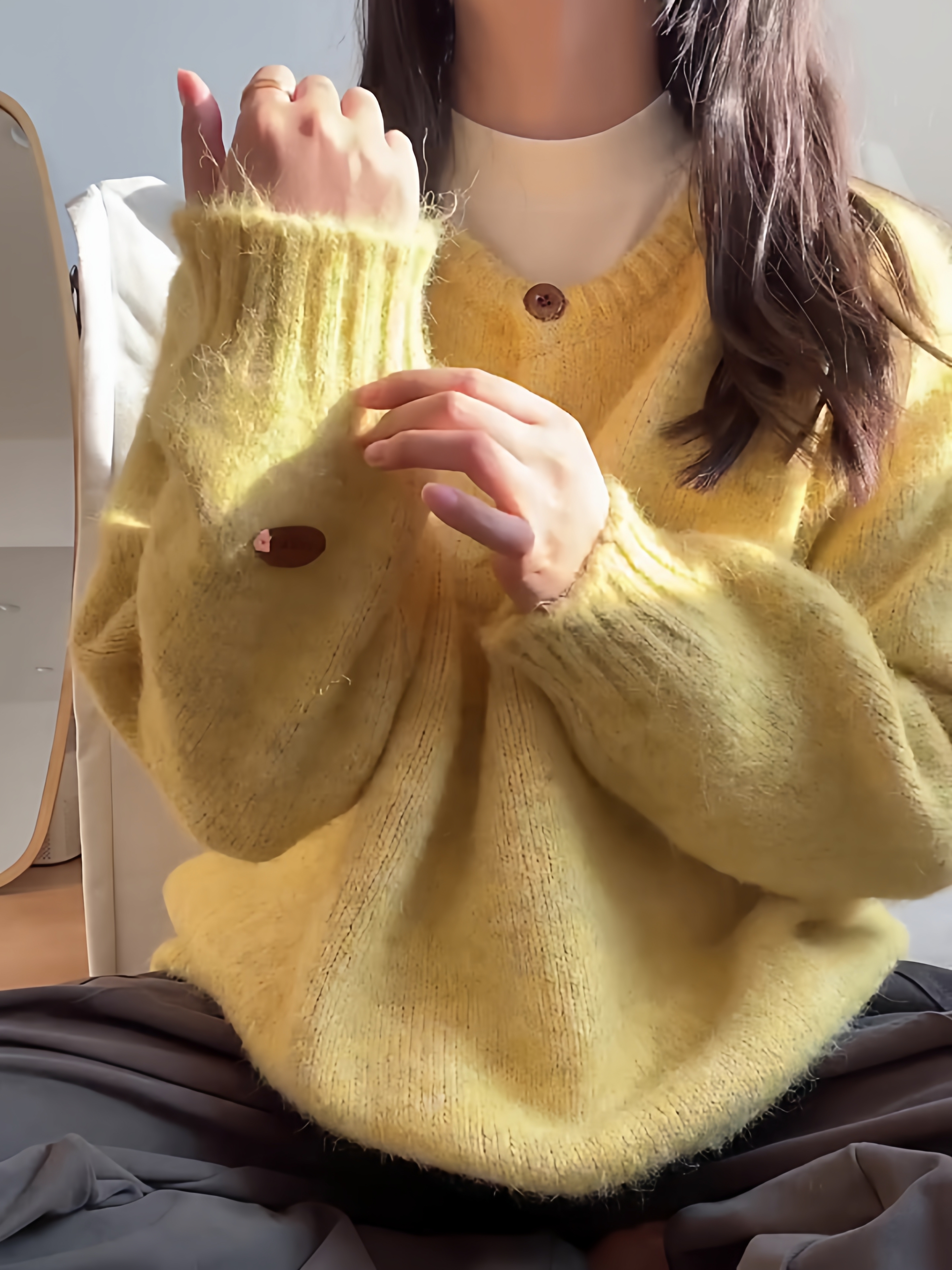 秋冬氛圍感亨利領長袖針織衫女2025新款加厚寬松慵懶軟糯套頭毛衣
