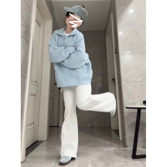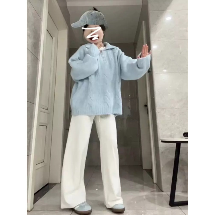 大碼胖mm慵懶風藍色麻花奶fufu毛衣女秋冬寬松加厚針織衫上衣秋冬