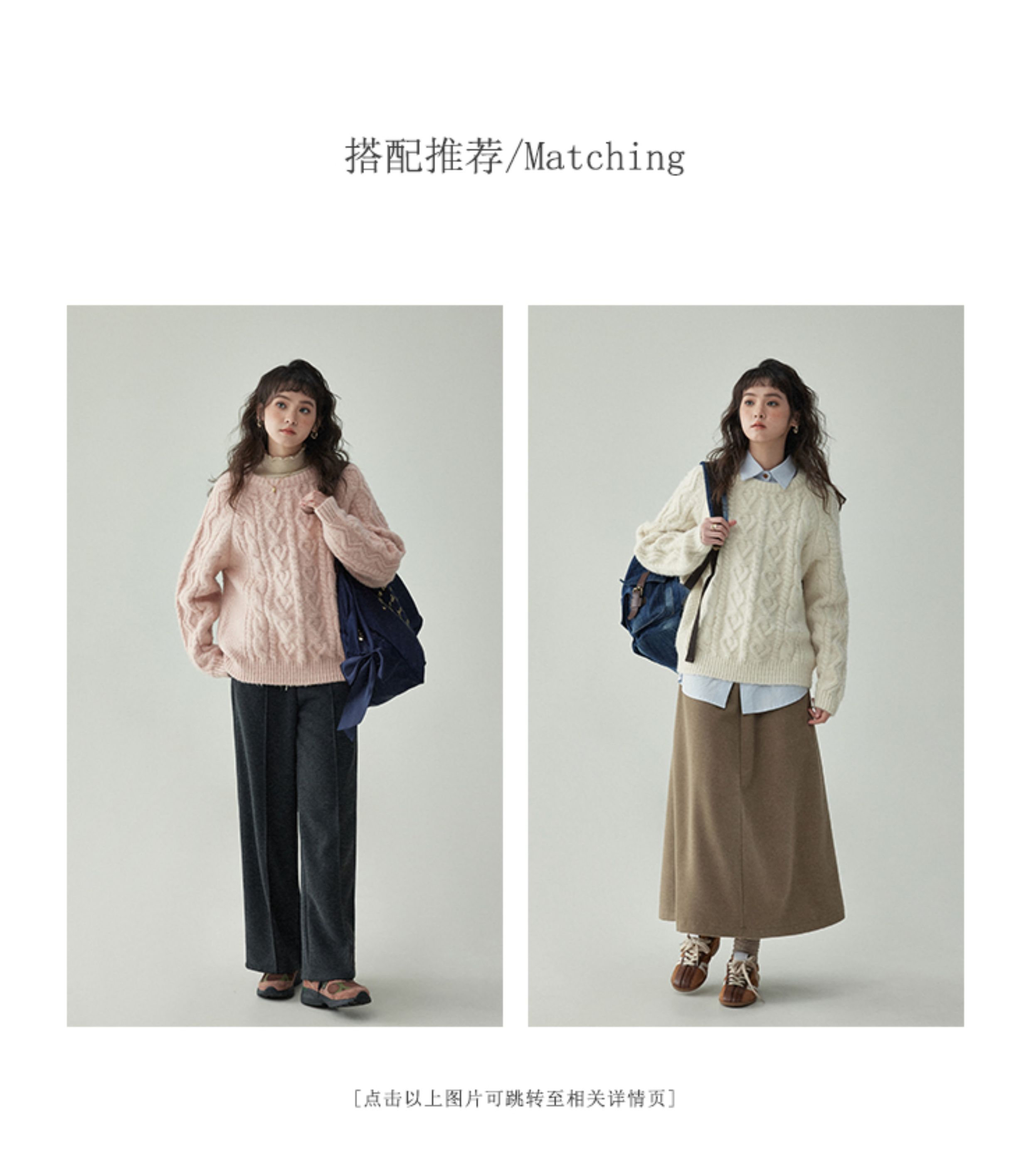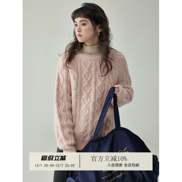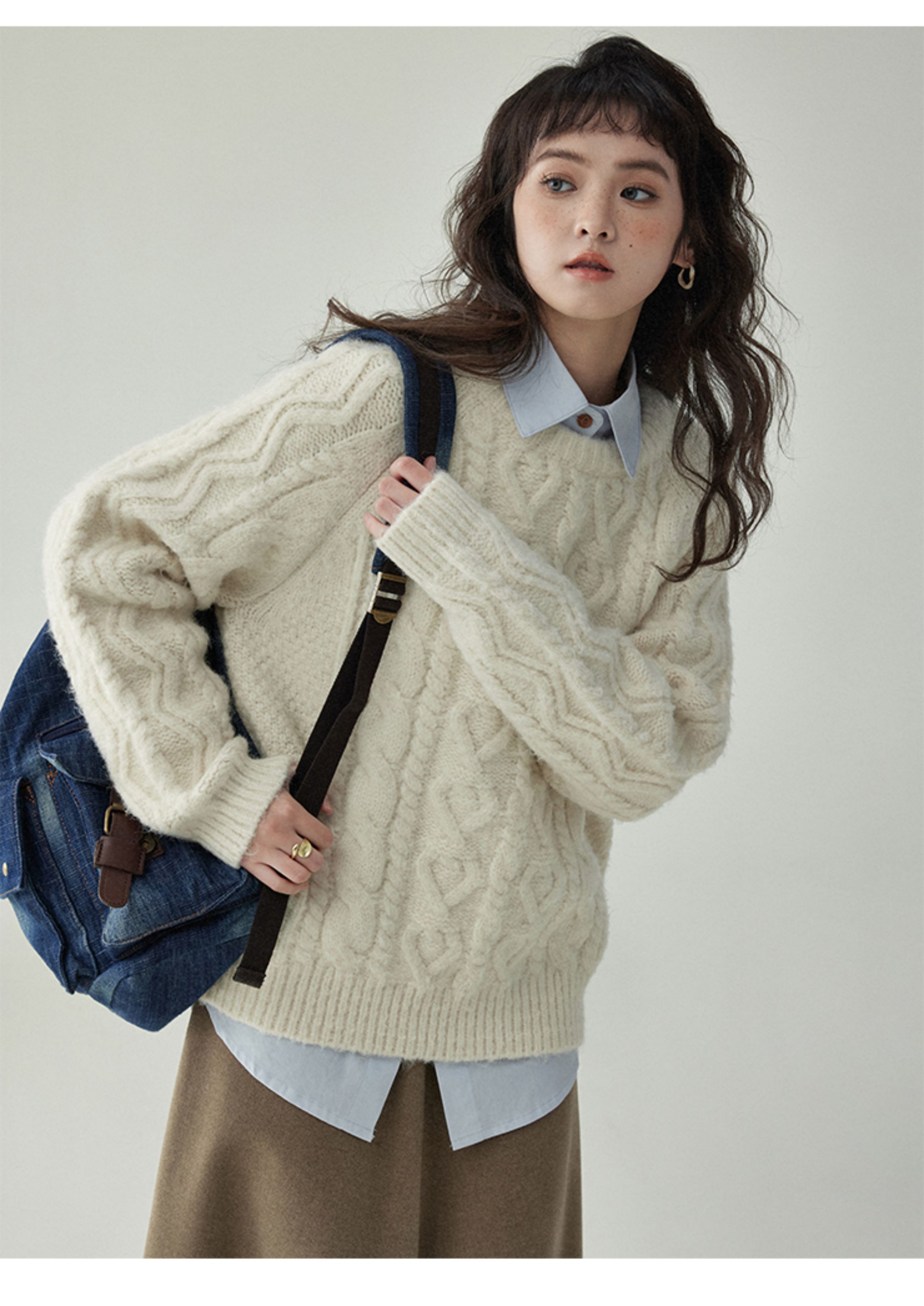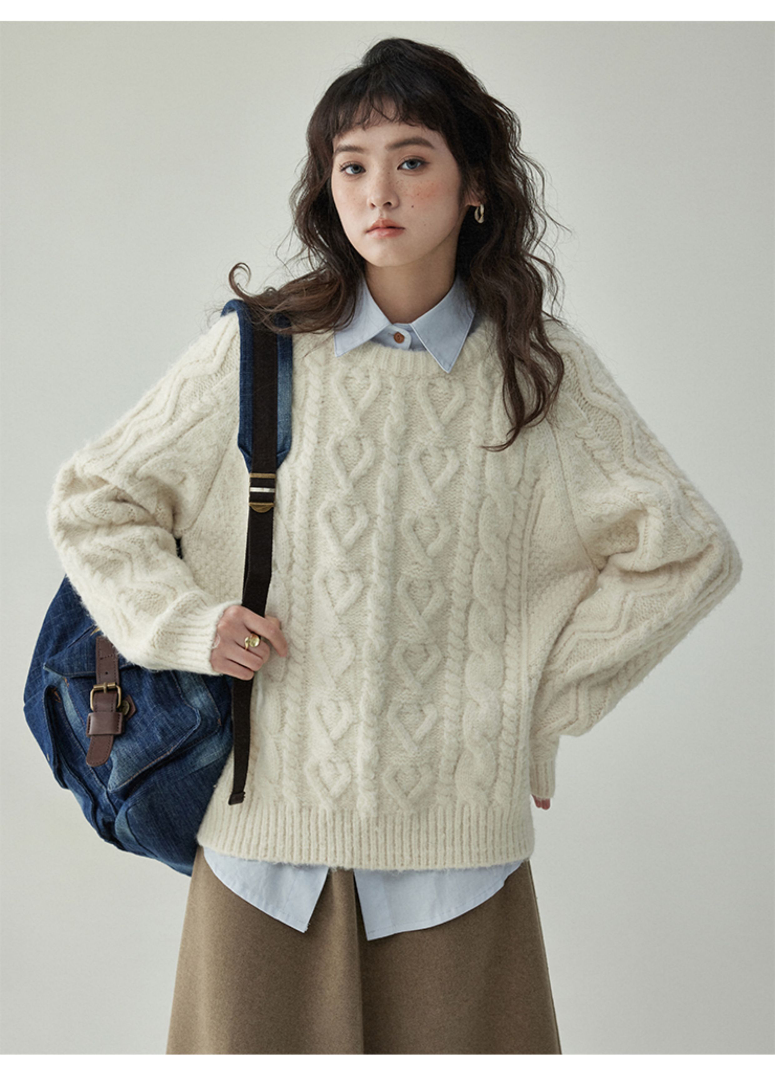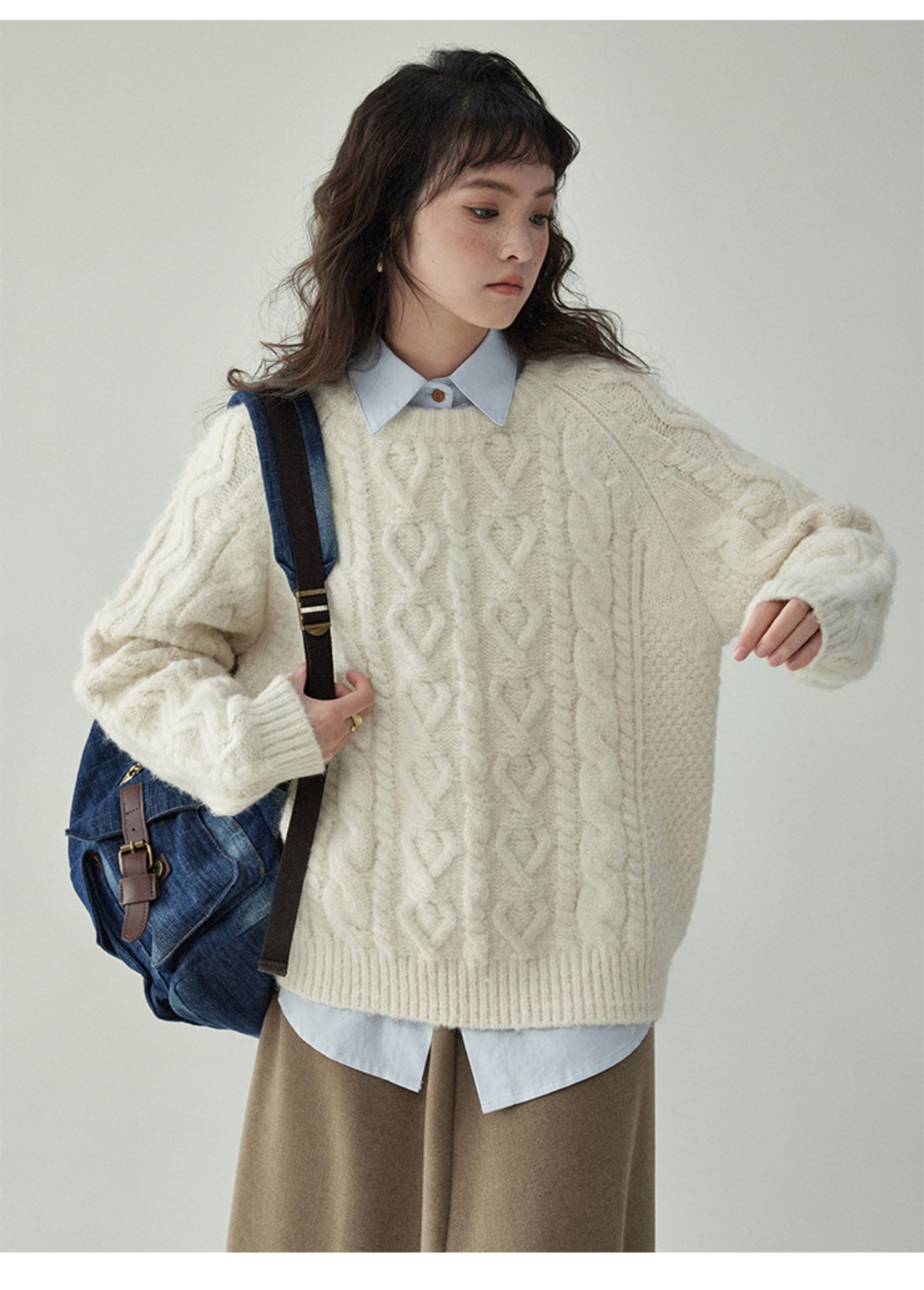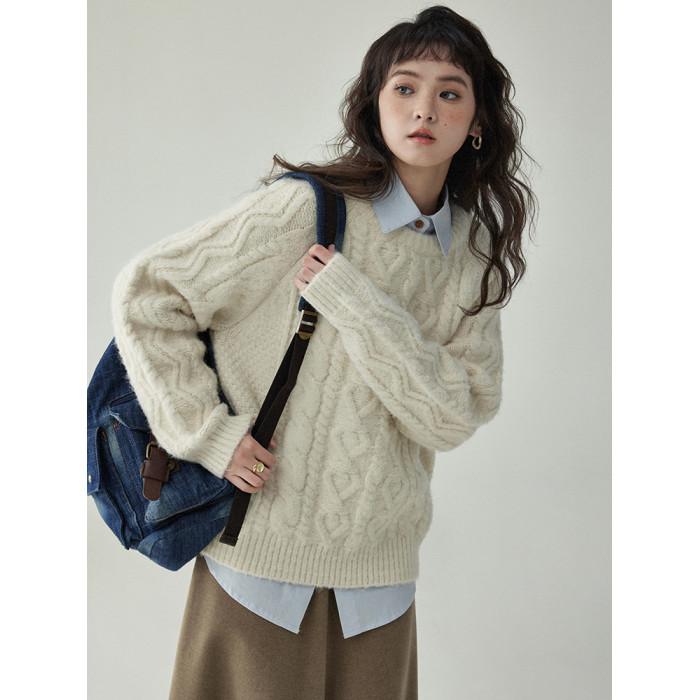 「北島AMUU」日系圓領寬松麻花毛衣秋冬溫柔軟糯加厚套頭內搭上衣