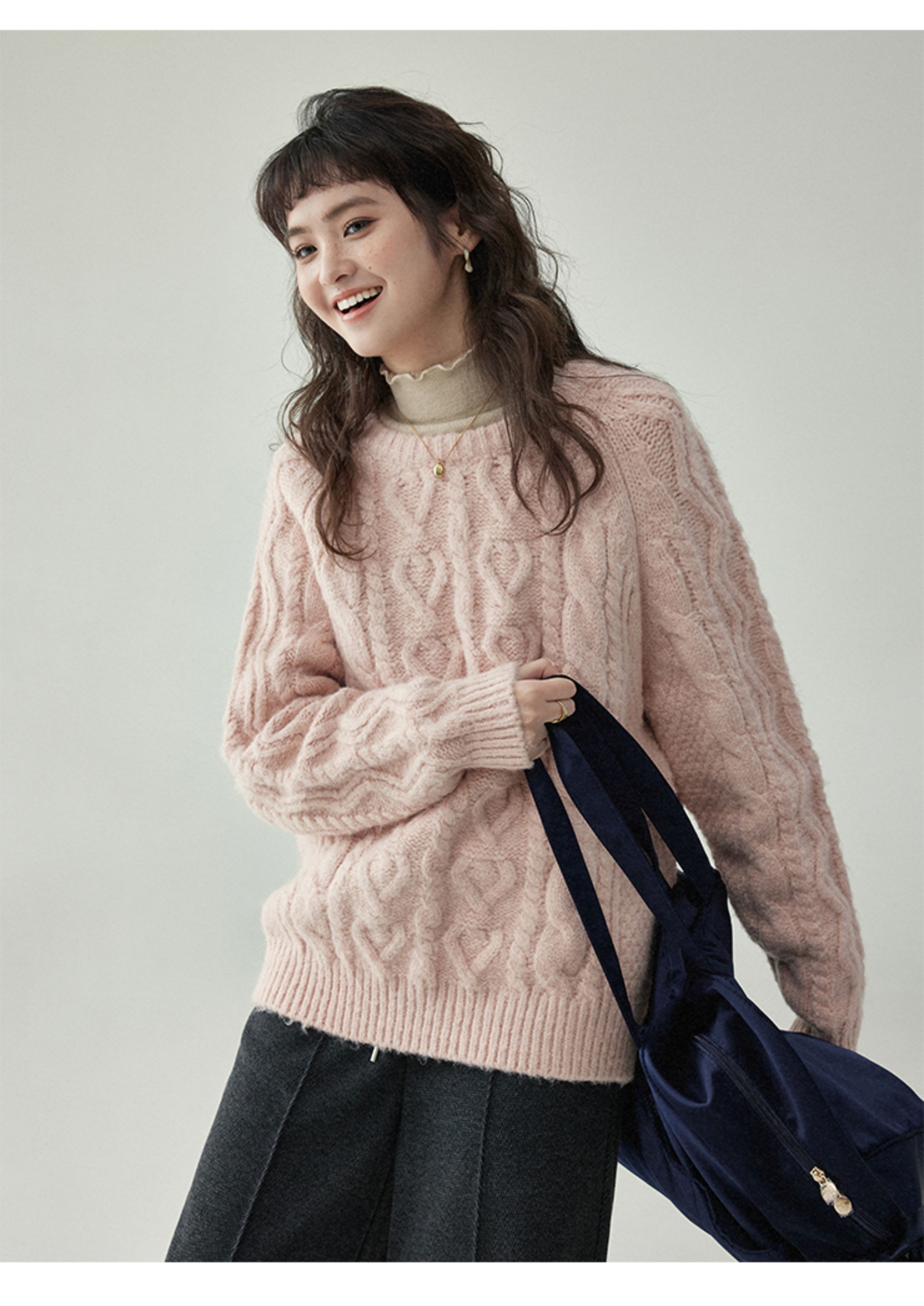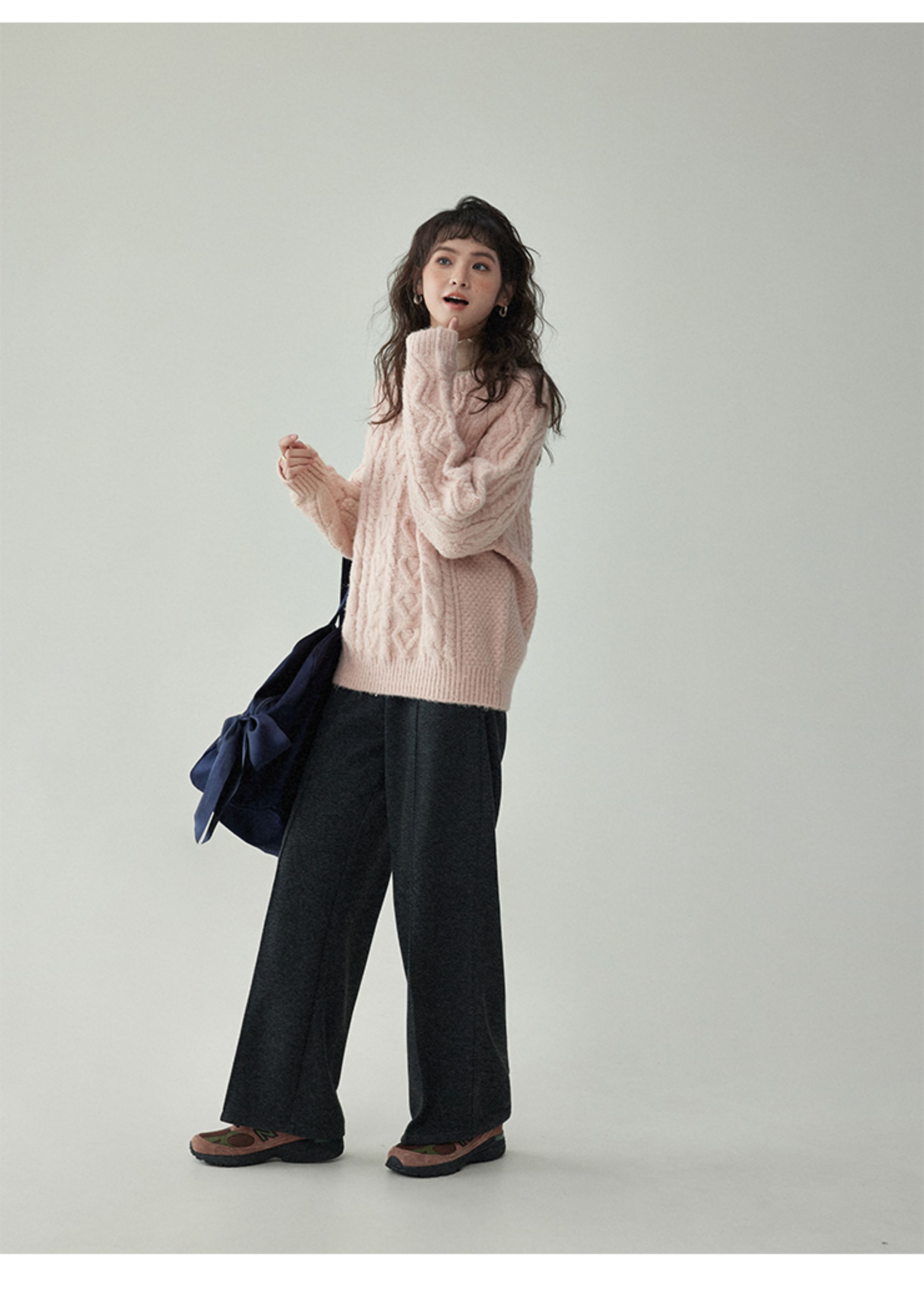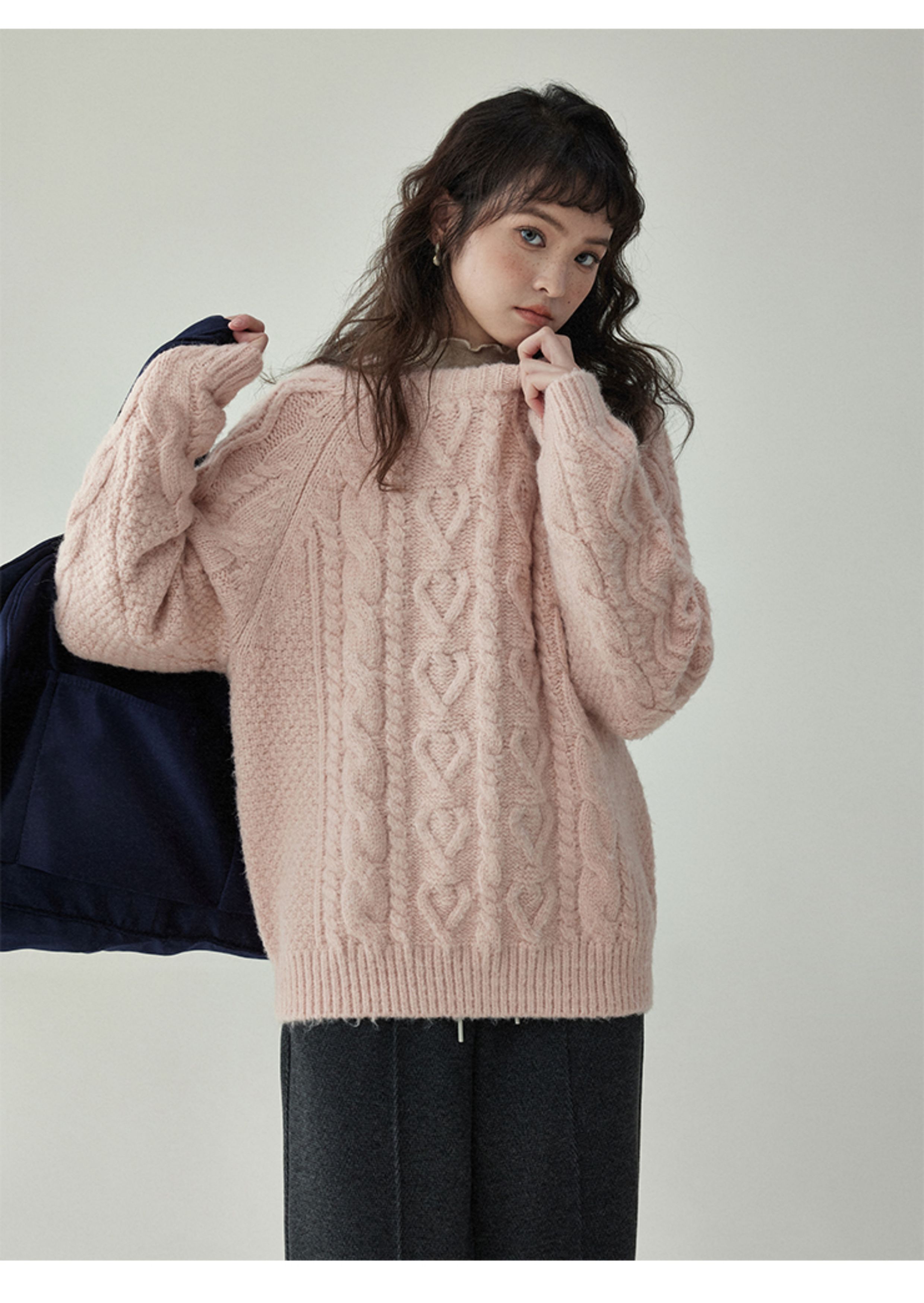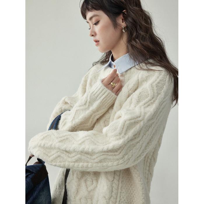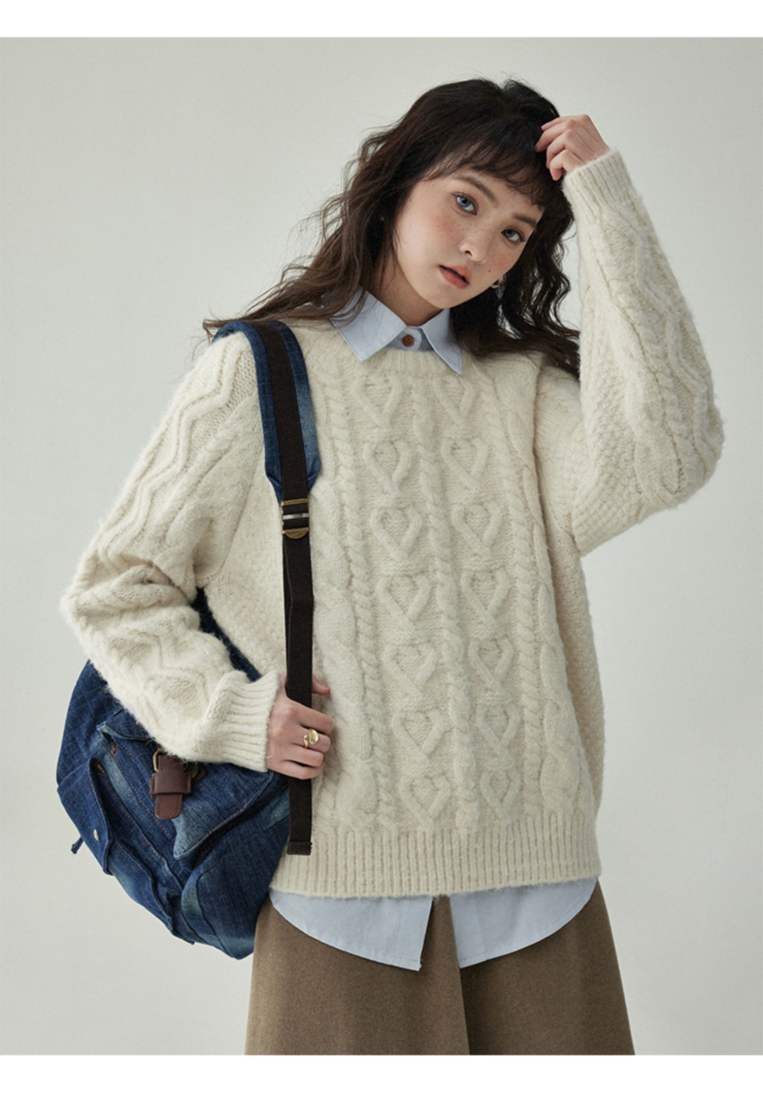 「北島AMUU」日系圓領寬松麻花毛衣秋冬溫柔軟糯加厚套頭內搭上衣