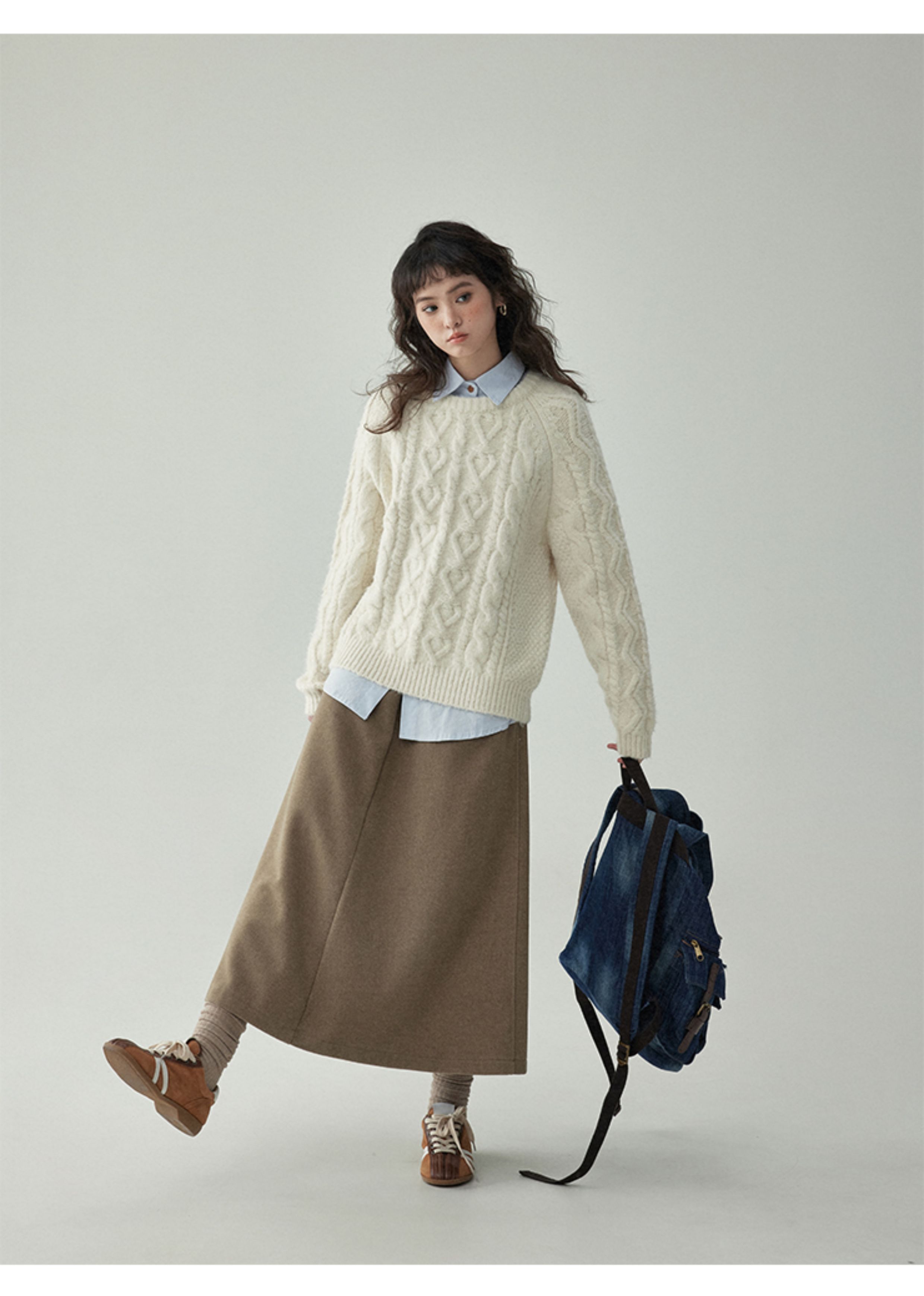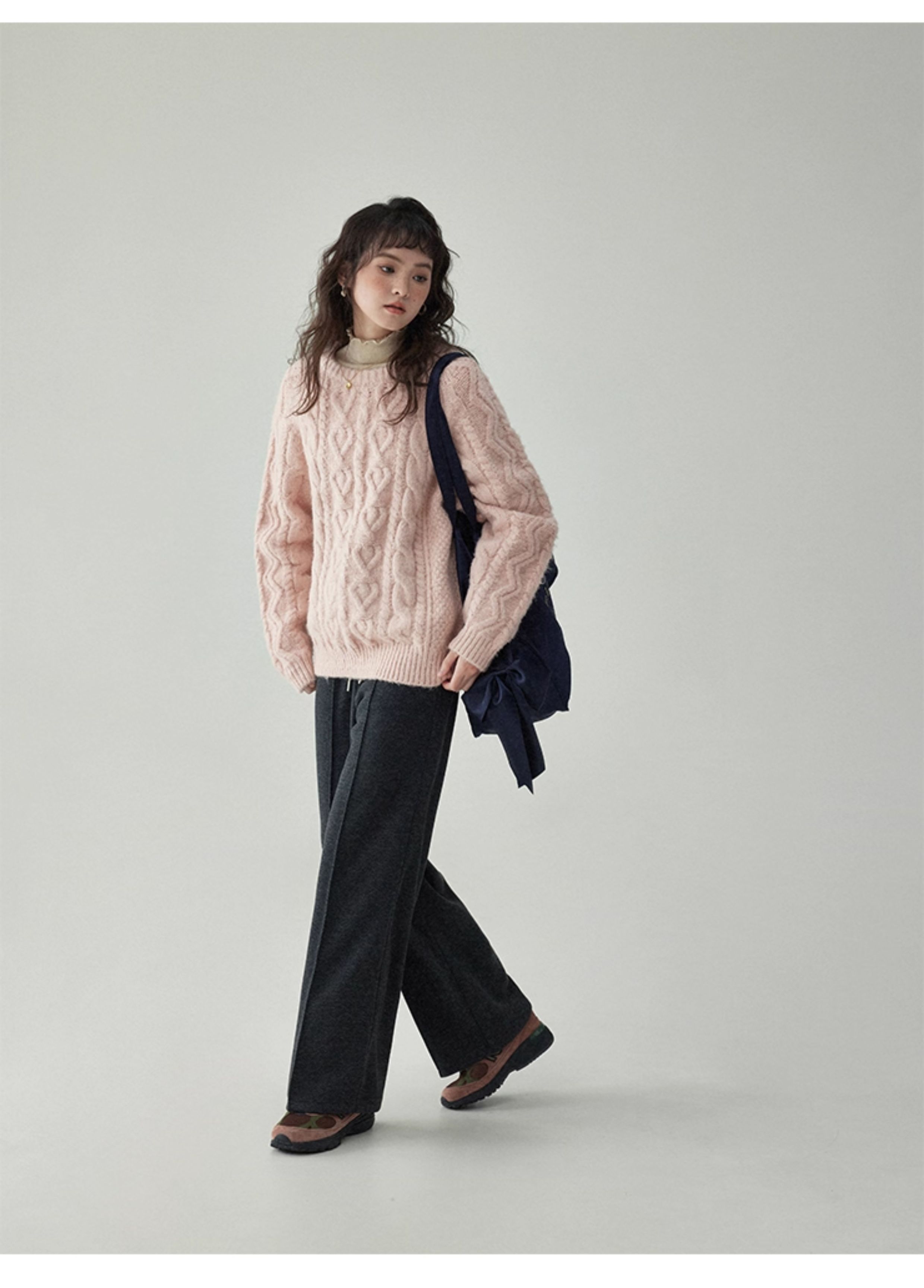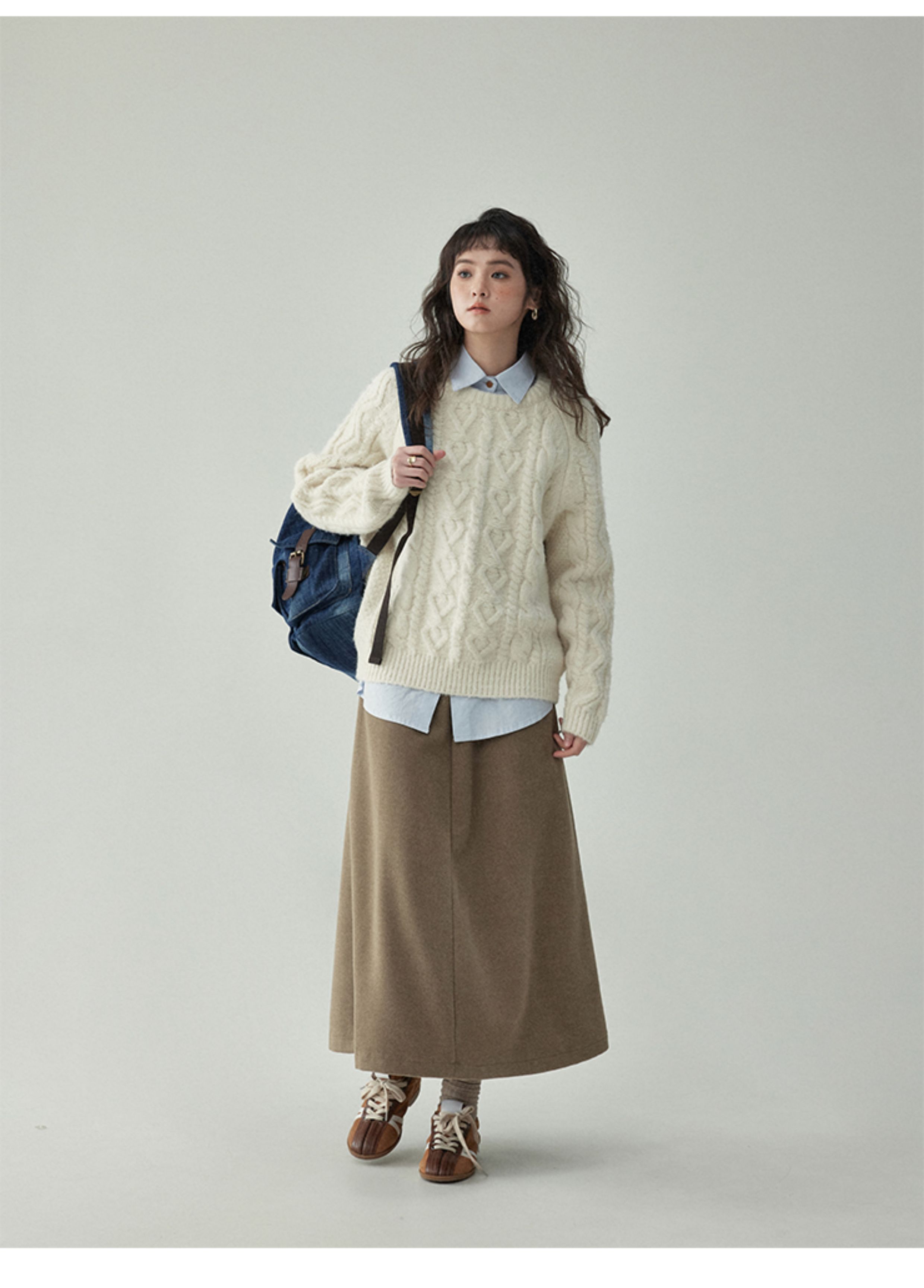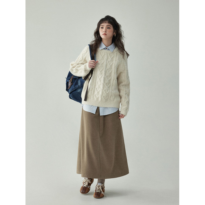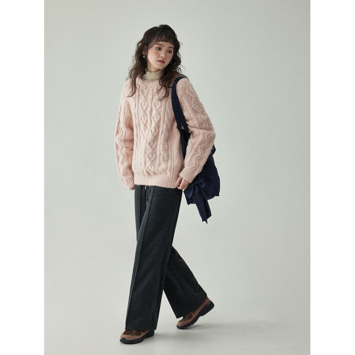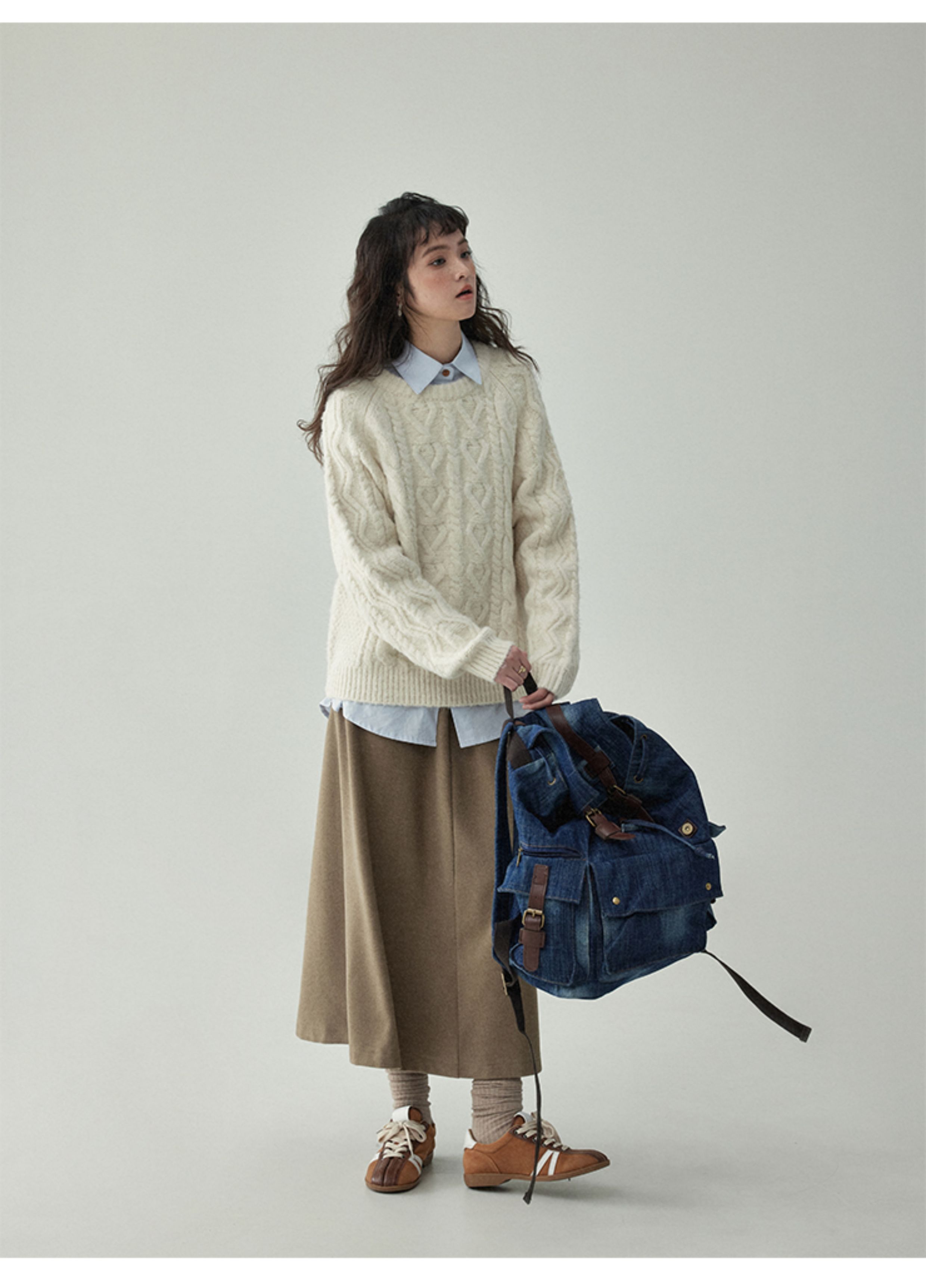 「北島AMUU」日系圓領寬松麻花毛衣秋冬溫柔軟糯加厚套頭內搭上衣