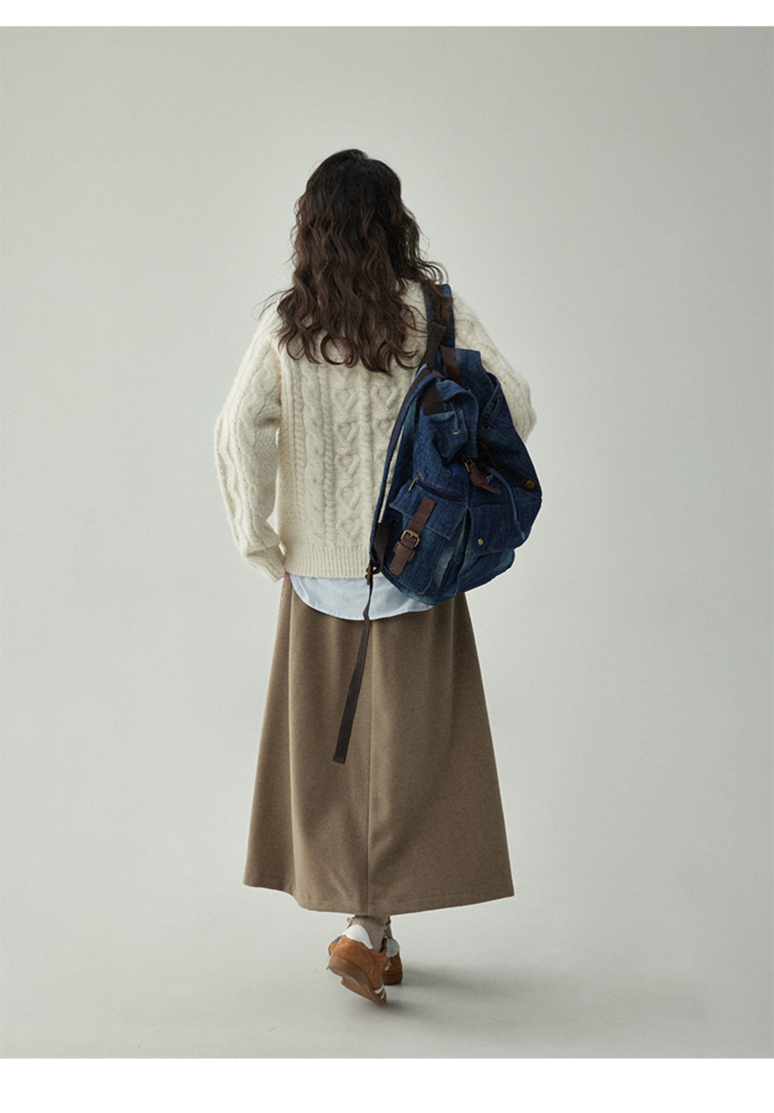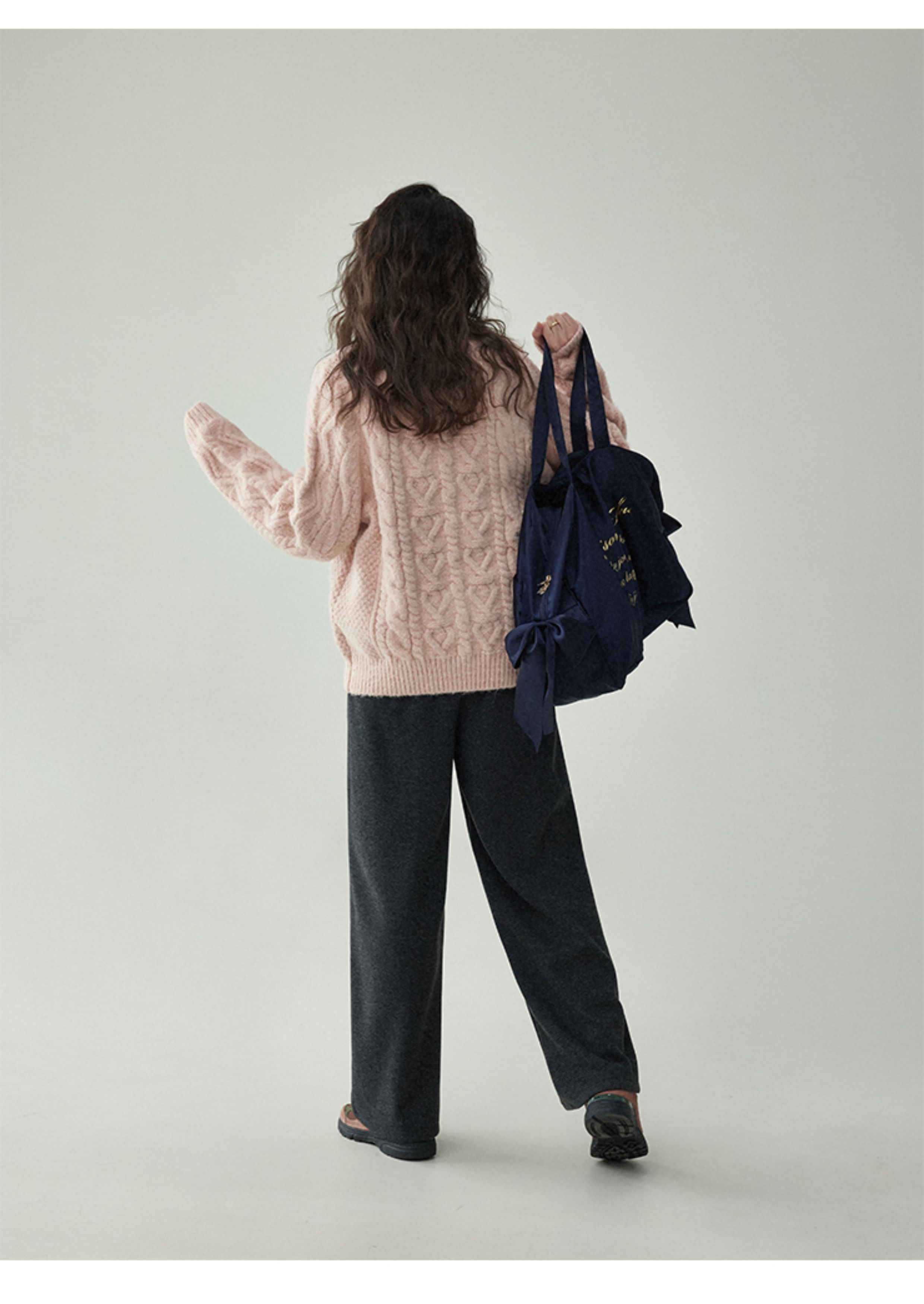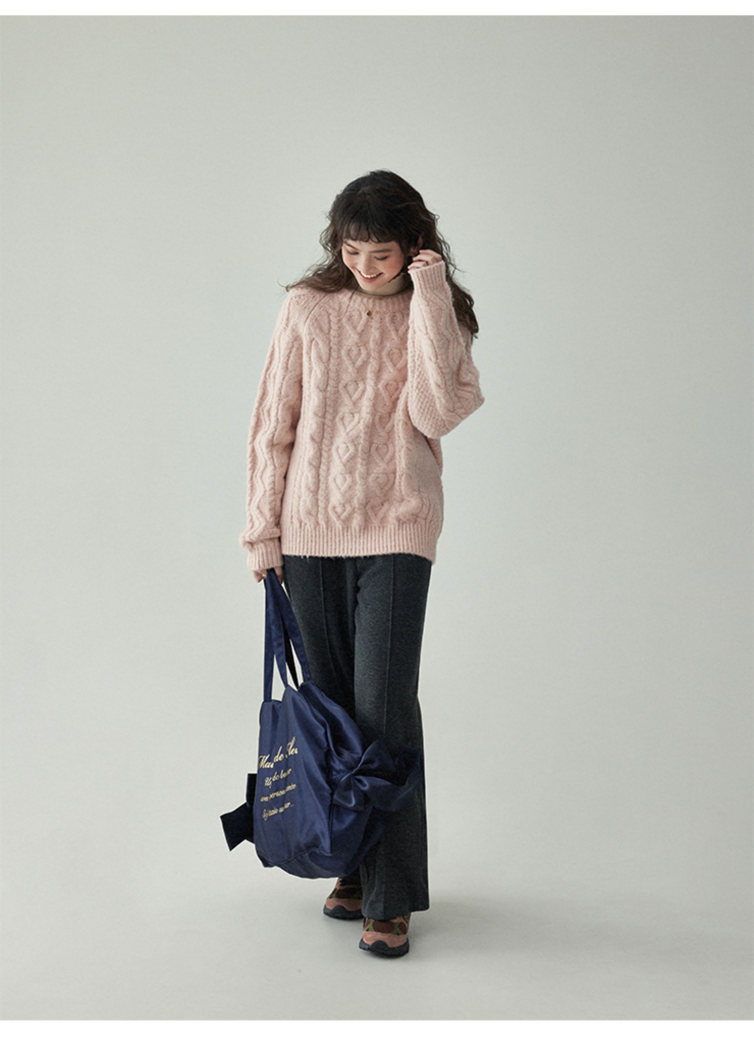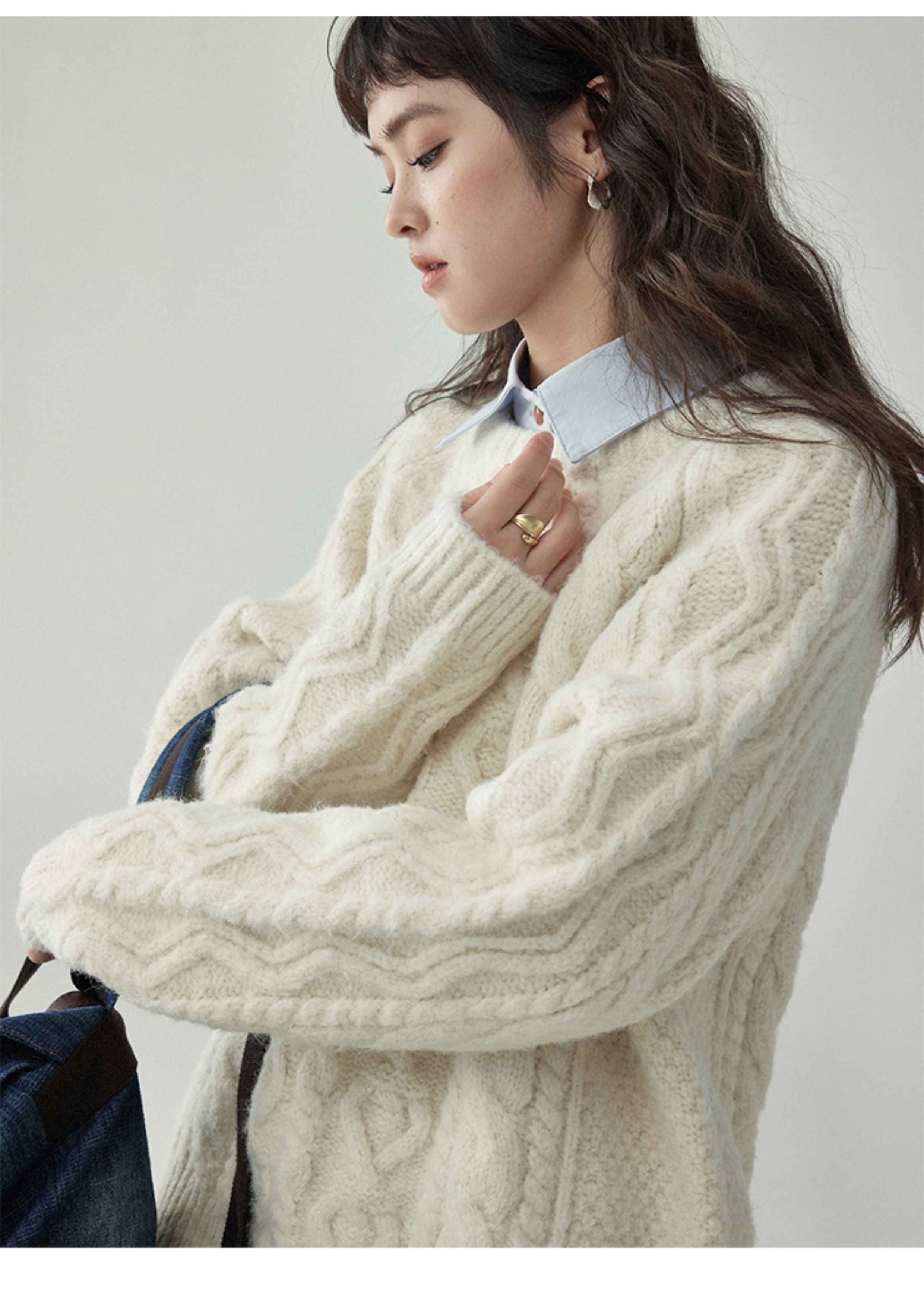 「北島AMUU」日系圓領寬松麻花毛衣秋冬溫柔軟糯加厚套頭內搭上衣