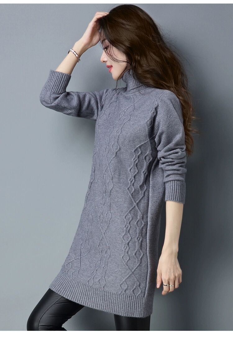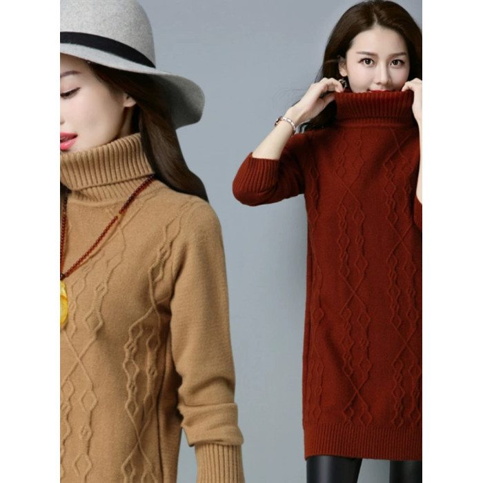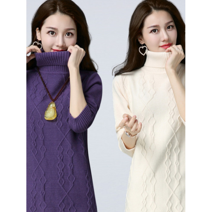 2025新款款百搭加絨高領毛衣冬季女裝翻領加厚保暖包臀針織打底衫