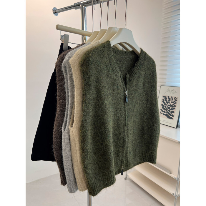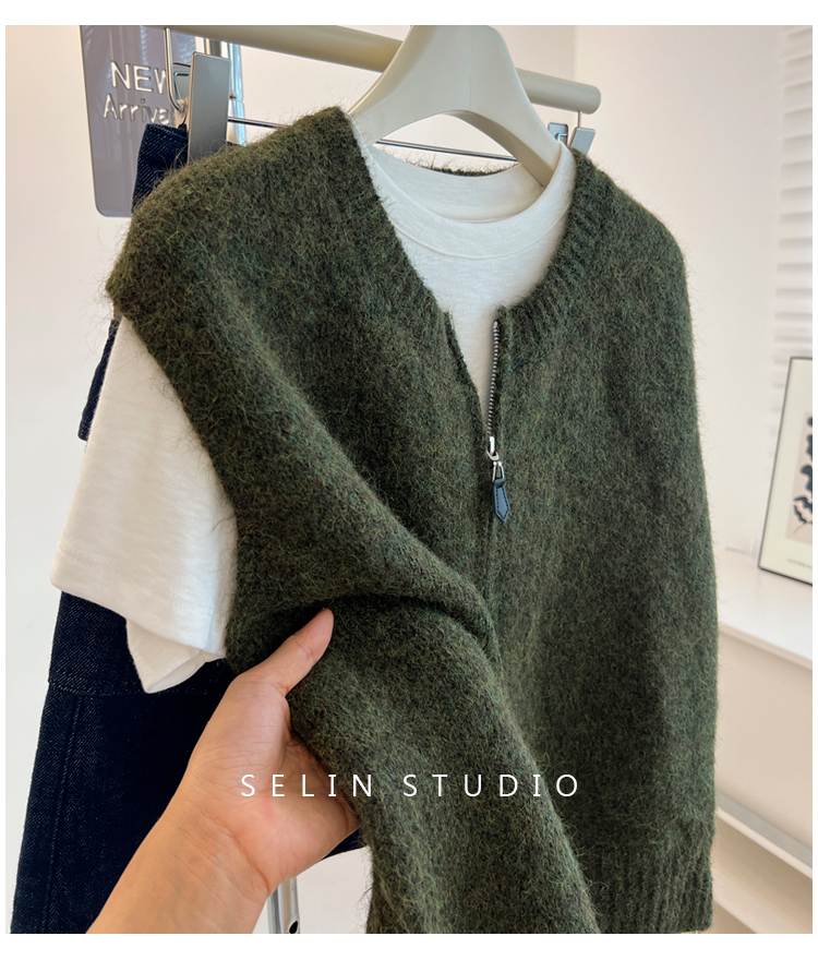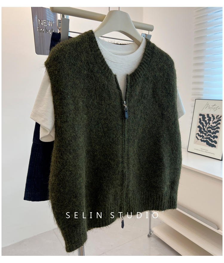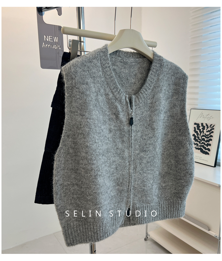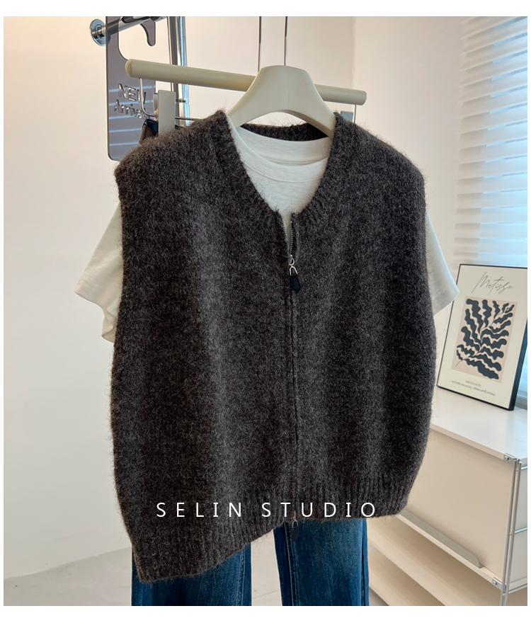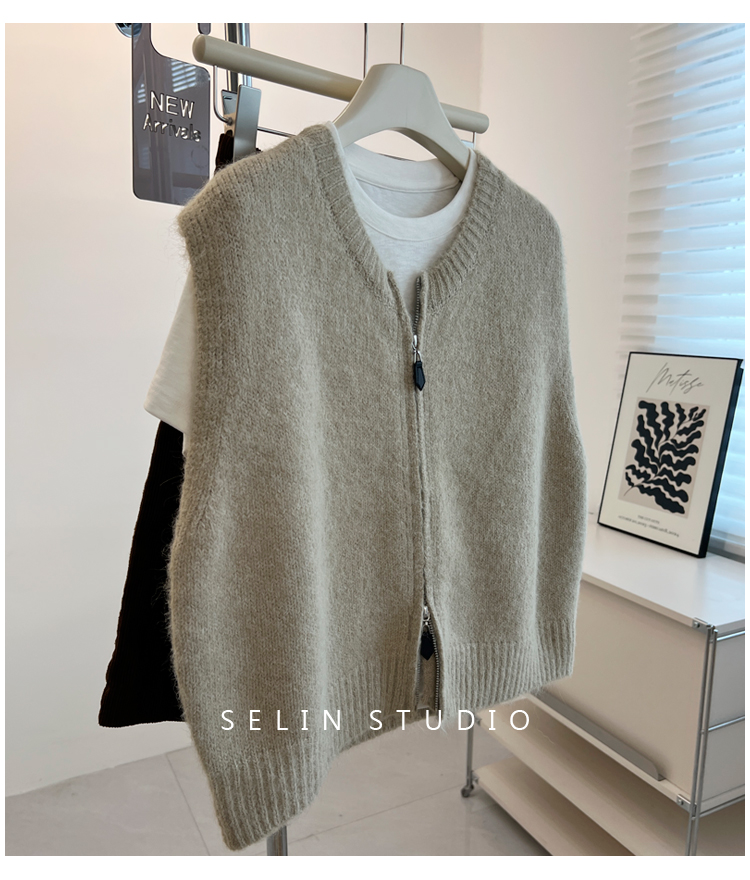 百搭基礎簡約拉鍊開衫針織馬甲女寬松小衆減齡學生氣質毛衣背心秋