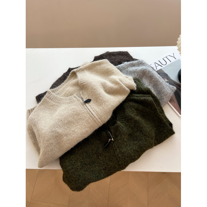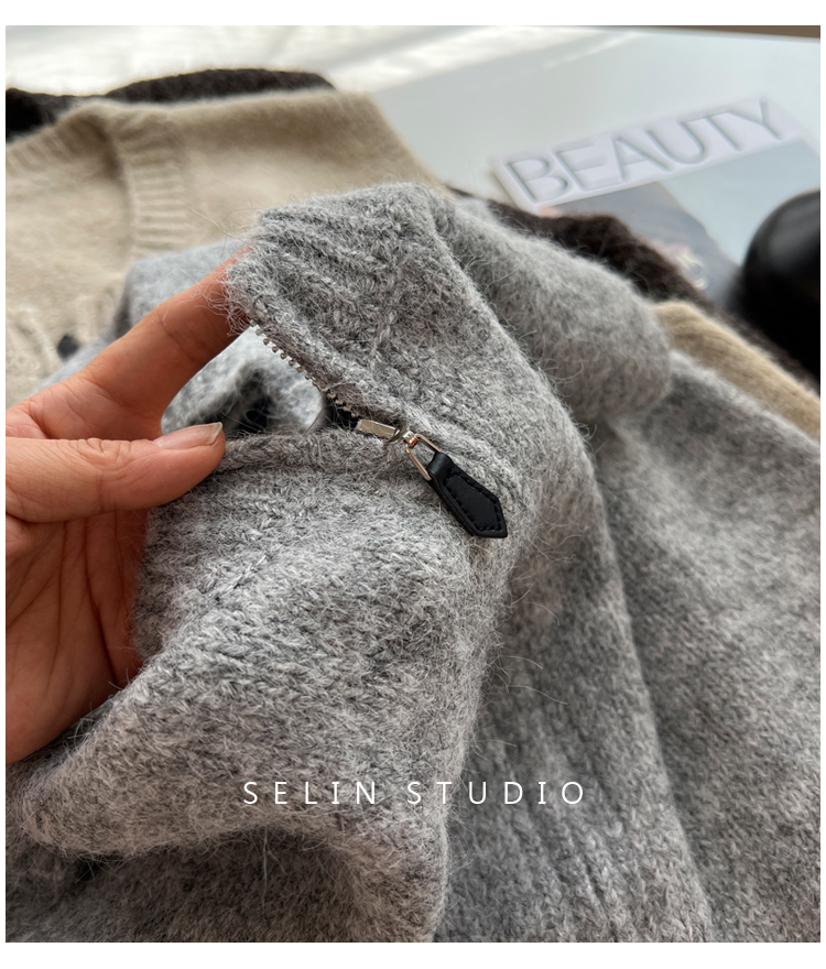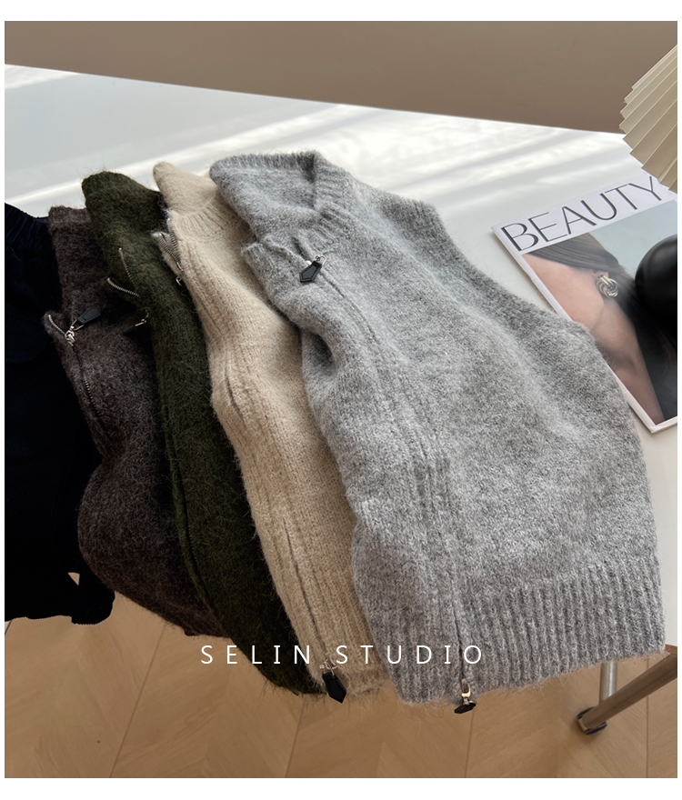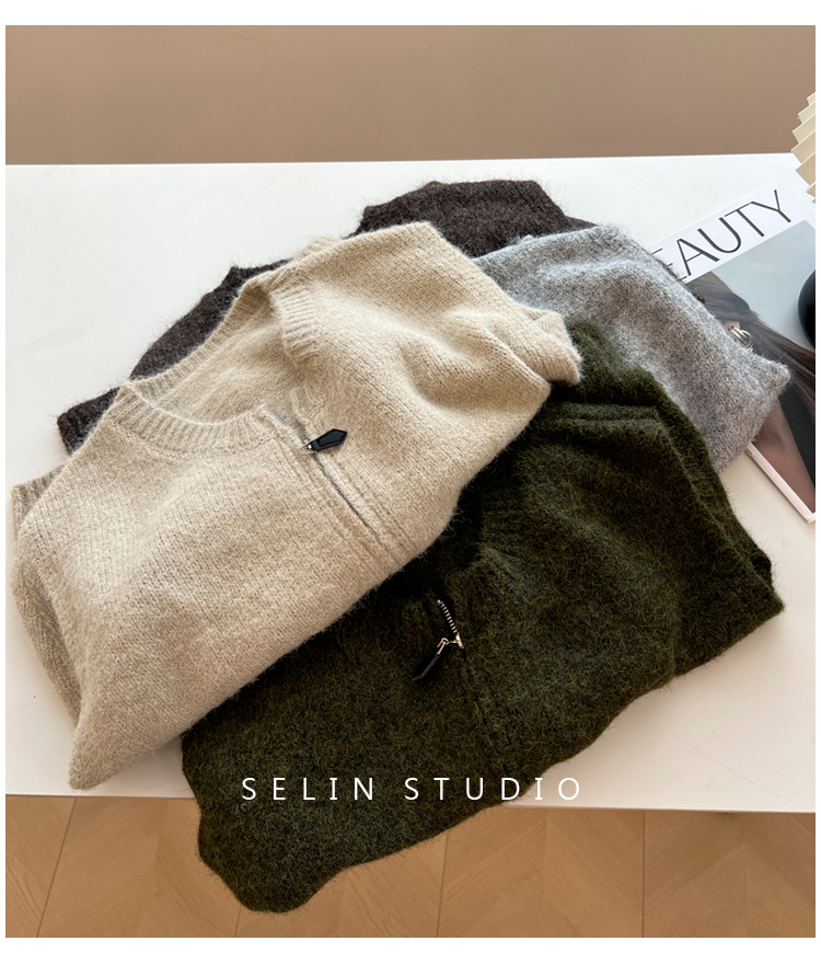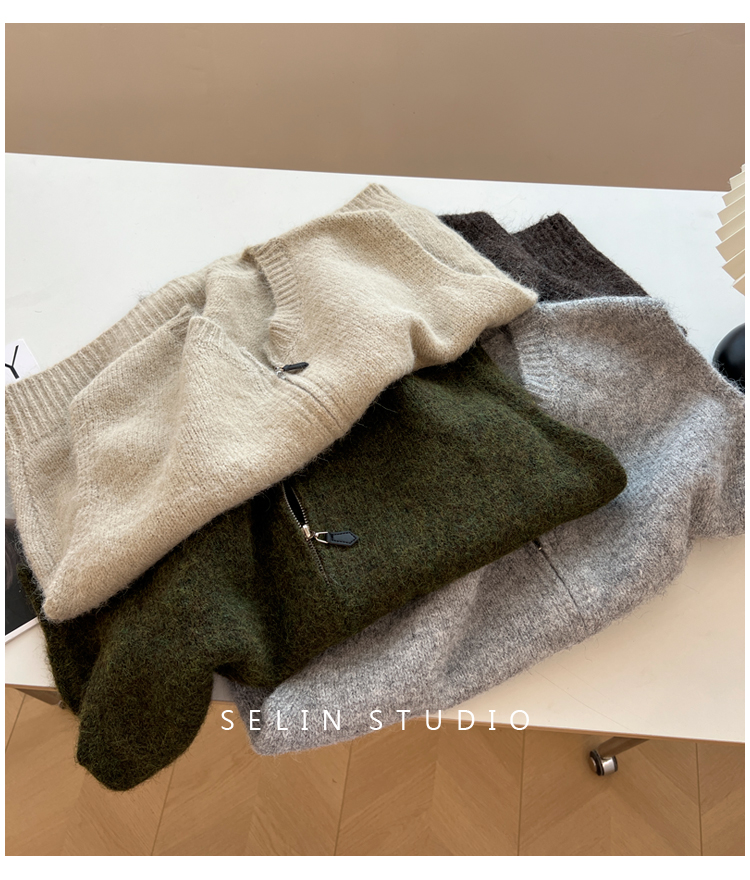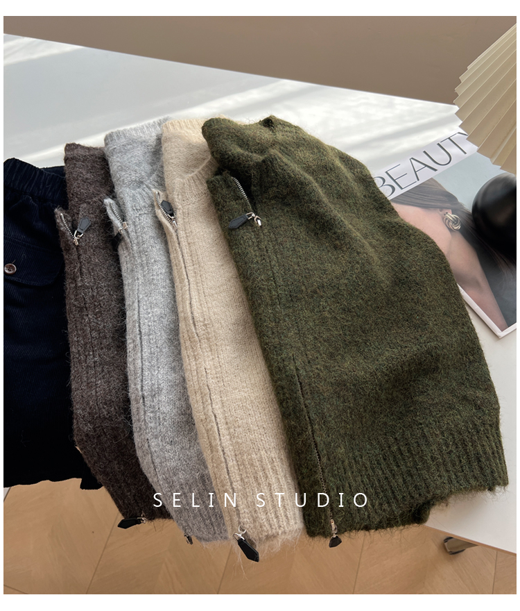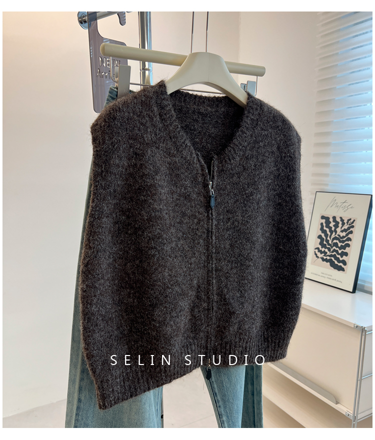 百搭基礎簡約拉鍊開衫針織馬甲女寬松小衆減齡學生氣質毛衣背心秋