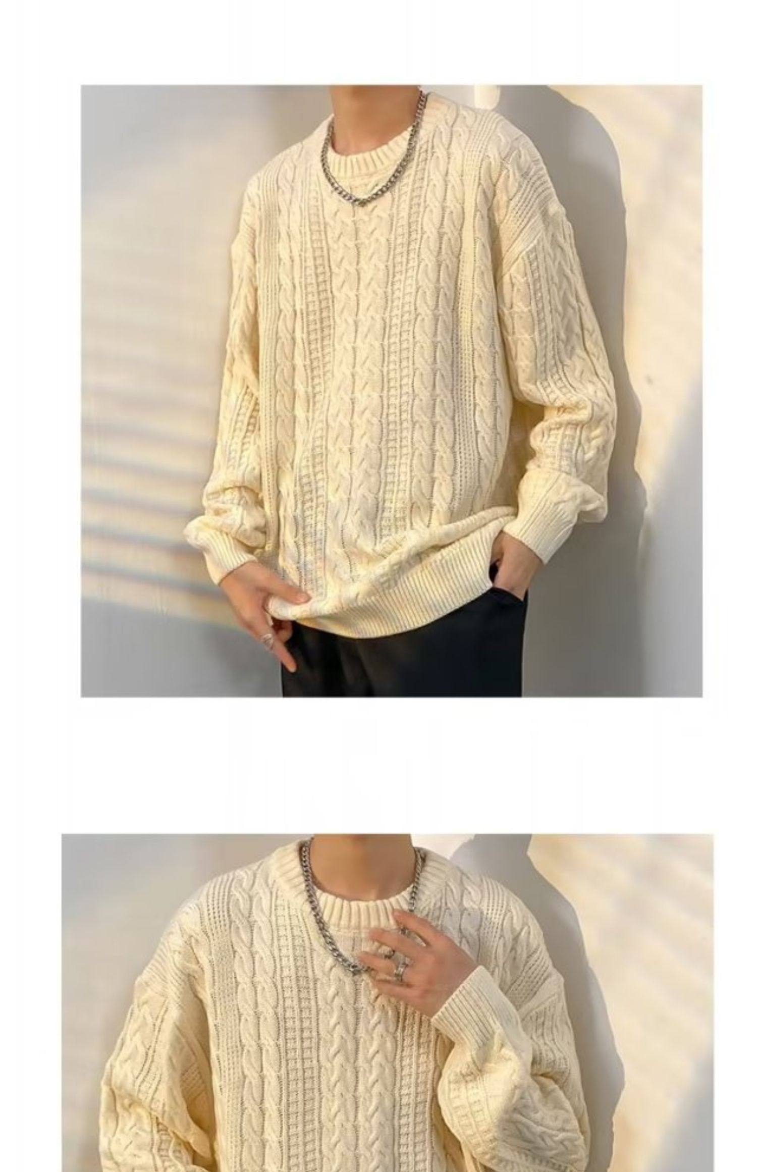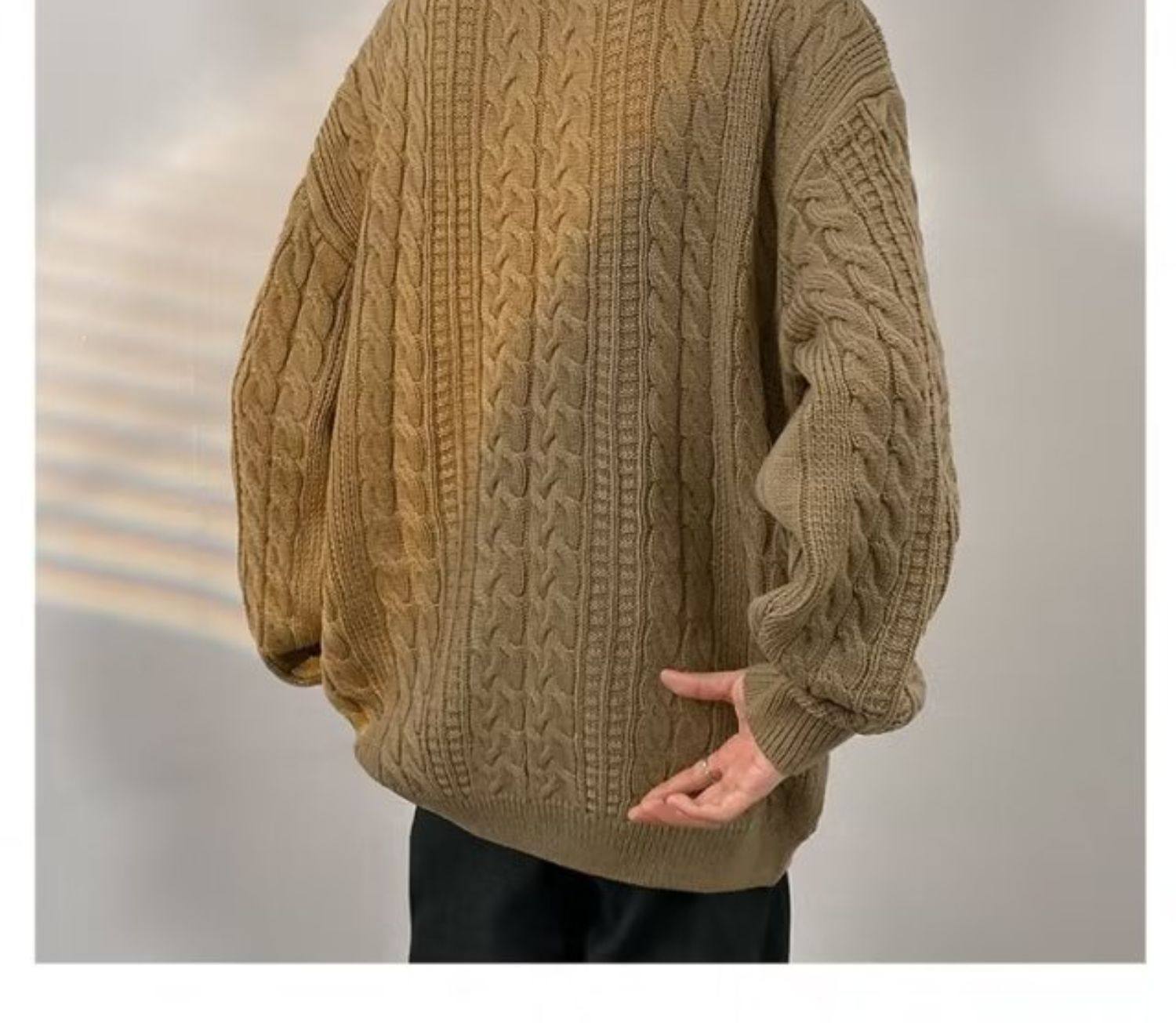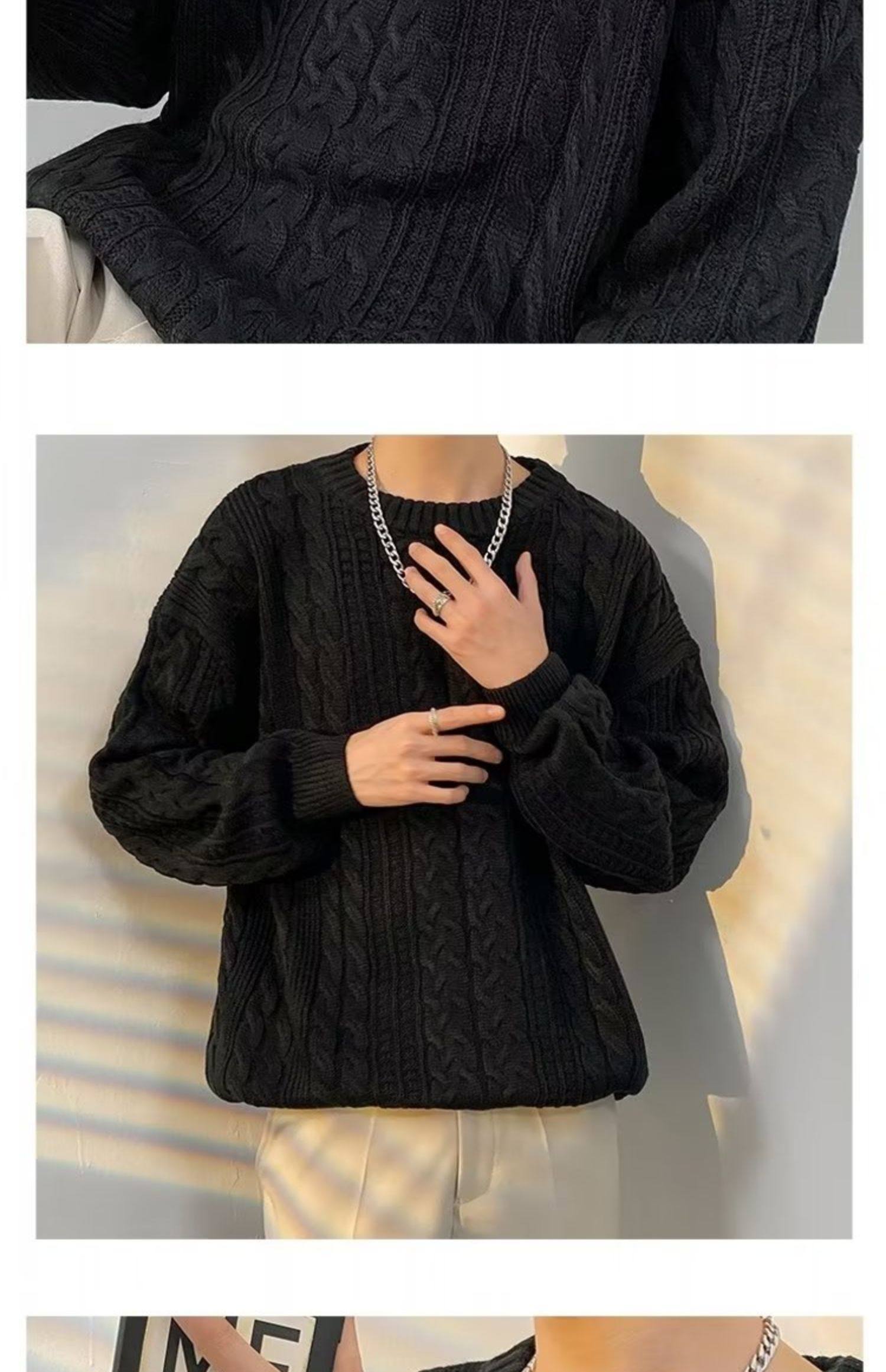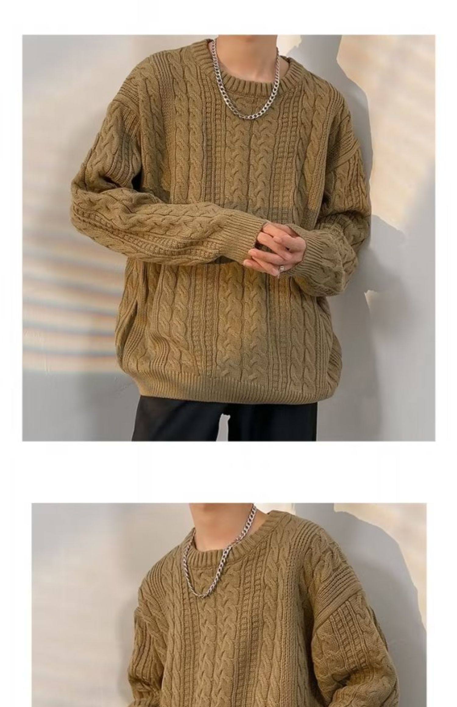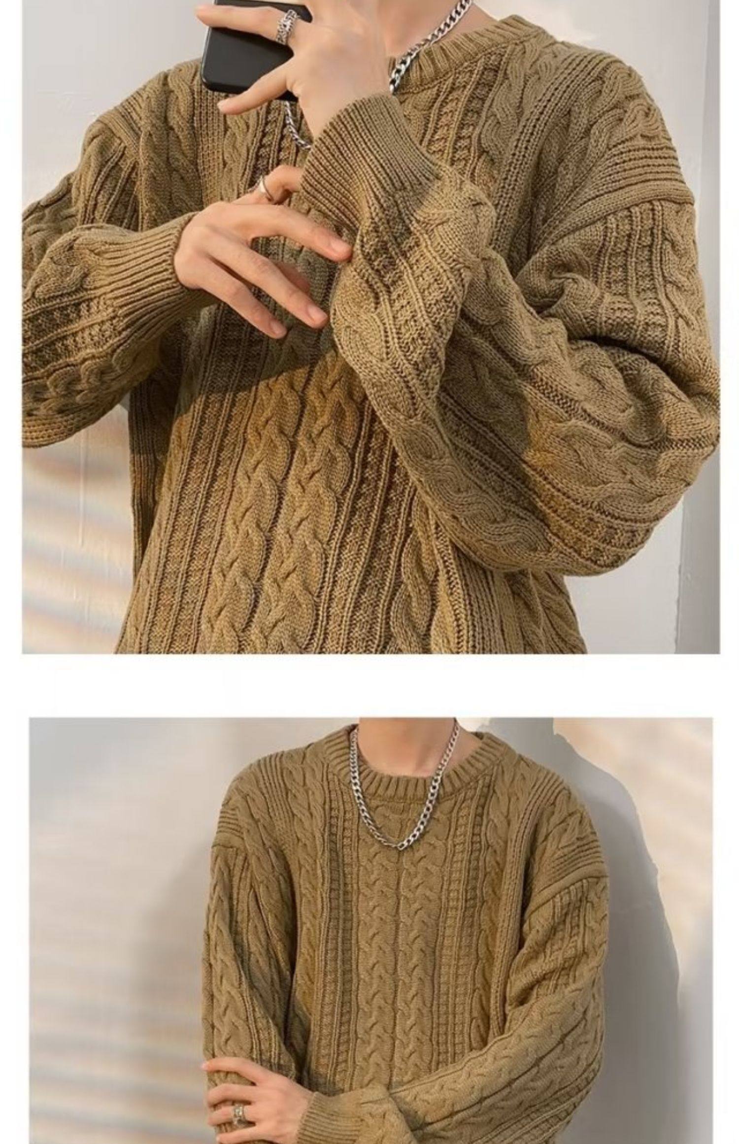 麻花毛衣男款圓領寬鬆ins潮牌秋冬季復古線衣港風潮流休閒針織衫