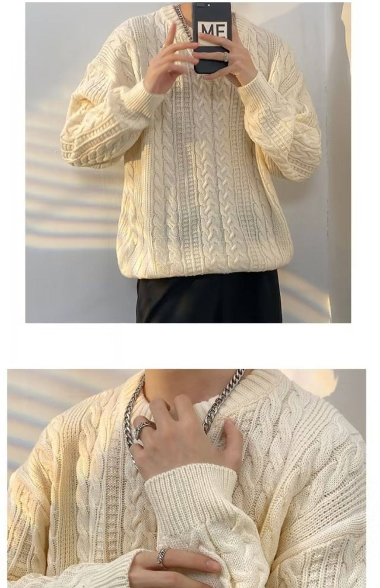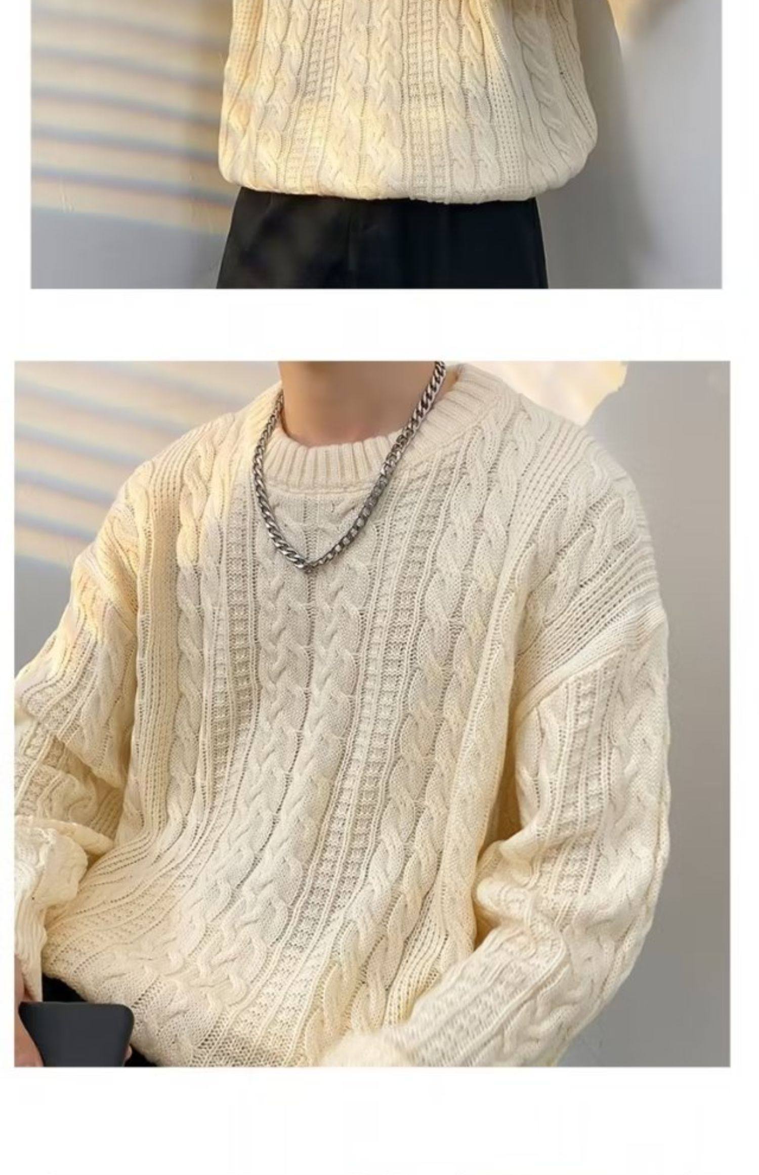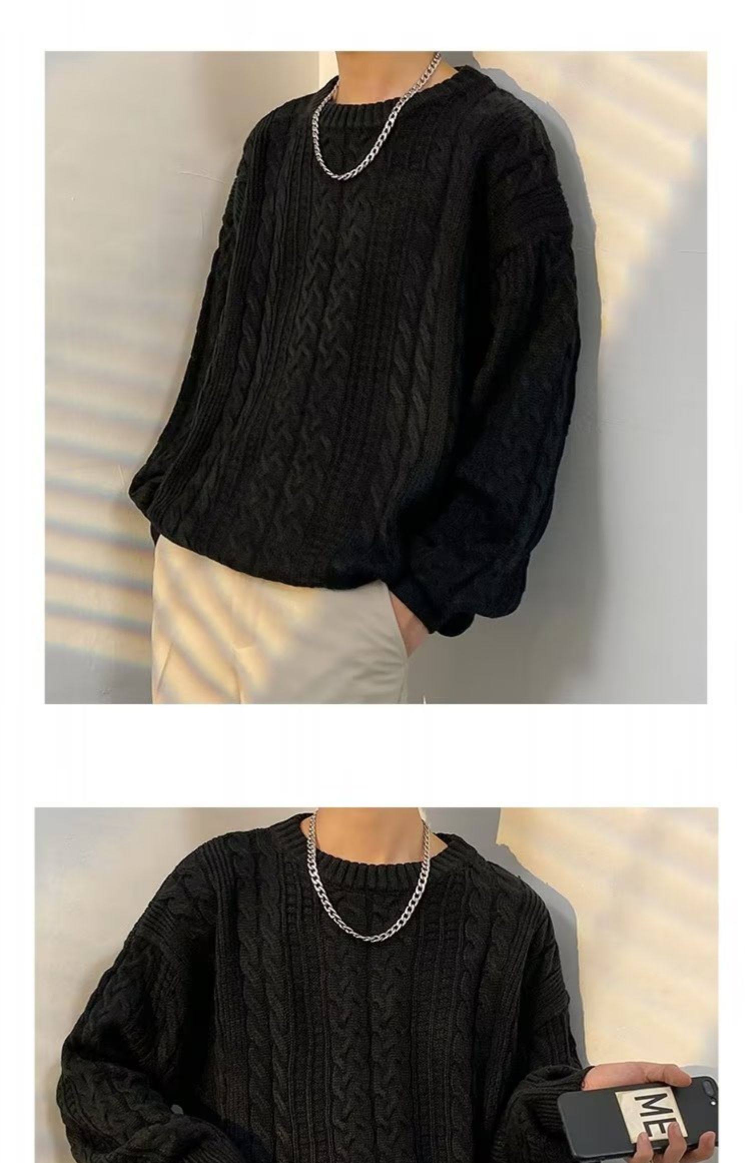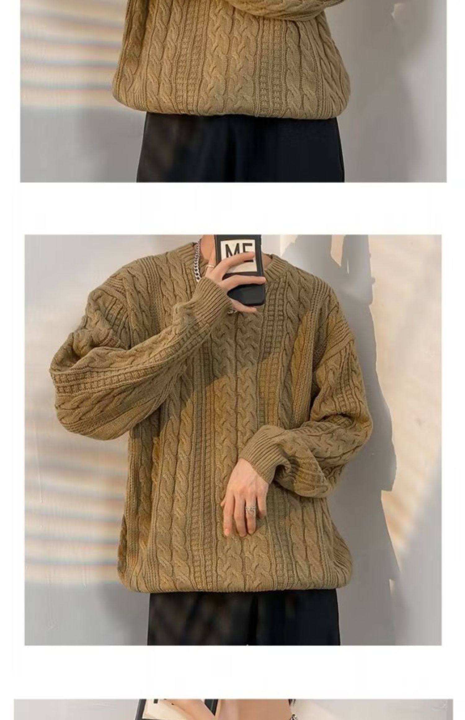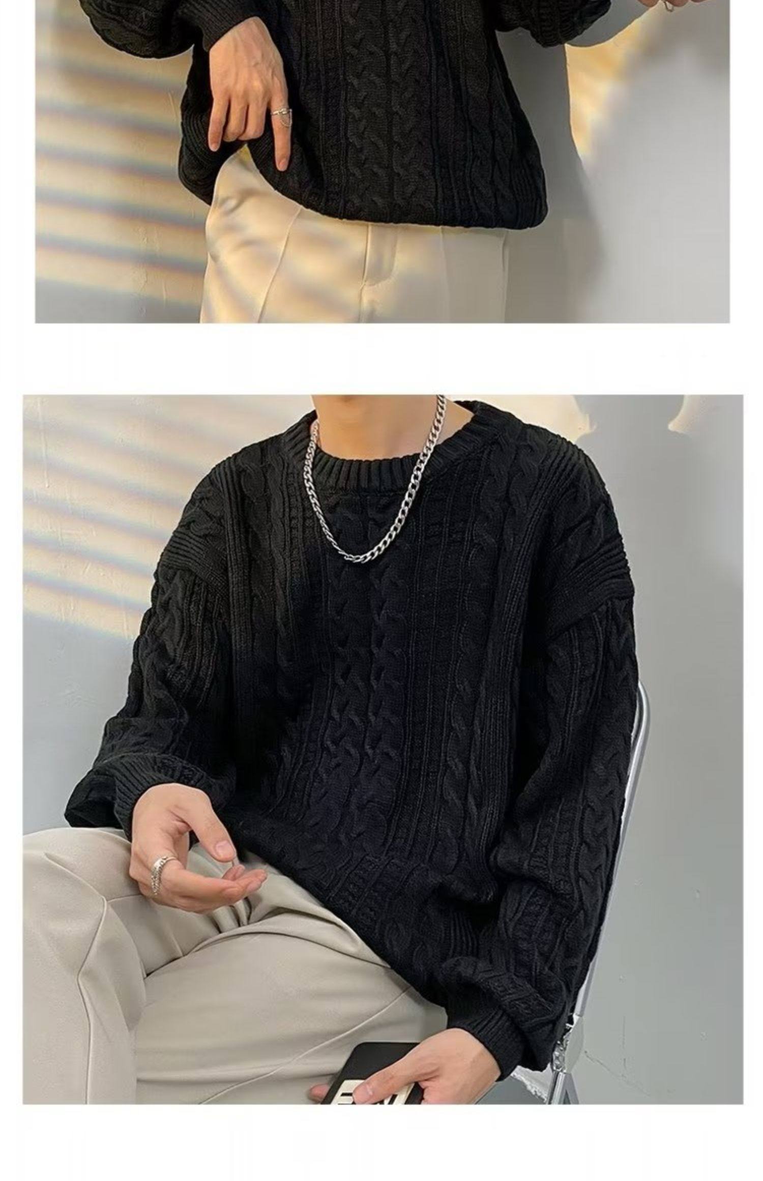 麻花毛衣男款圓領寬鬆ins潮牌秋冬季復古線衣港風潮流休閒針織衫