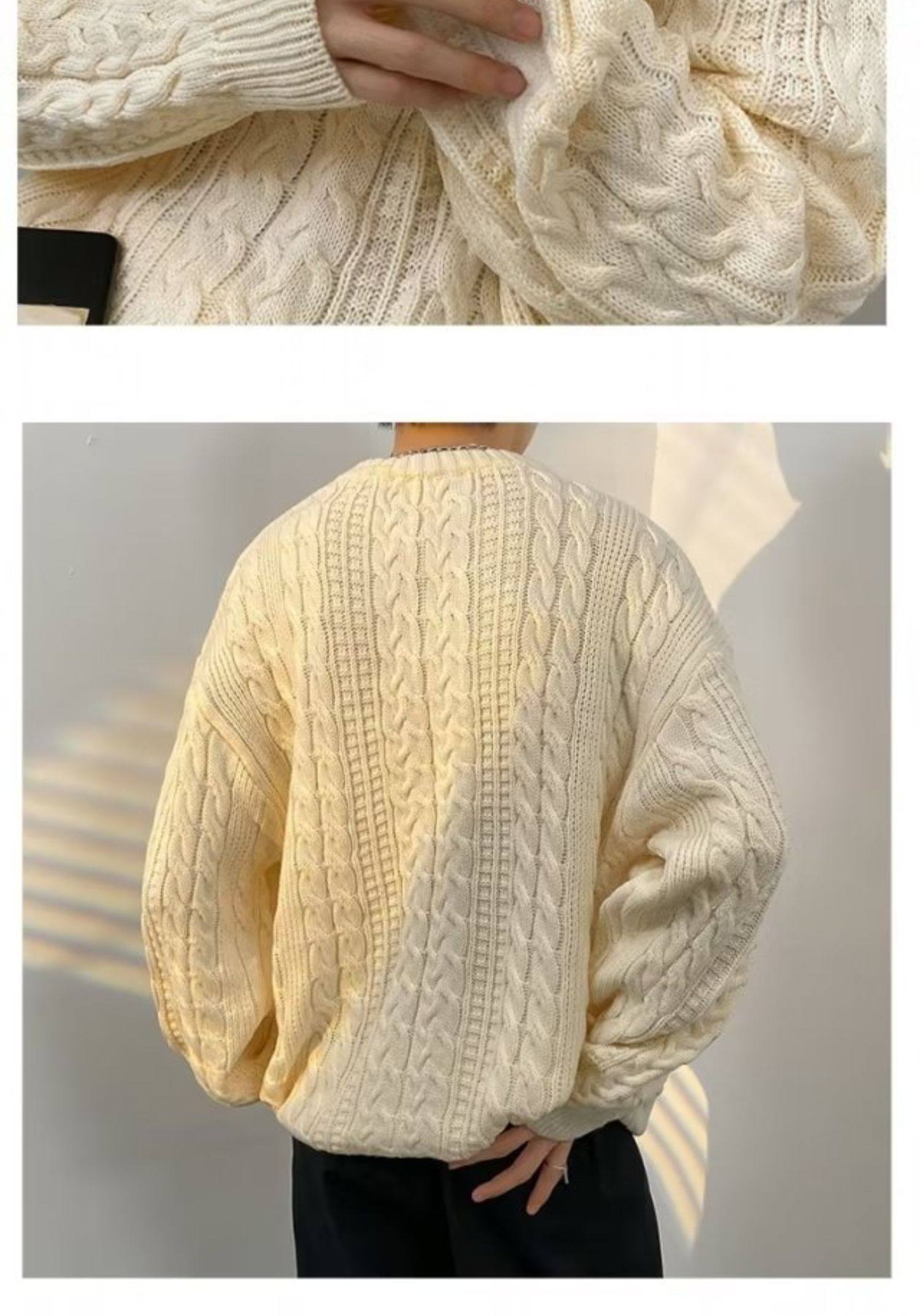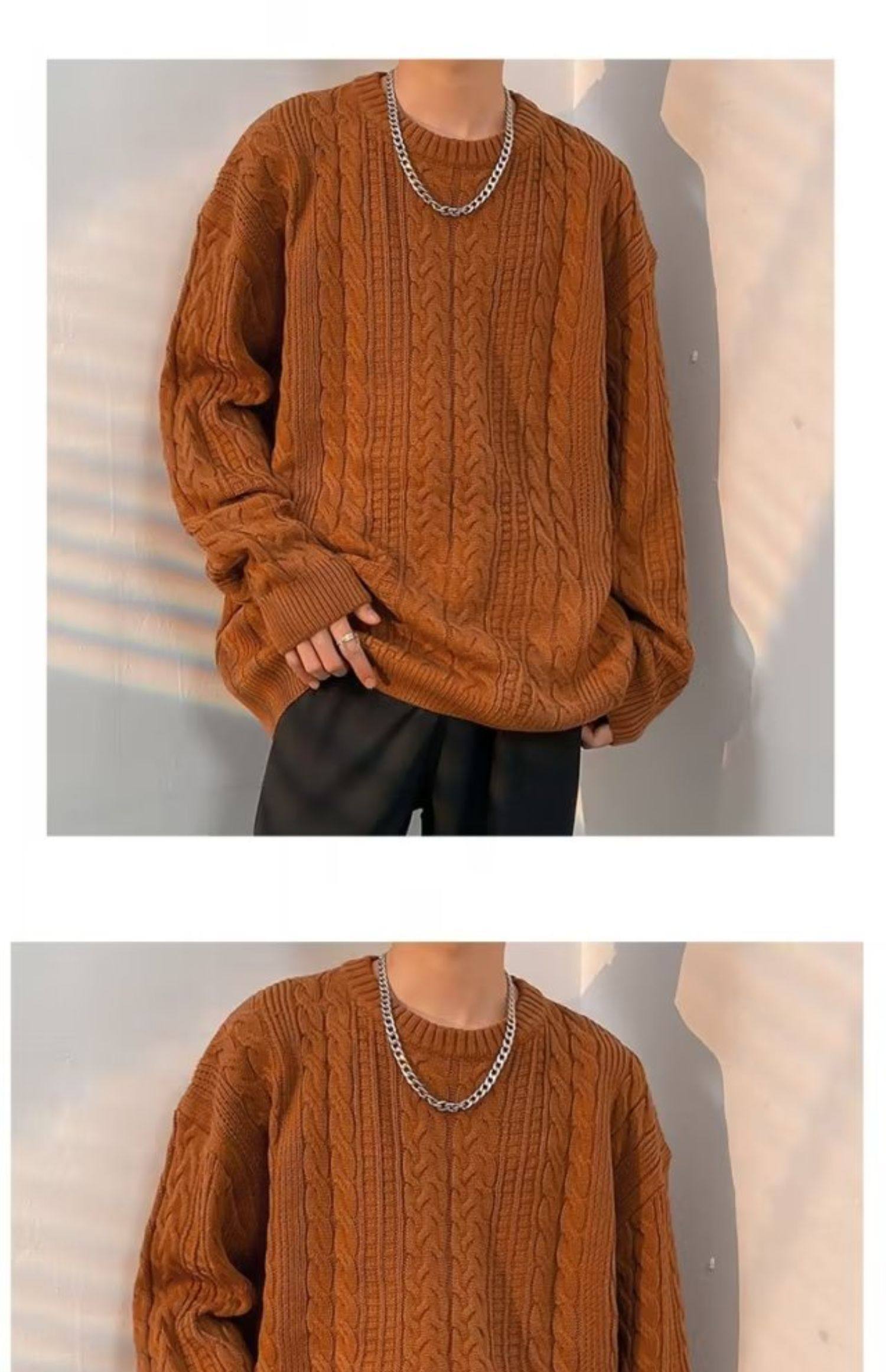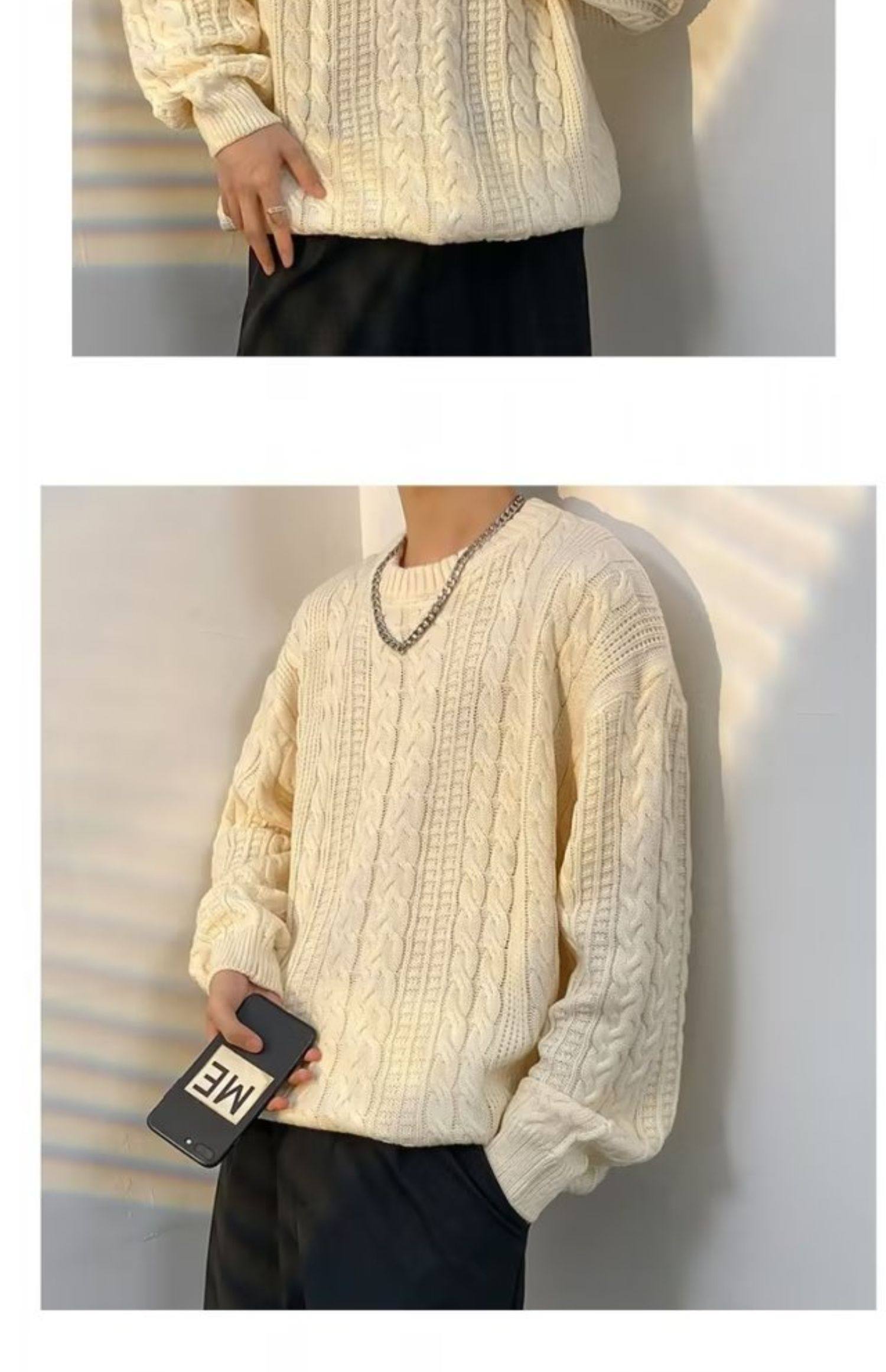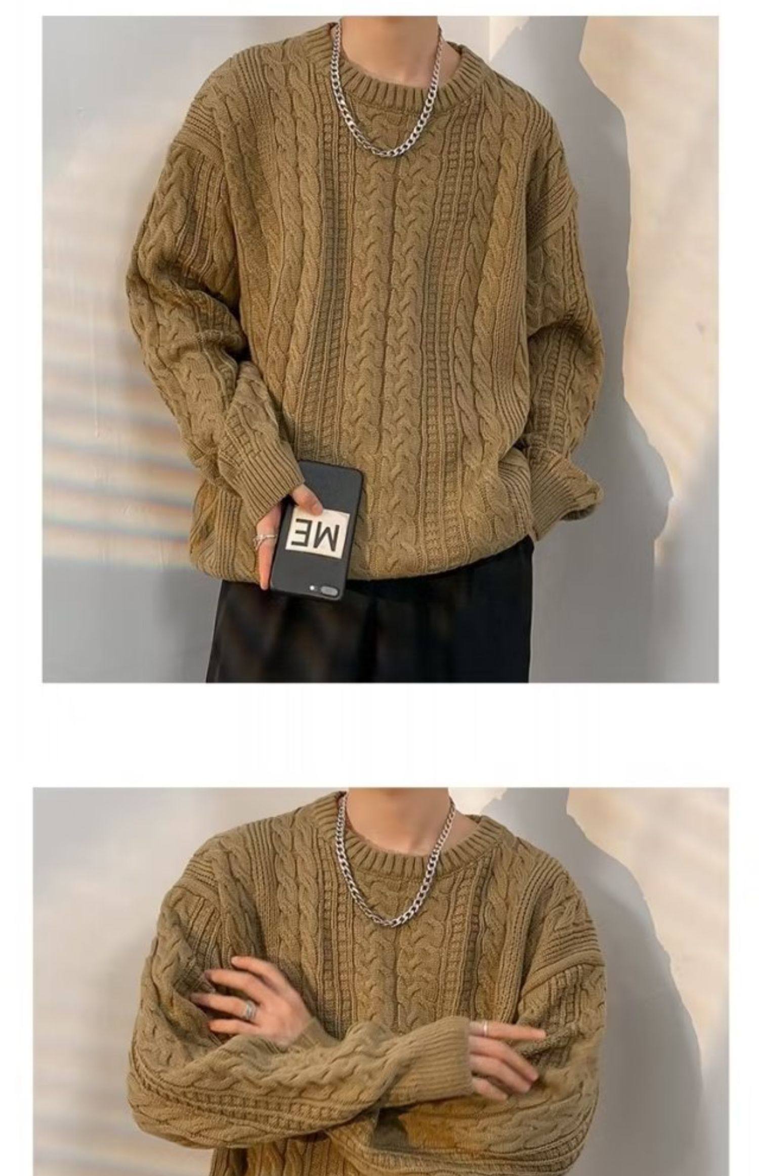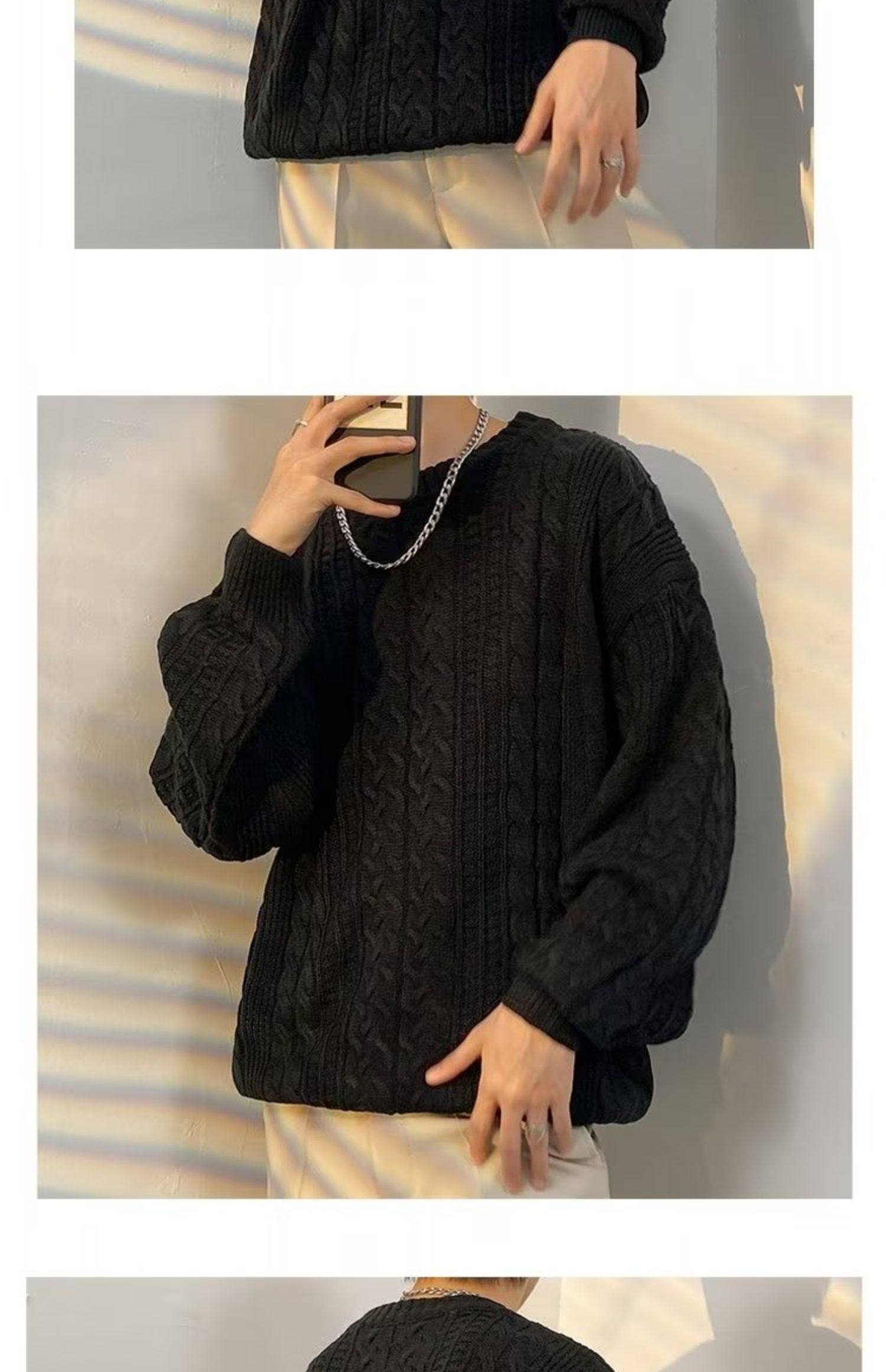 麻花毛衣男款圓領寬鬆ins潮牌秋冬季復古線衣港風潮流休閒針織衫