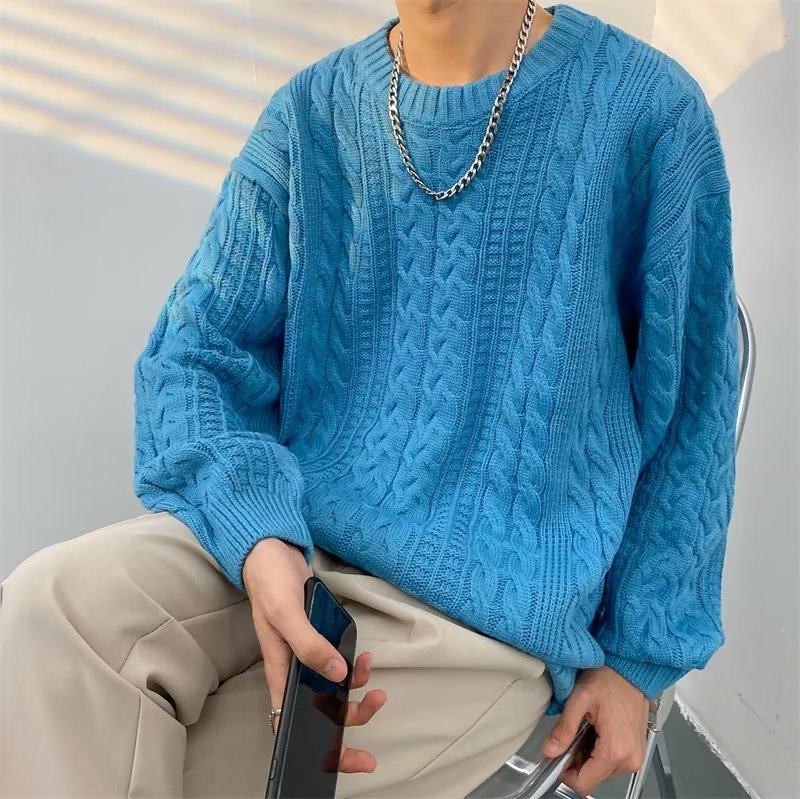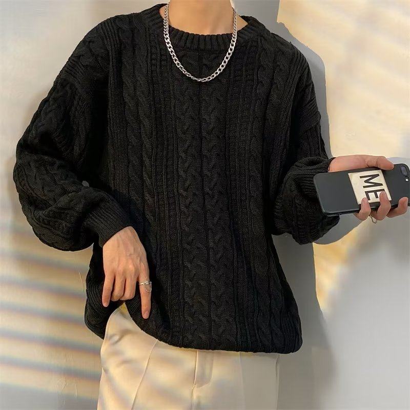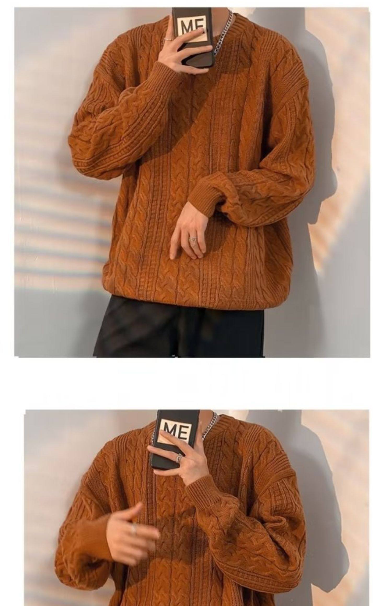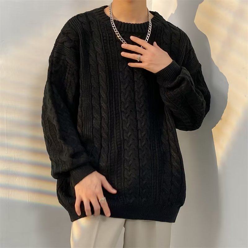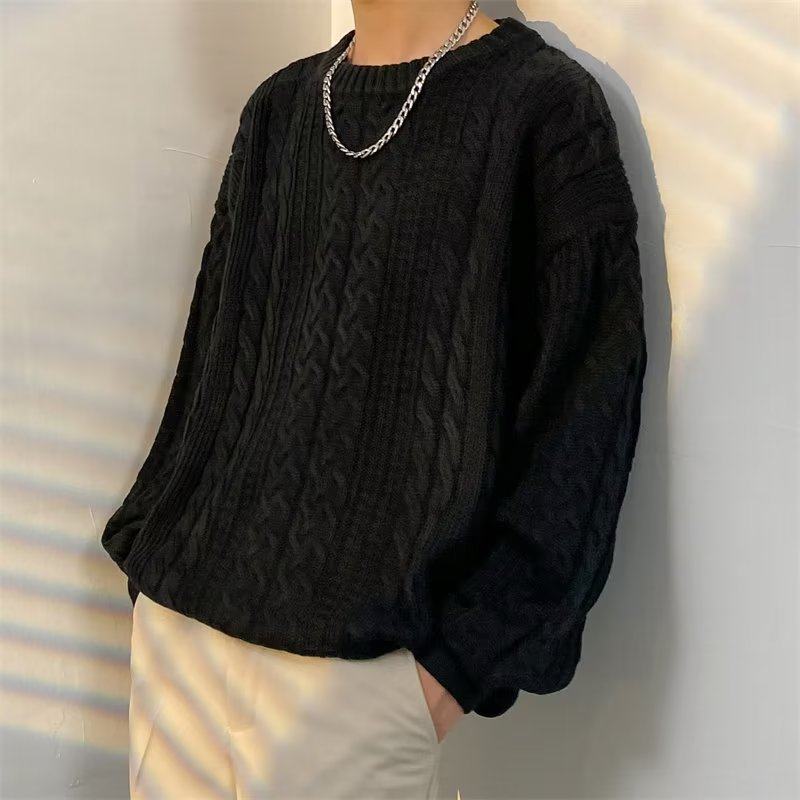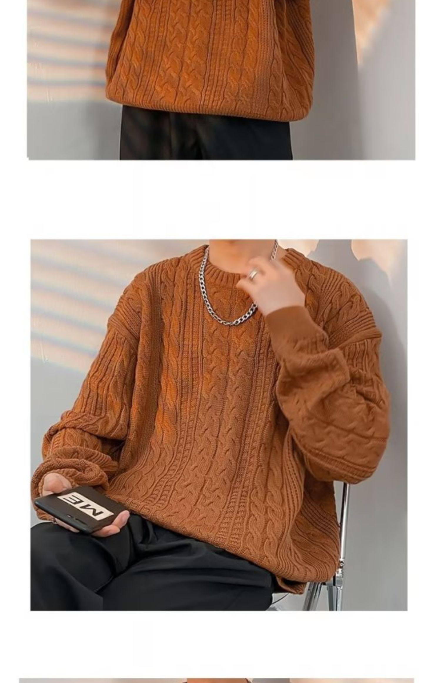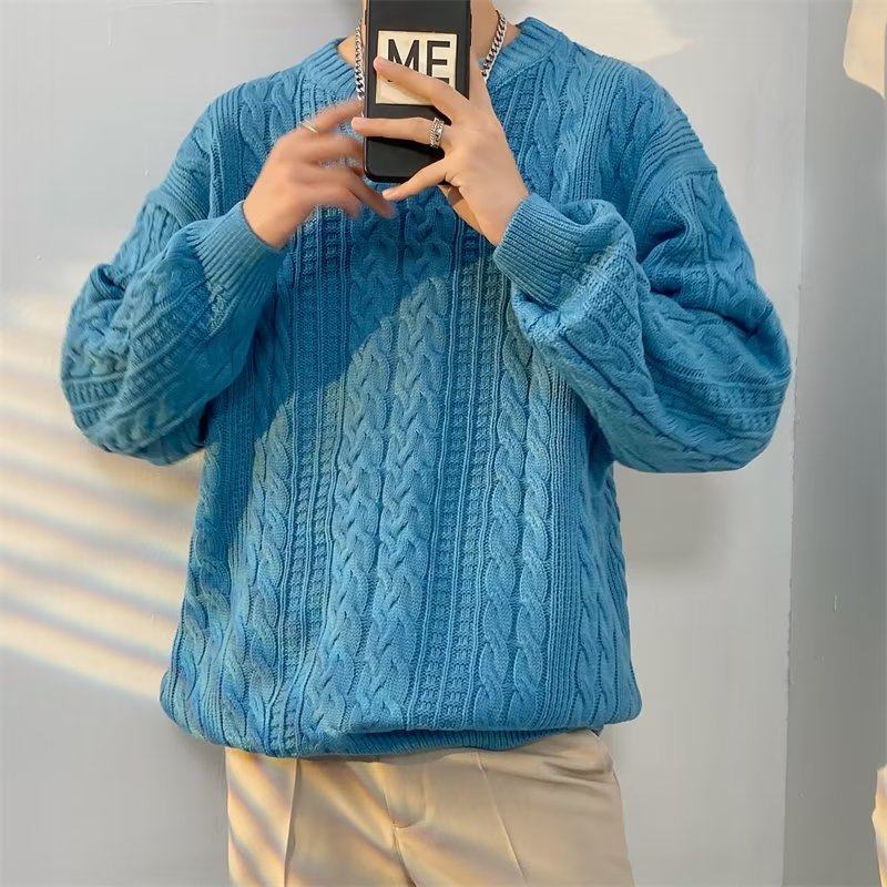 麻花毛衣男款圓領寬鬆ins潮牌秋冬季復古線衣港風潮流休閒針織衫
