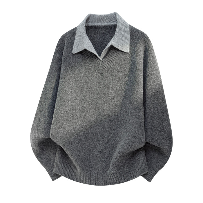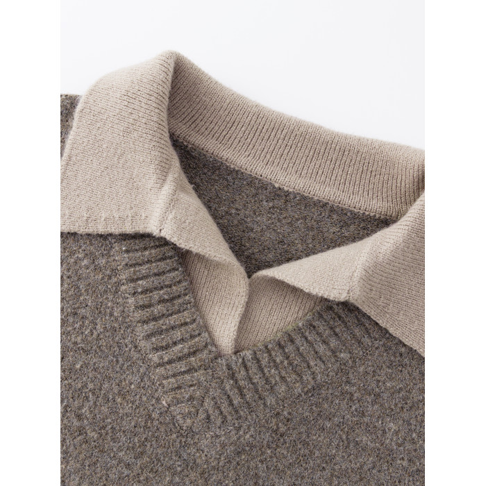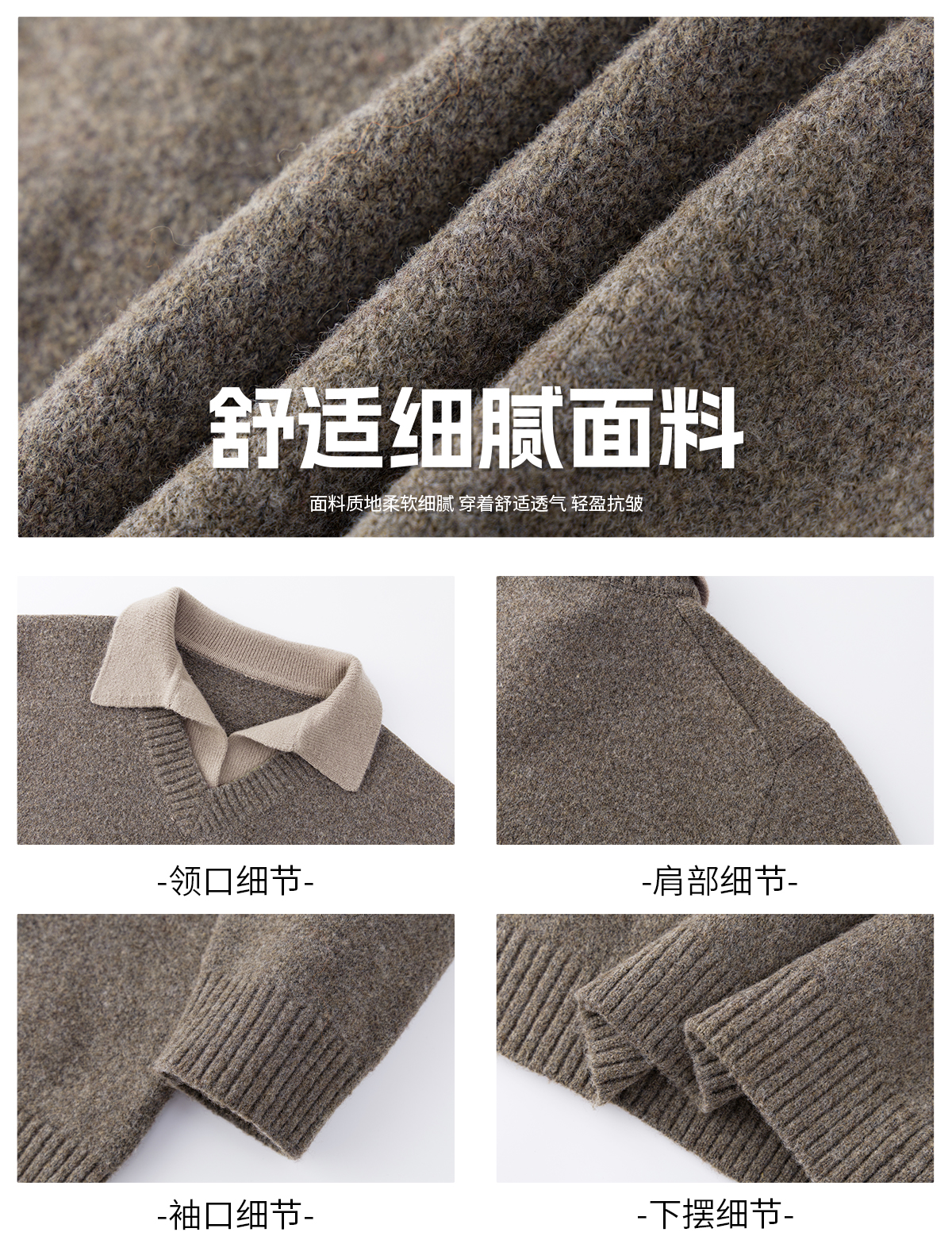 WOODSOON假兩件翻領毛衣針織衫秋冬新款潮流百搭寬松休閒男士上衣