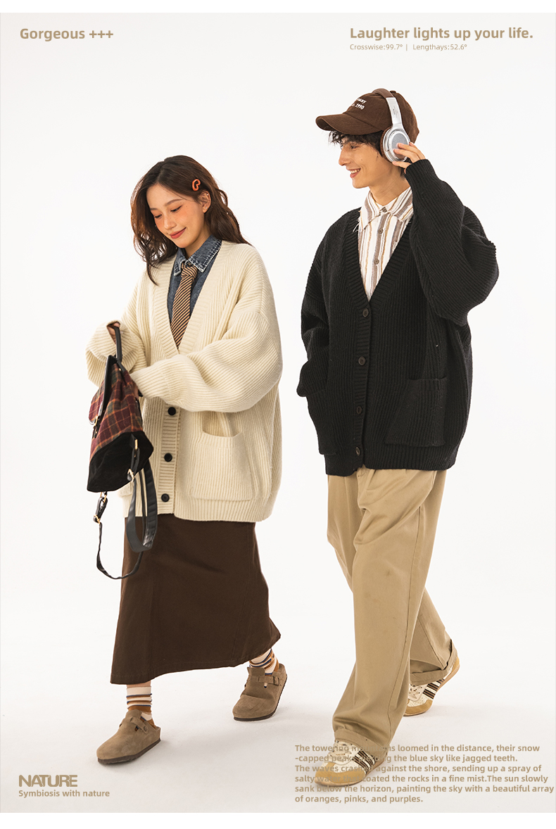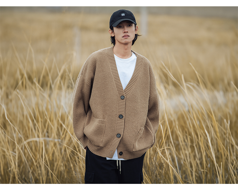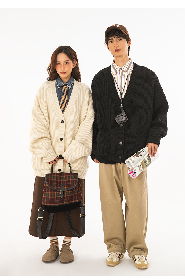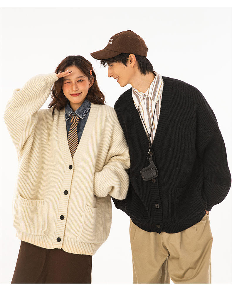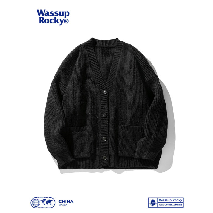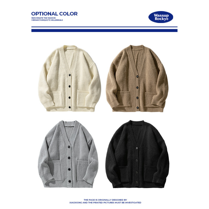WASSUP日系慵懶風V領針織衫毛衣男女秋冬寬松百搭開衫外套潮流牌