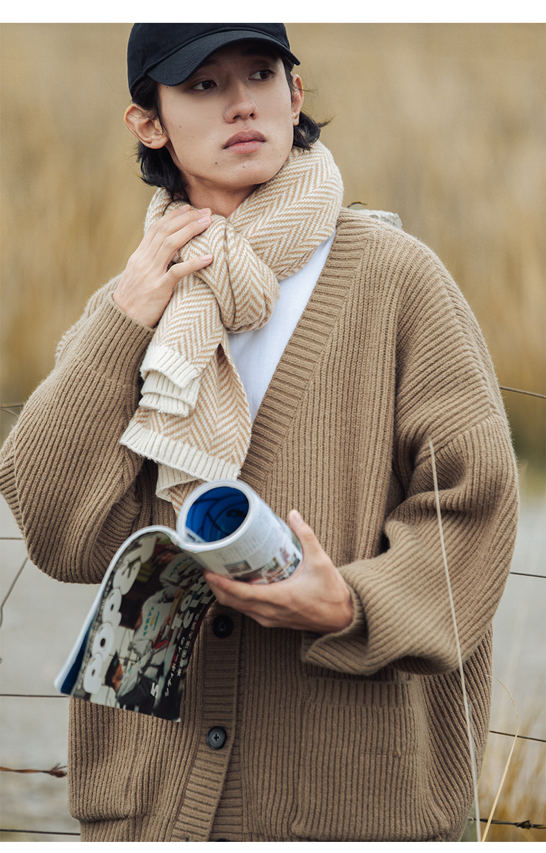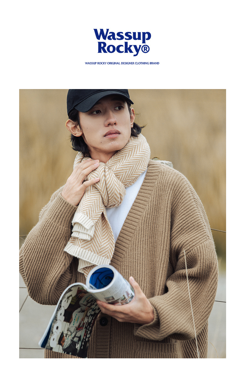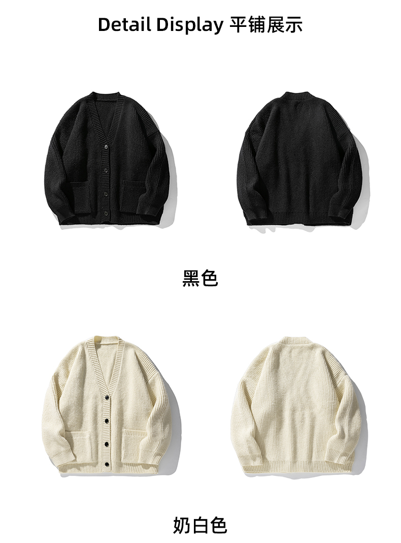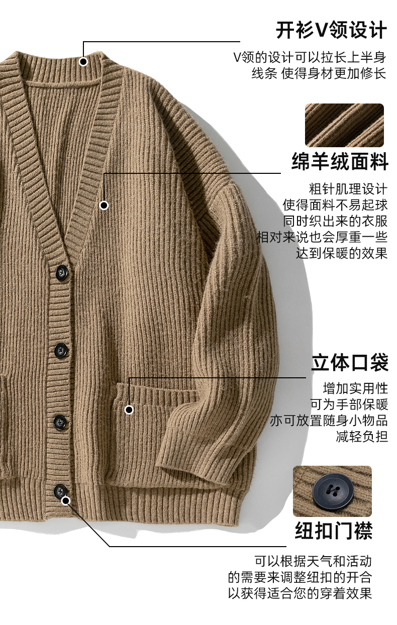 WASSUP日系慵懶風V領針織衫毛衣男女秋冬寬松百搭開衫外套潮流牌