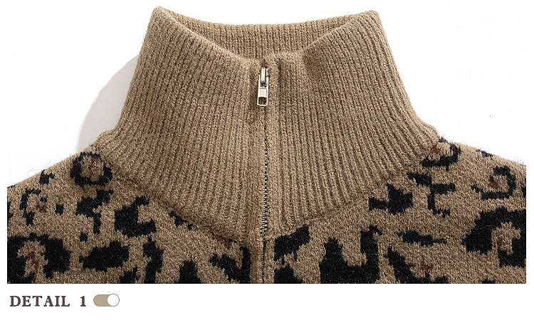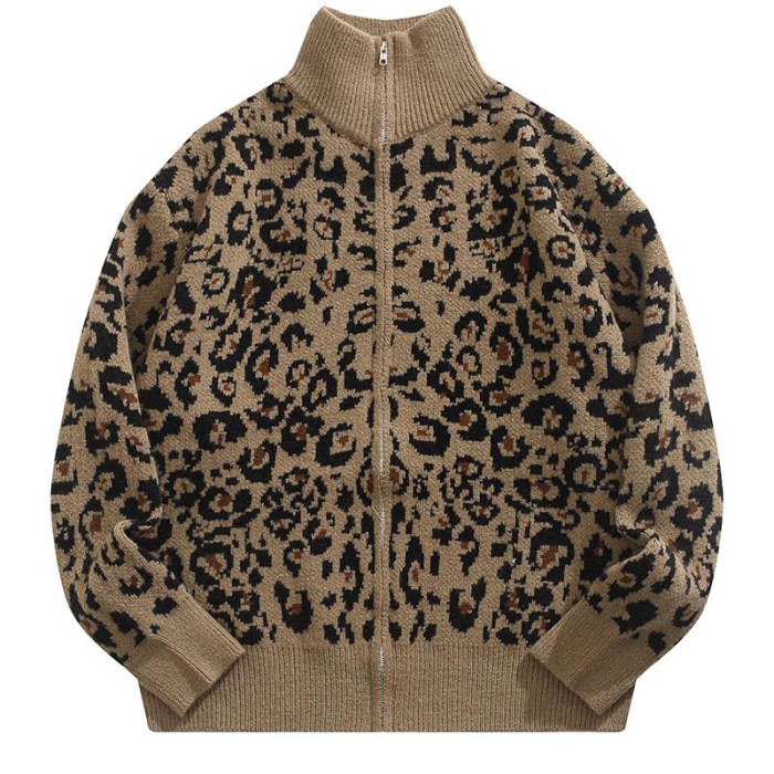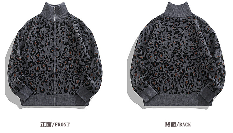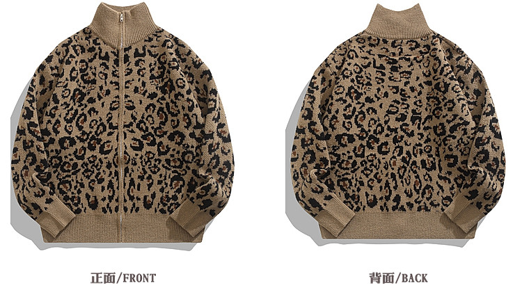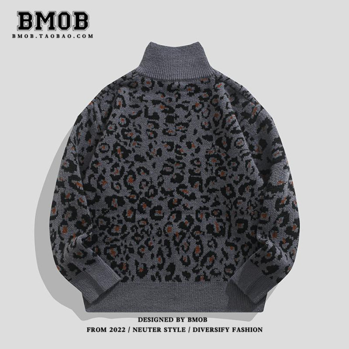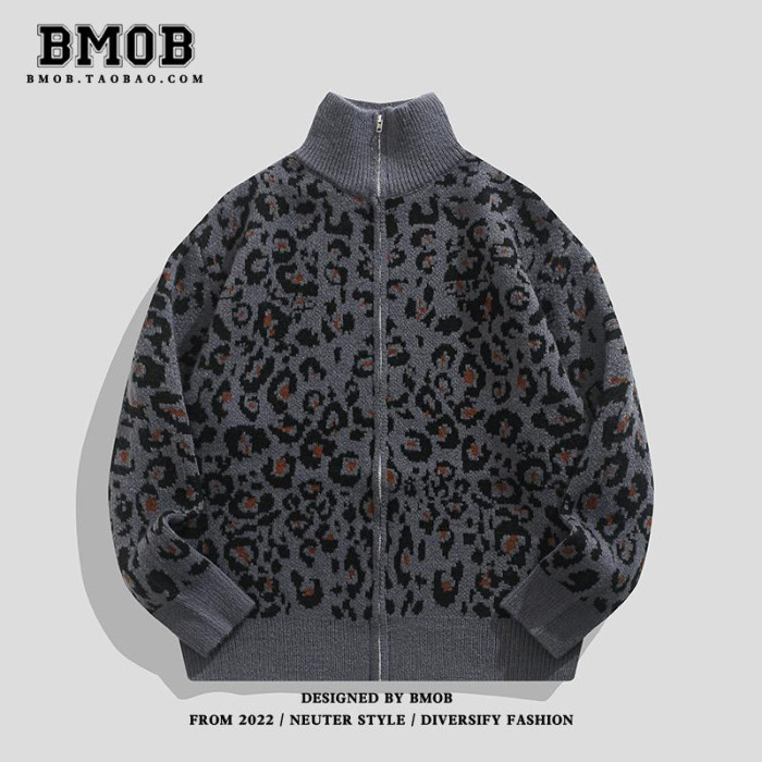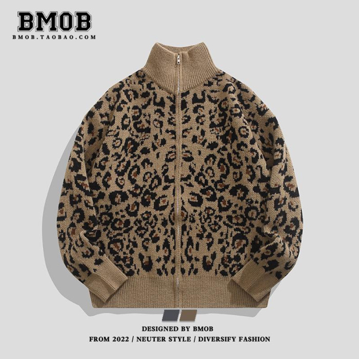BMOB美式復古豹紋開衫毛衣男女秋冬慵嬾風設計感痞帥寬鬆針織外套