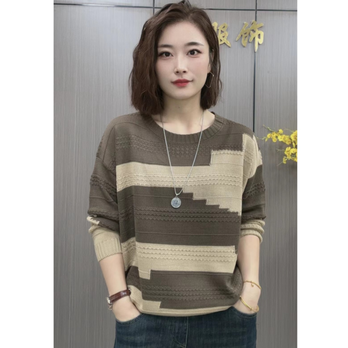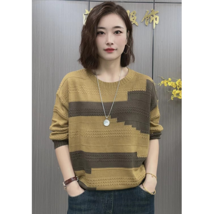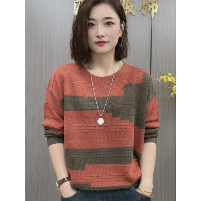 高檔撞色中年媽媽針織衫遮肚子秋裝寬松百搭休閒洋氣時尚女士毛衣