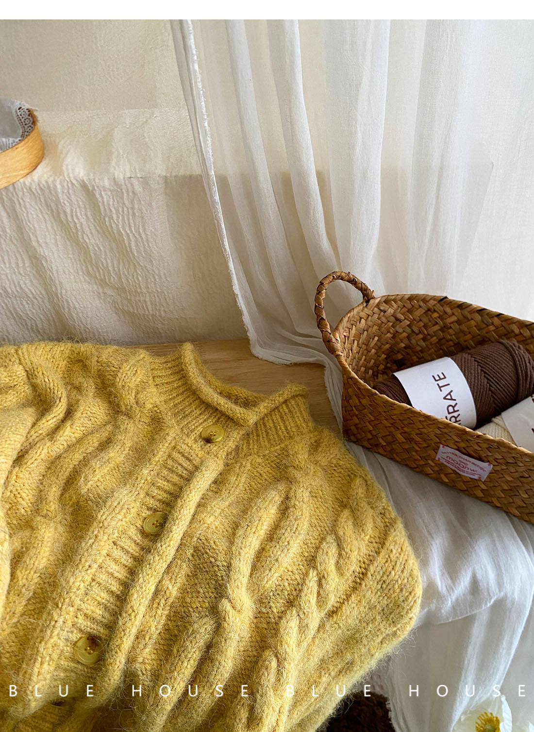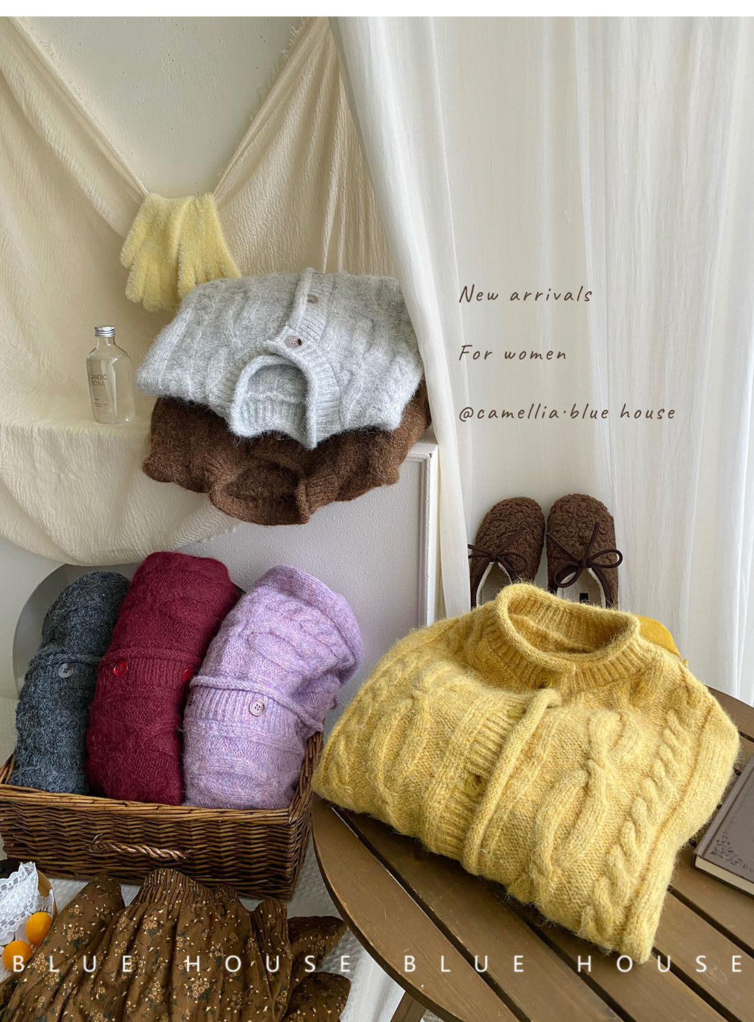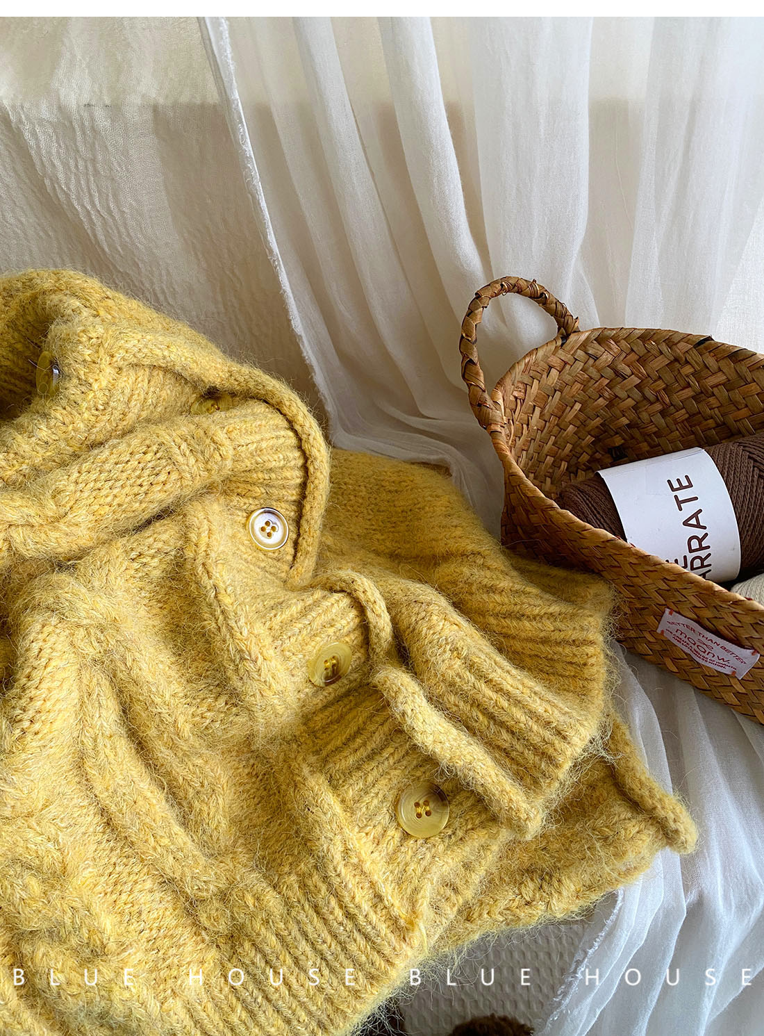 韓國復古黃色咖色羊絨麻花毛衣外套女冬溫柔圓領顯瘦百搭針織開衫
