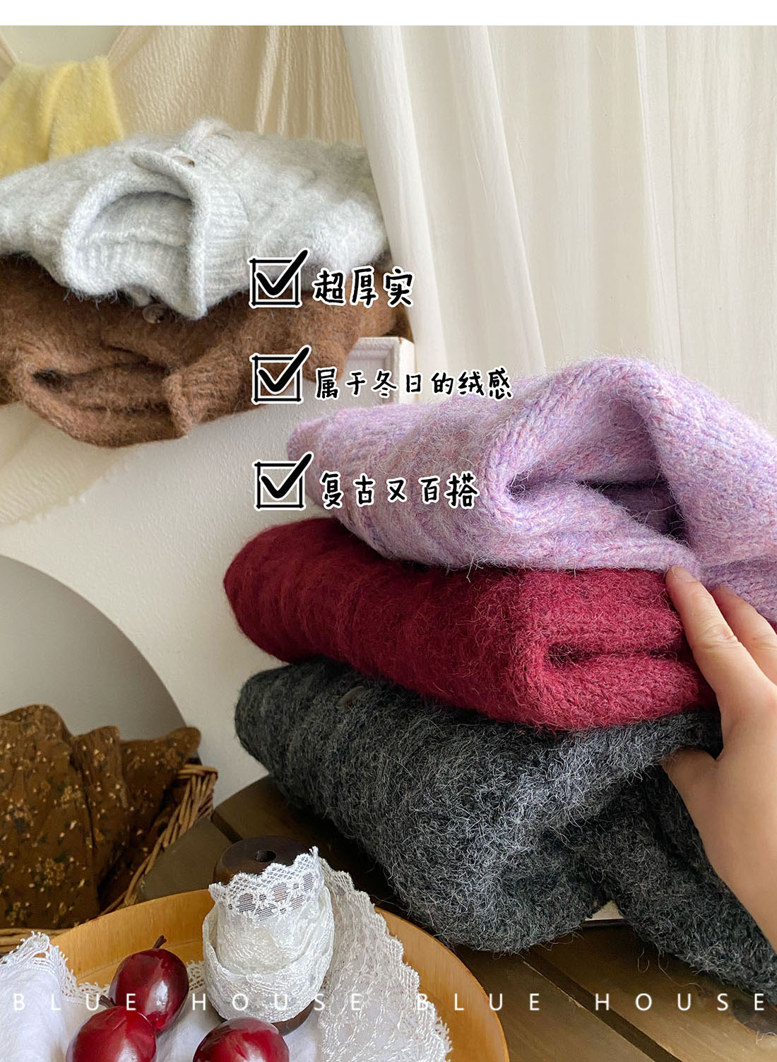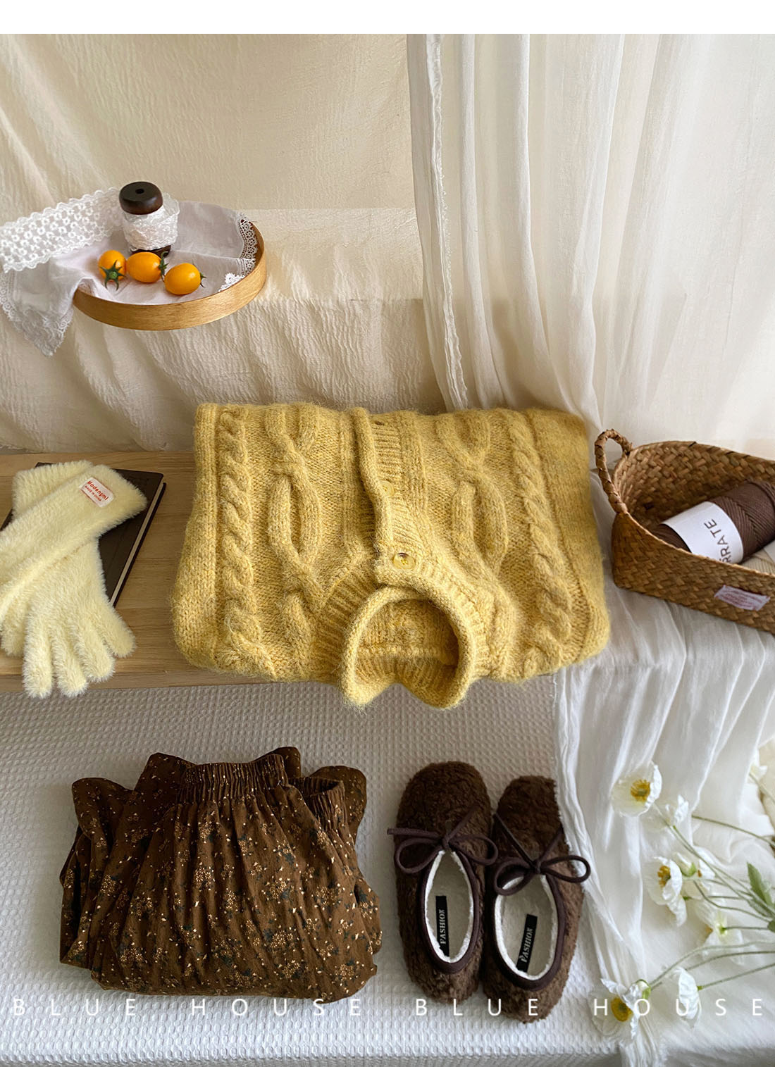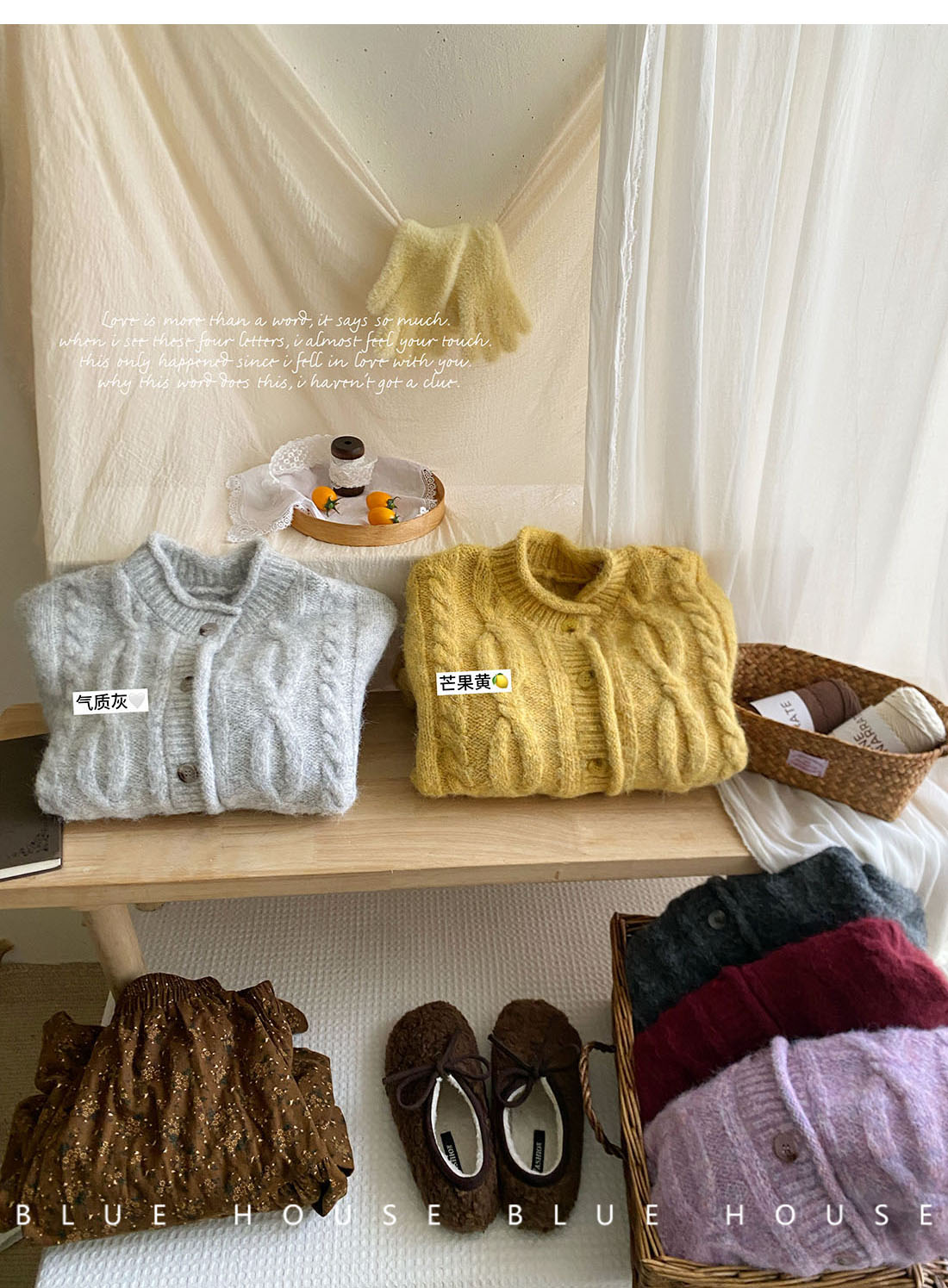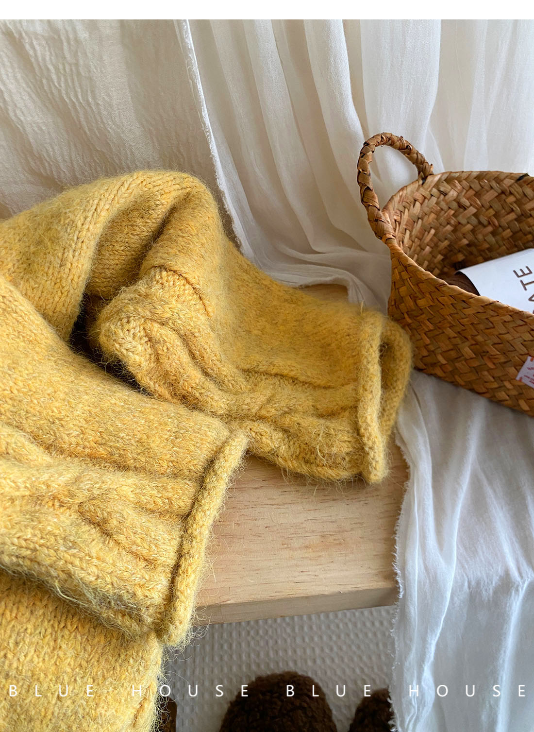 韓國復古黃色咖色羊絨麻花毛衣外套女冬溫柔圓領顯瘦百搭針織開衫