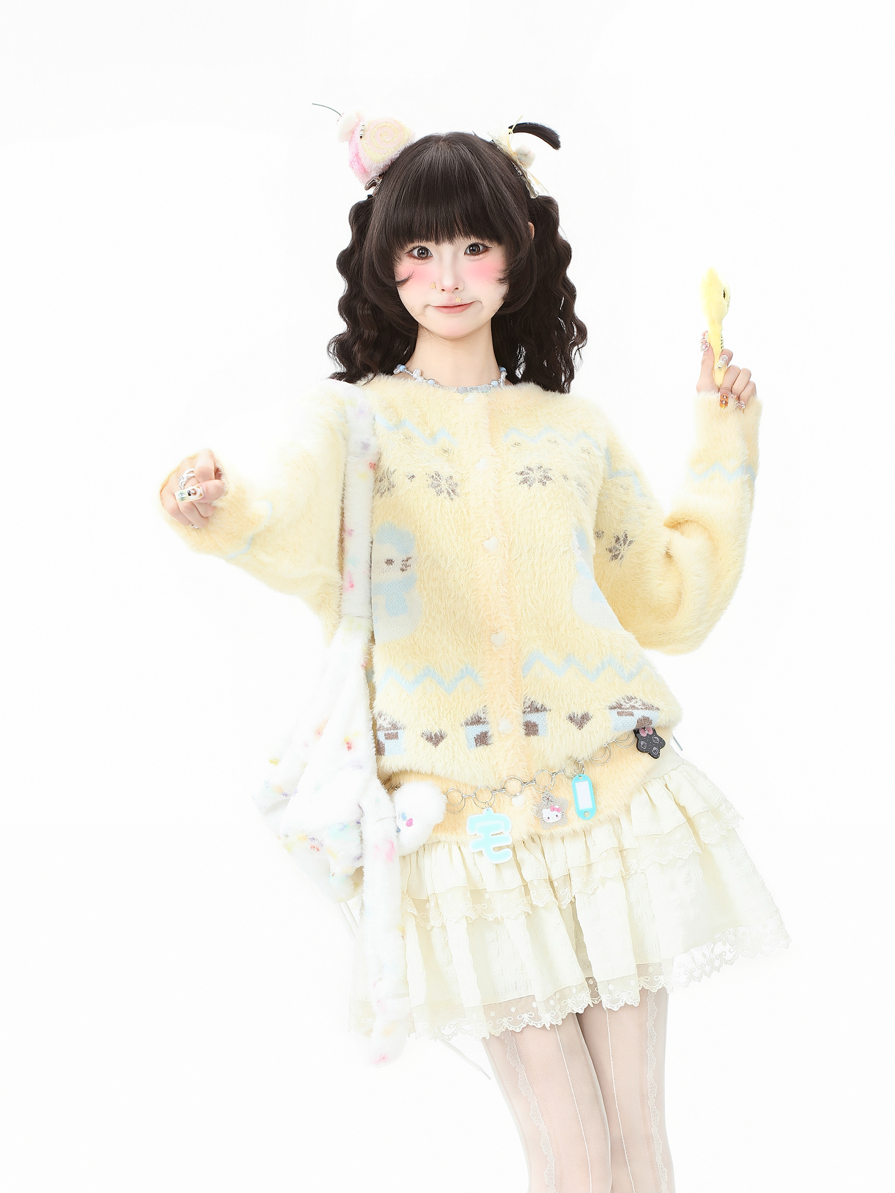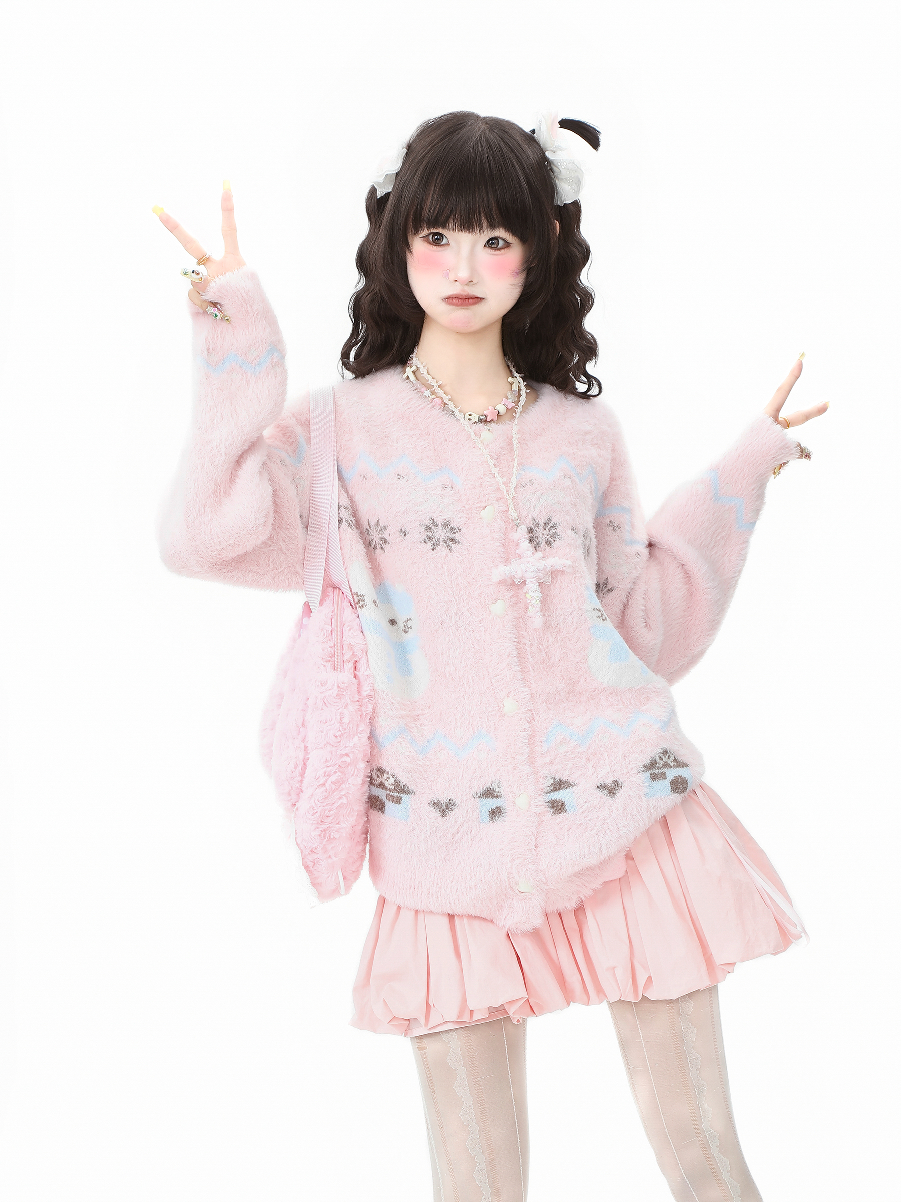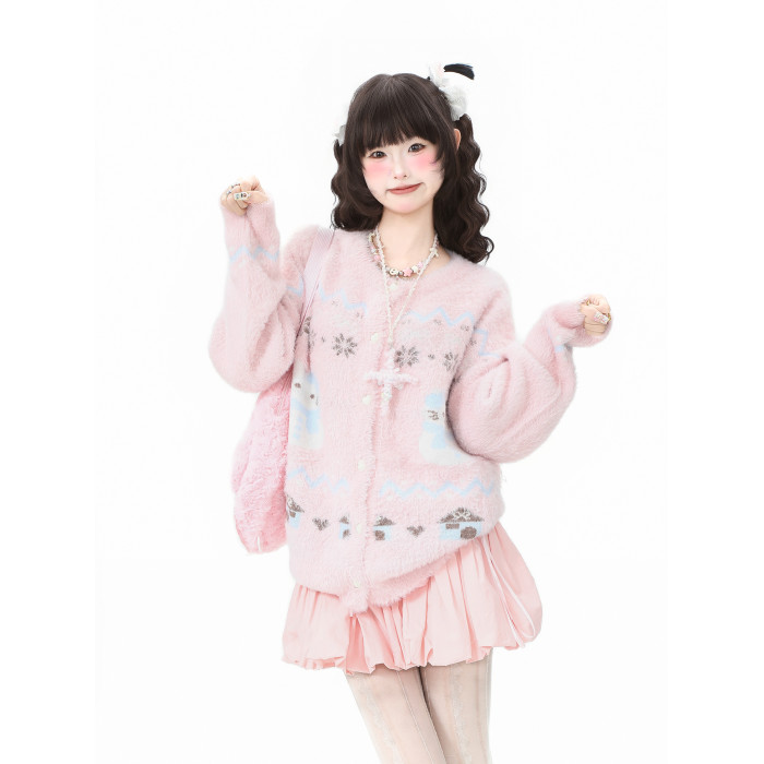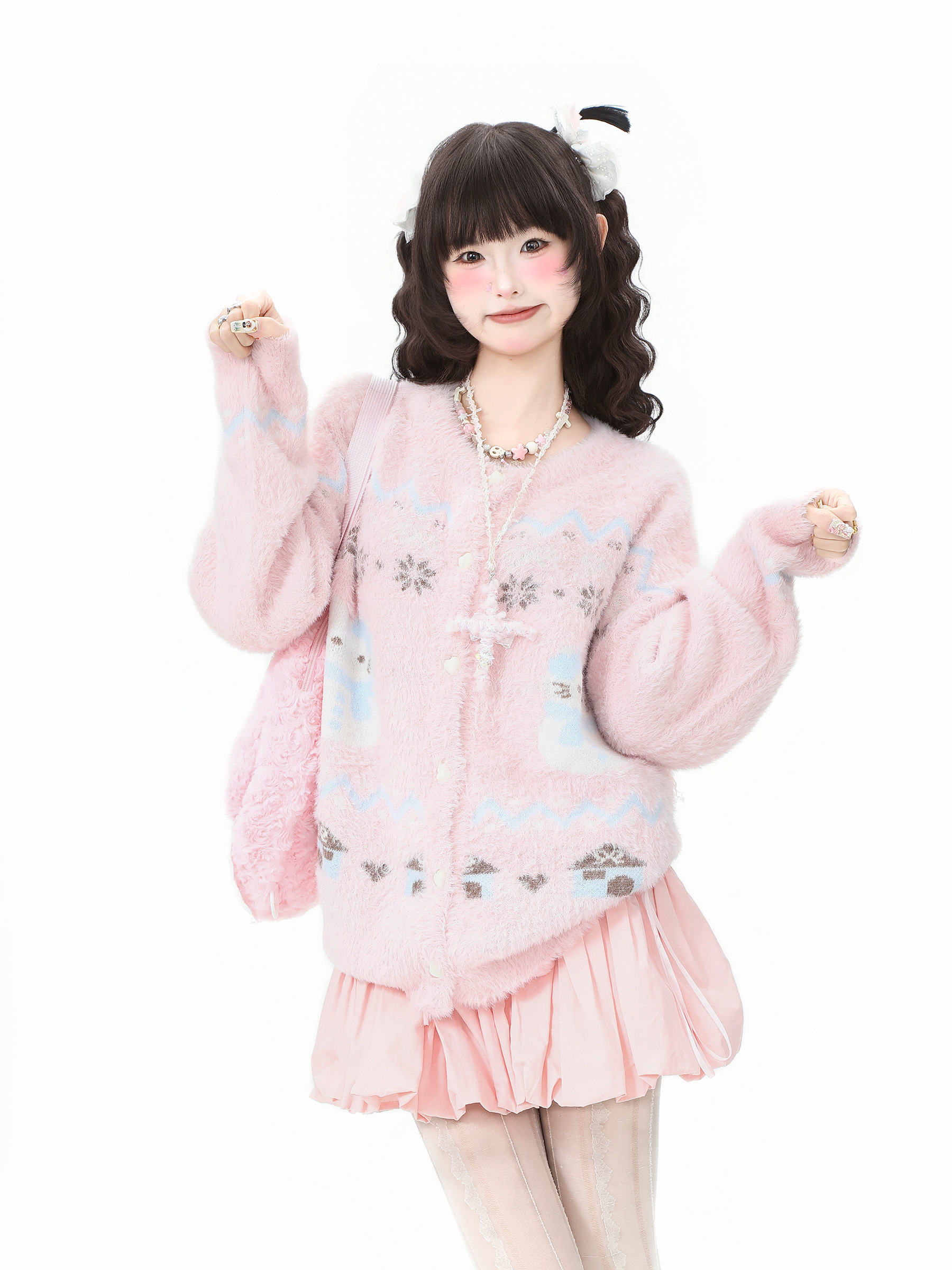 藍鬼公園Languid Park 水貂絨費爾島毛衣外套女秋季軟糯慵懶上衣