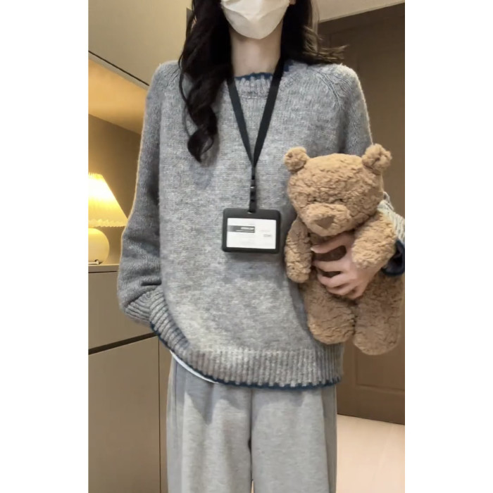 慵懶風高級感寬松灰色毛衣女秋冬季2025年新款內搭打底針織衫上衣