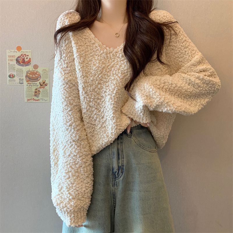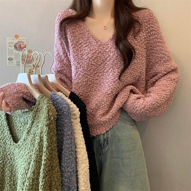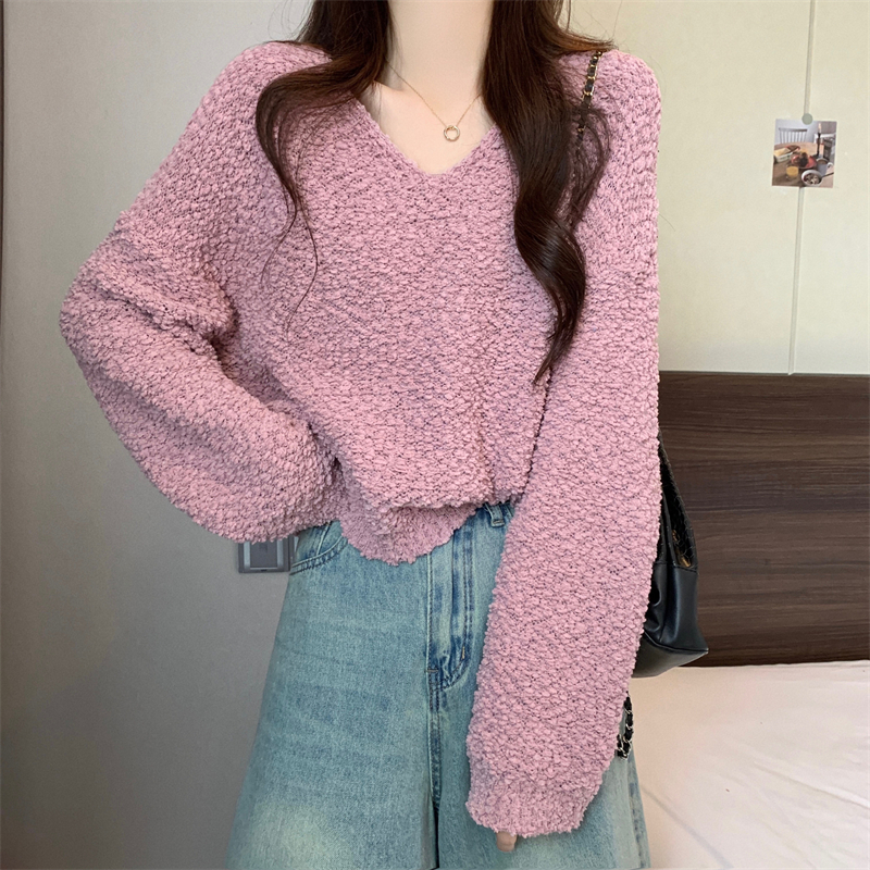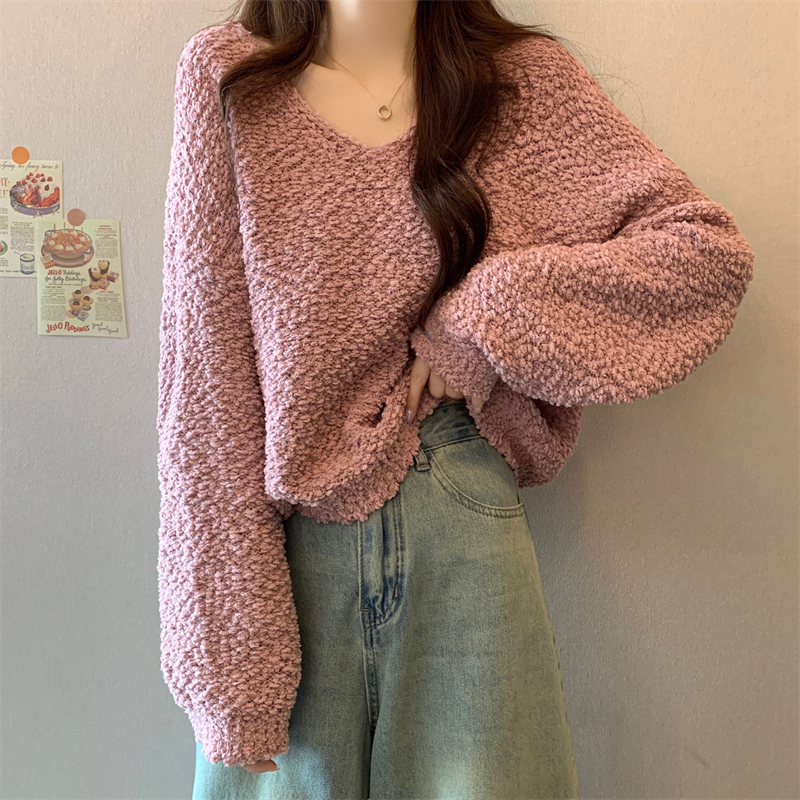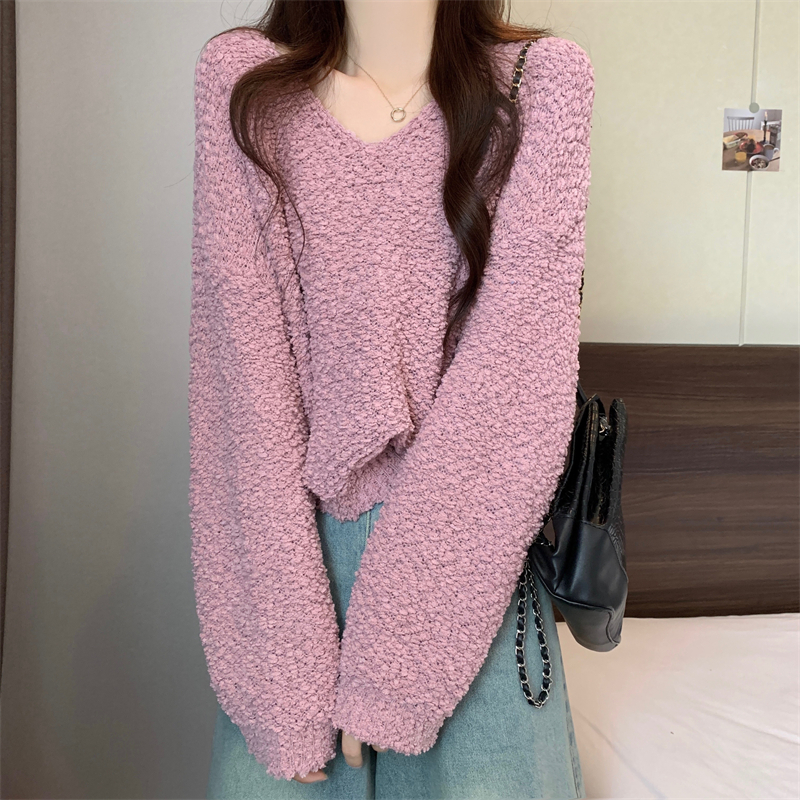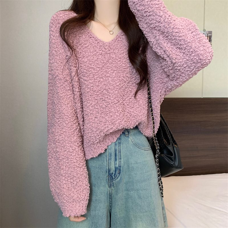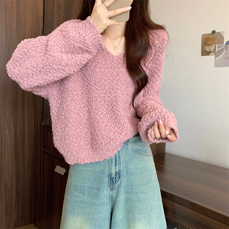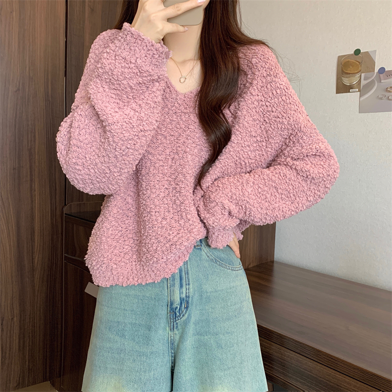 粉色v領毛衣女秋冬2025新款洋氣內搭慵懶風寬松顯瘦打底針織上衣