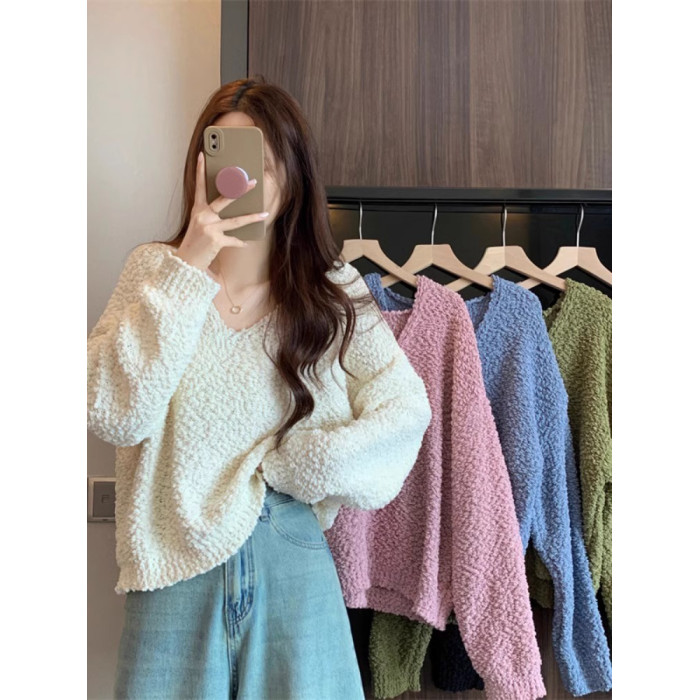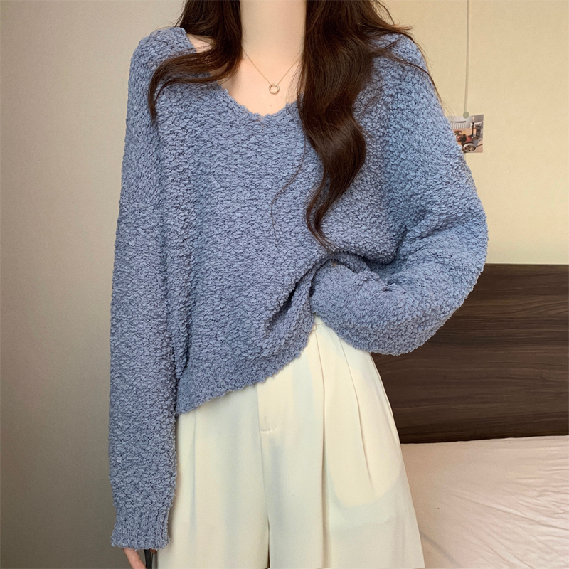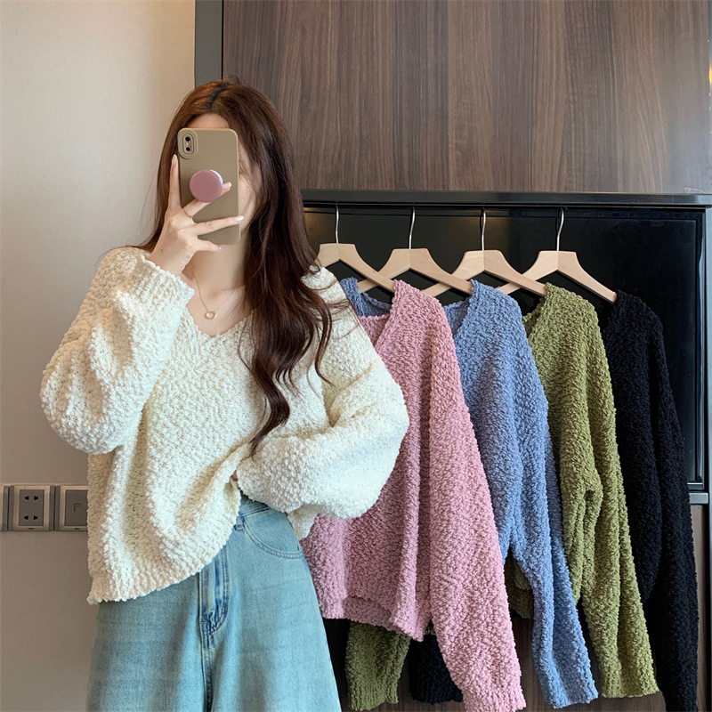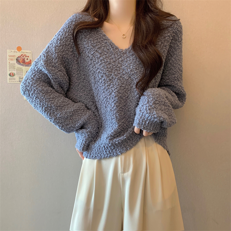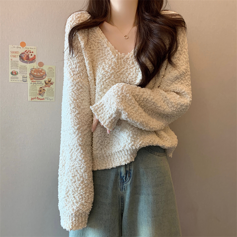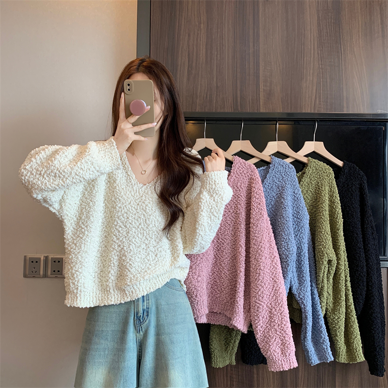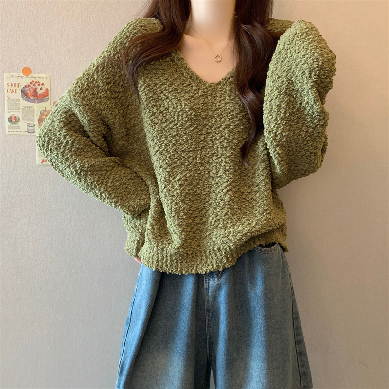 粉色v領毛衣女秋冬2025新款洋氣內搭慵懶風寬松顯瘦打底針織上衣