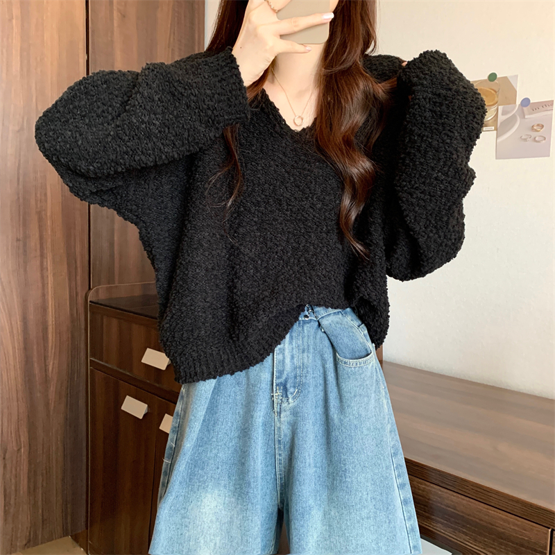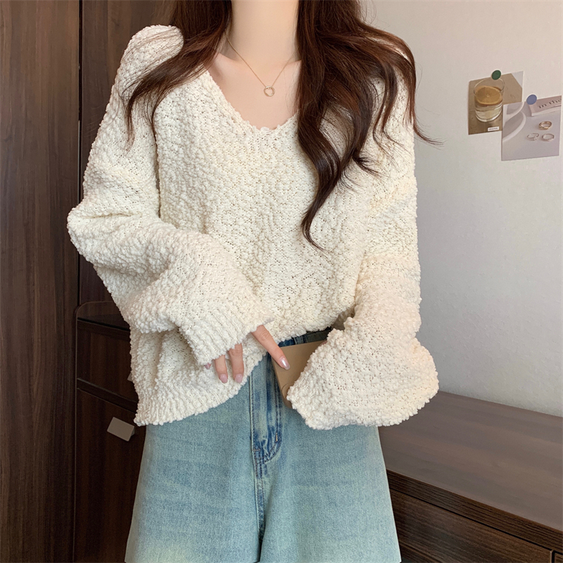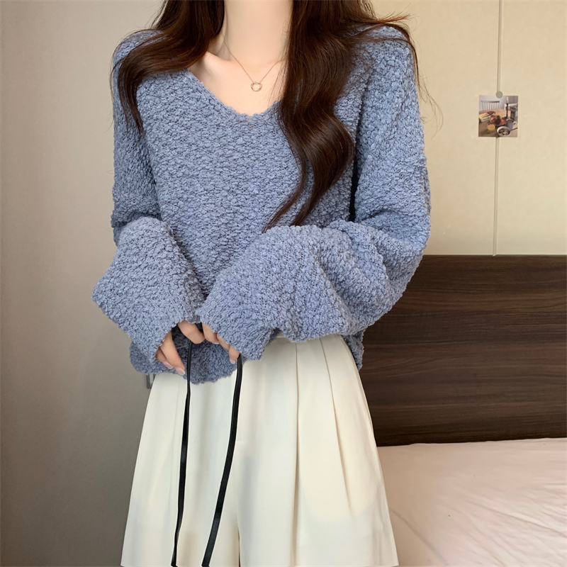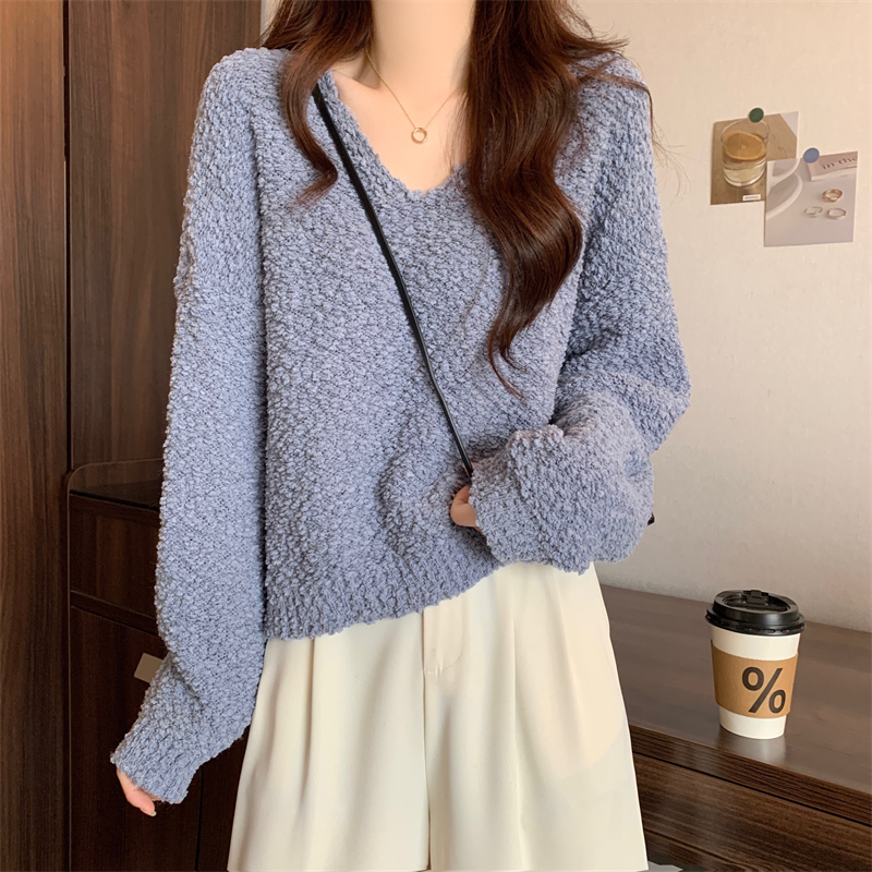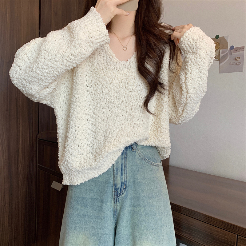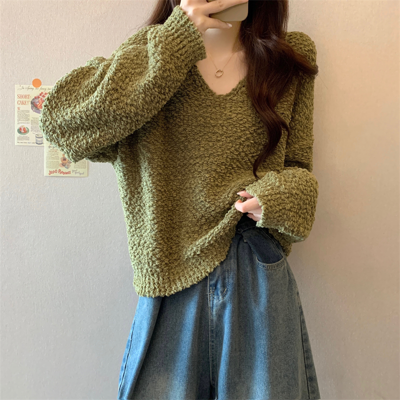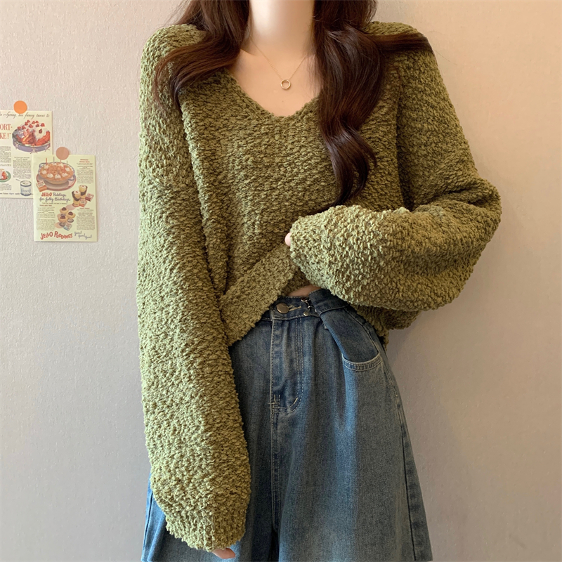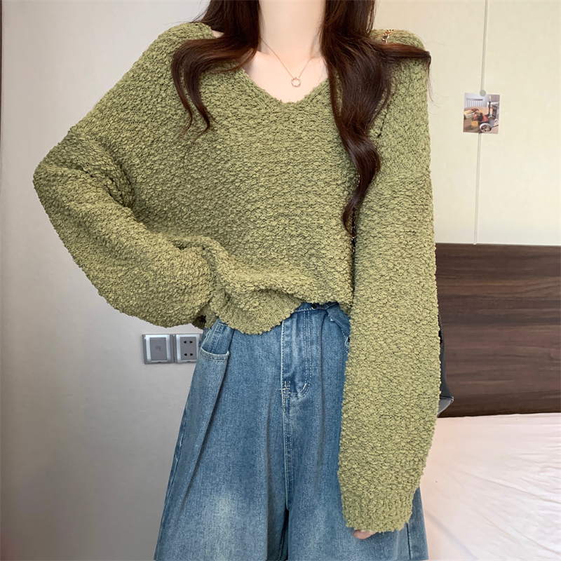 粉色v領毛衣女秋冬2025新款洋氣內搭慵懶風寬松顯瘦打底針織上衣