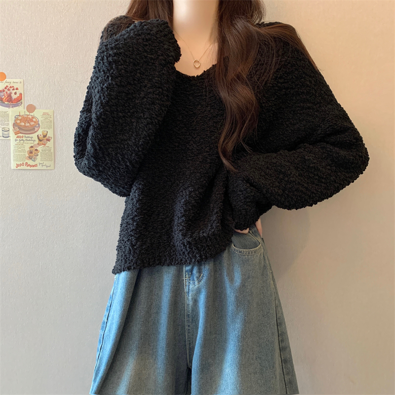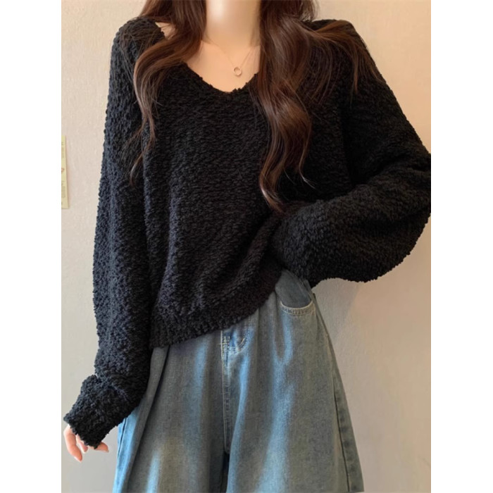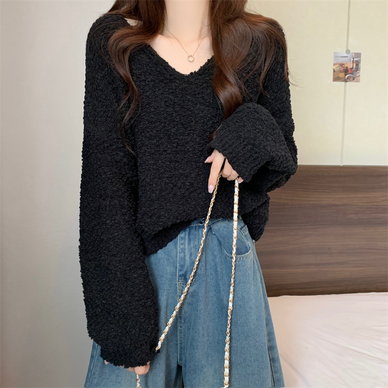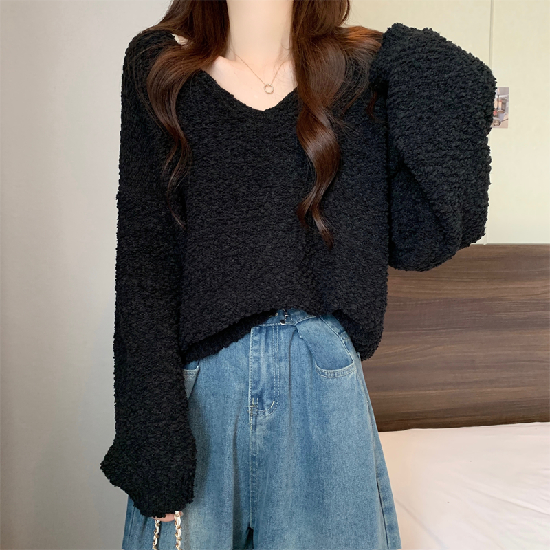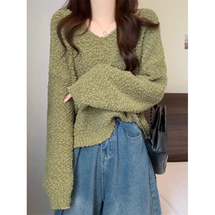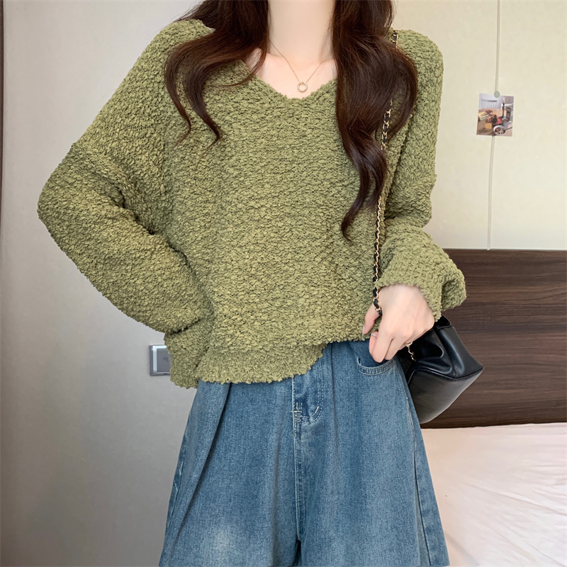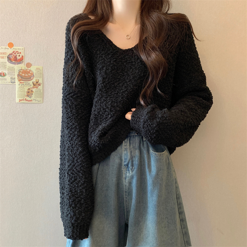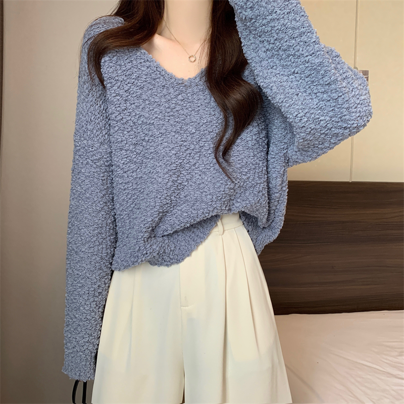 粉色v領毛衣女秋冬2025新款洋氣內搭慵懶風寬松顯瘦打底針織上衣