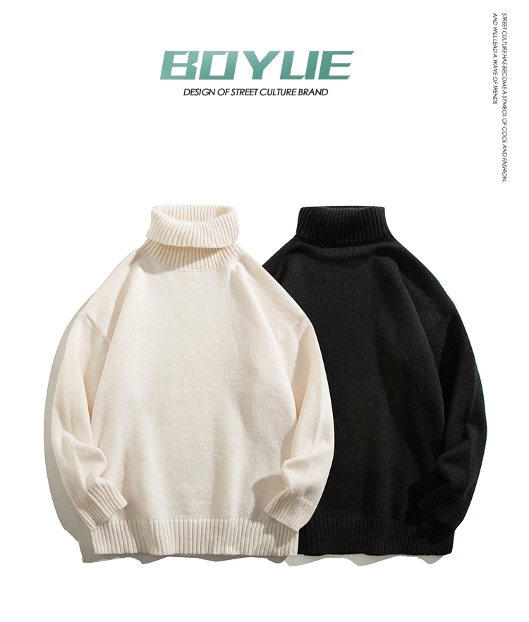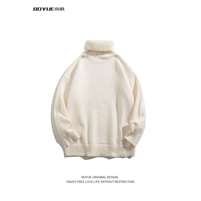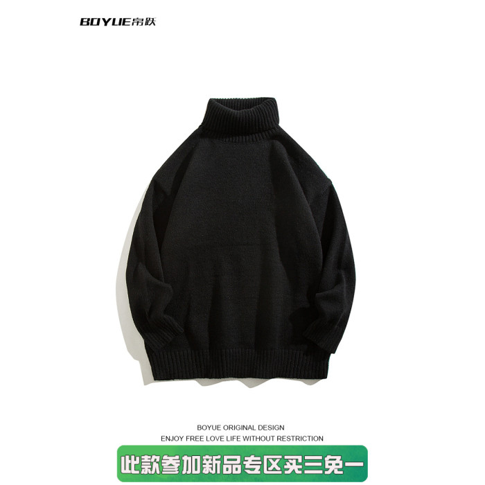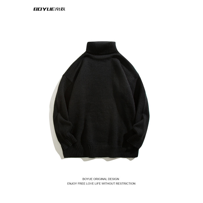 BOYUE帛躍冬季高領純色長袖毛衣簡約時尚百搭寬松休閒針織衫男女
