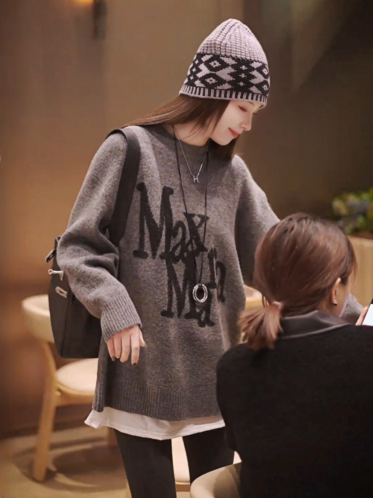 針織毛衣秋冬女款2025新款冬季遮屁股洋氣獨特漂亮中長款高檔上衣