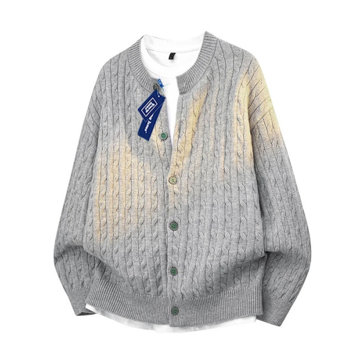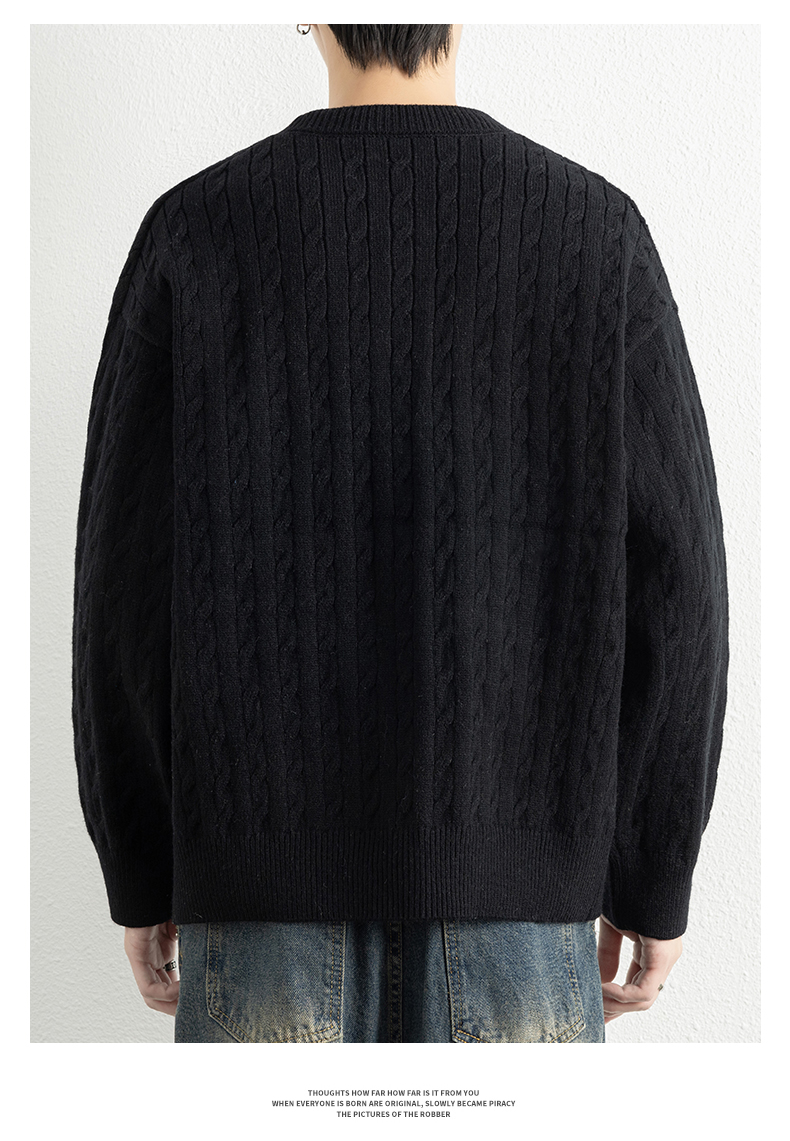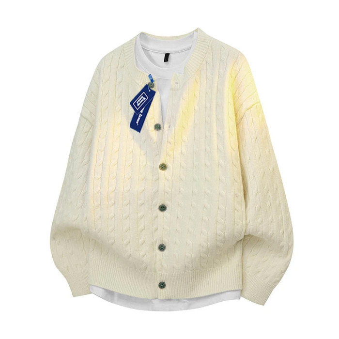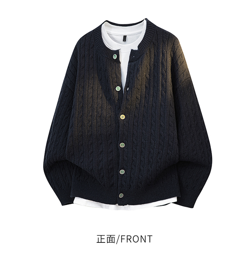 大碼圓領開衫毛衣男秋冬新款保暖肌理感針織衫外套簡約基礎款上衣