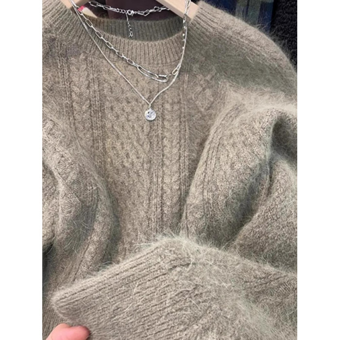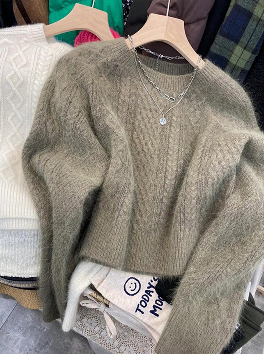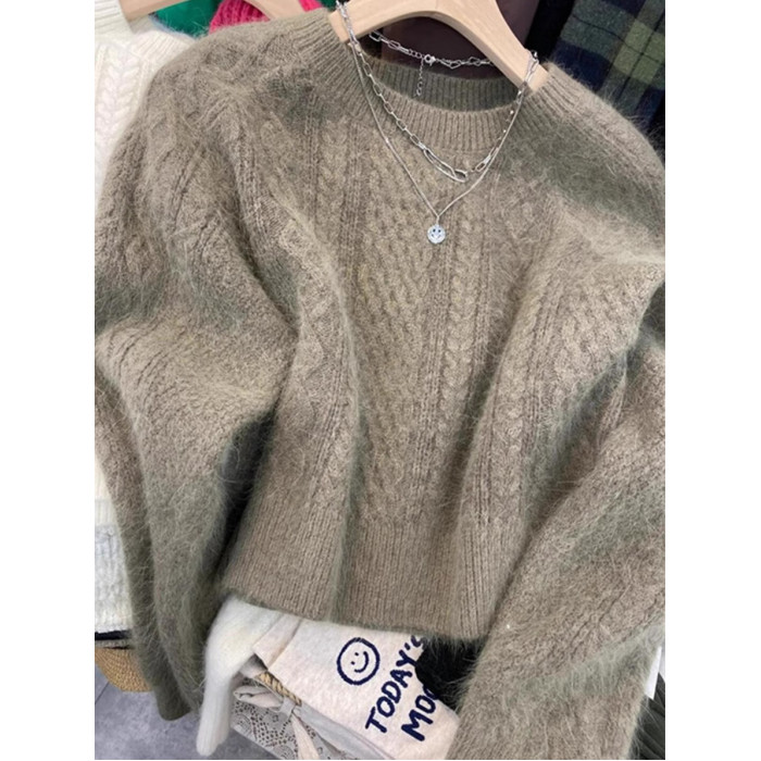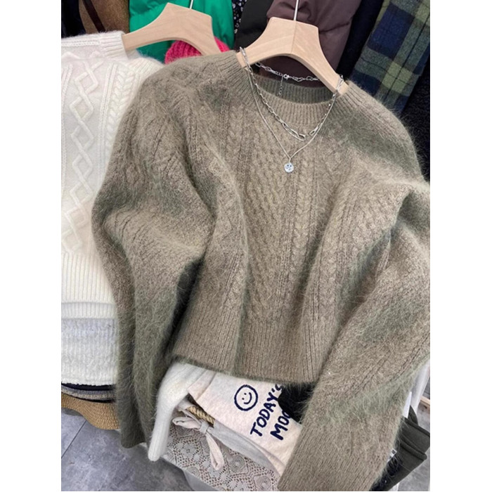 高級感復古短款毛衣女秋冬灰色針織衫加厚打底衫女小個子氣質上衣