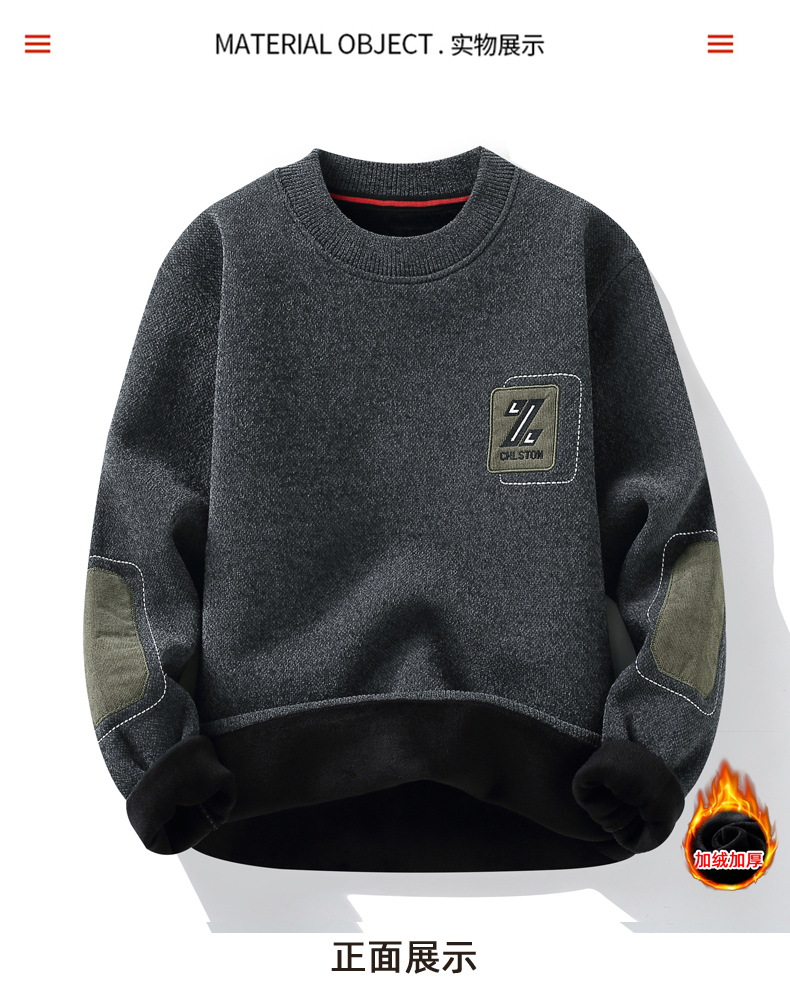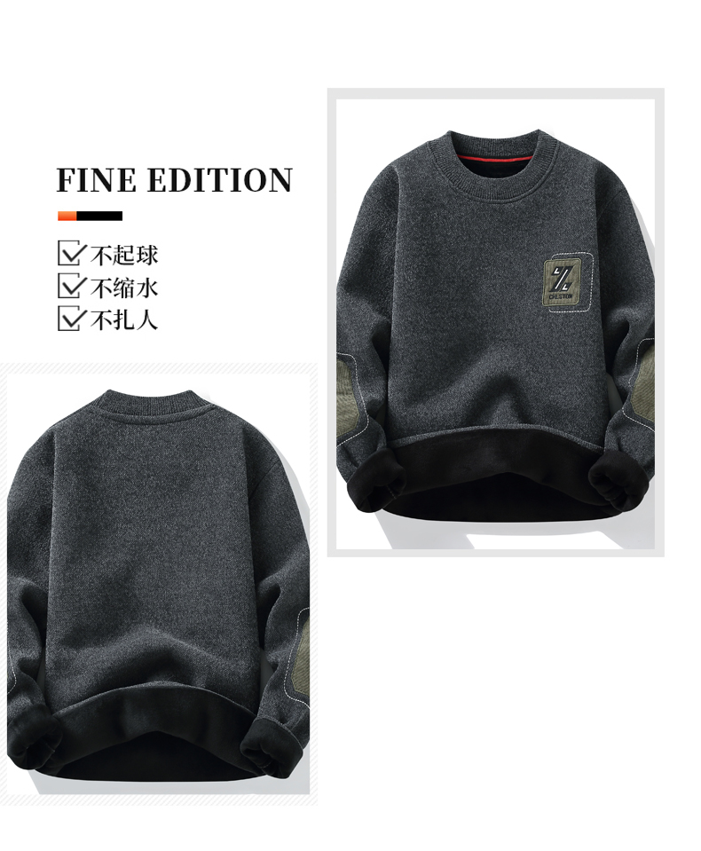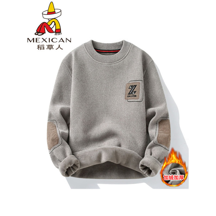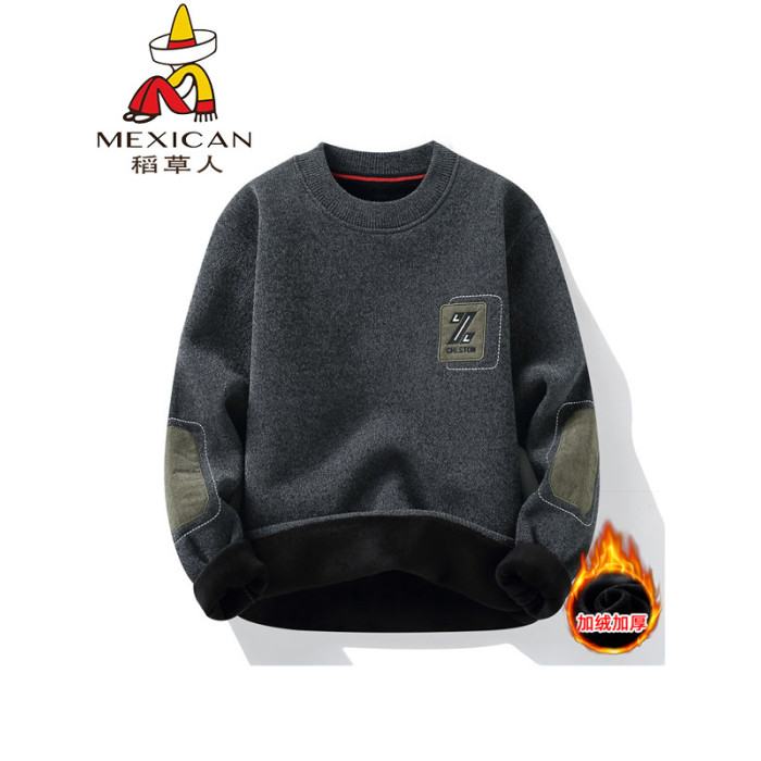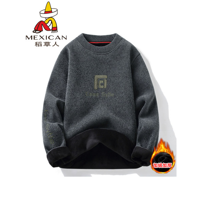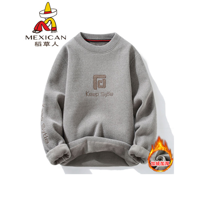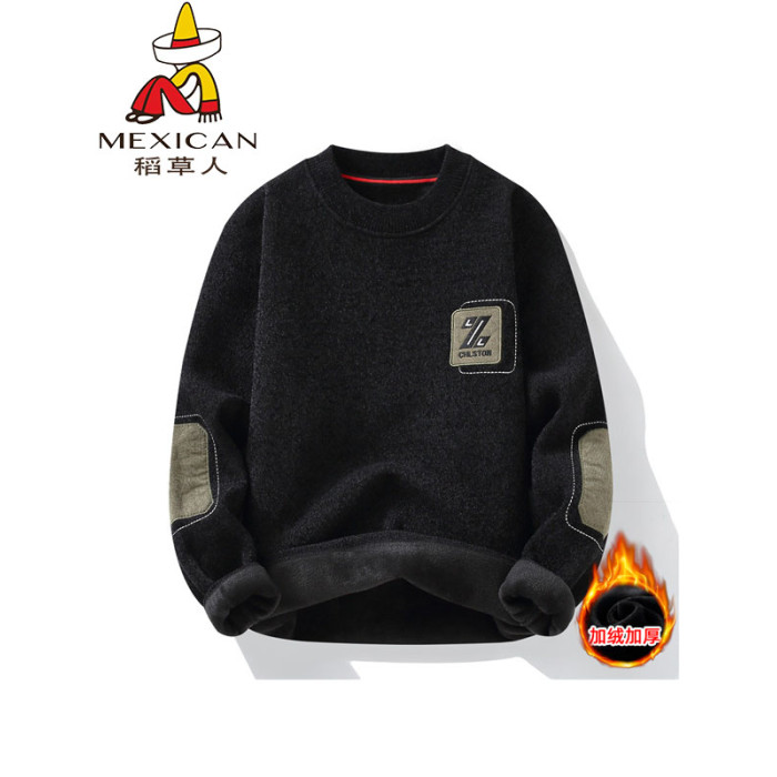稻草人男士毛衣25秋冬季一體絨圓領針織打底衫加絨加厚時尚毛線衫