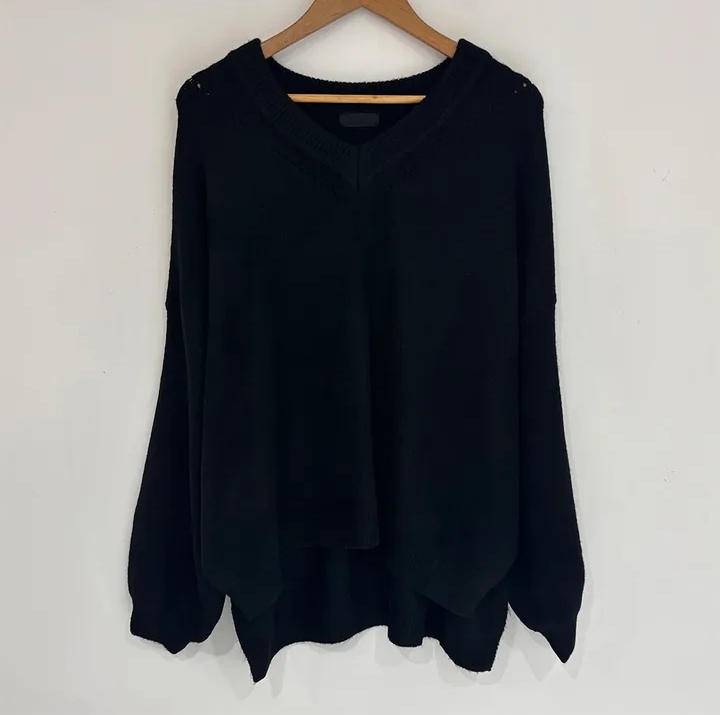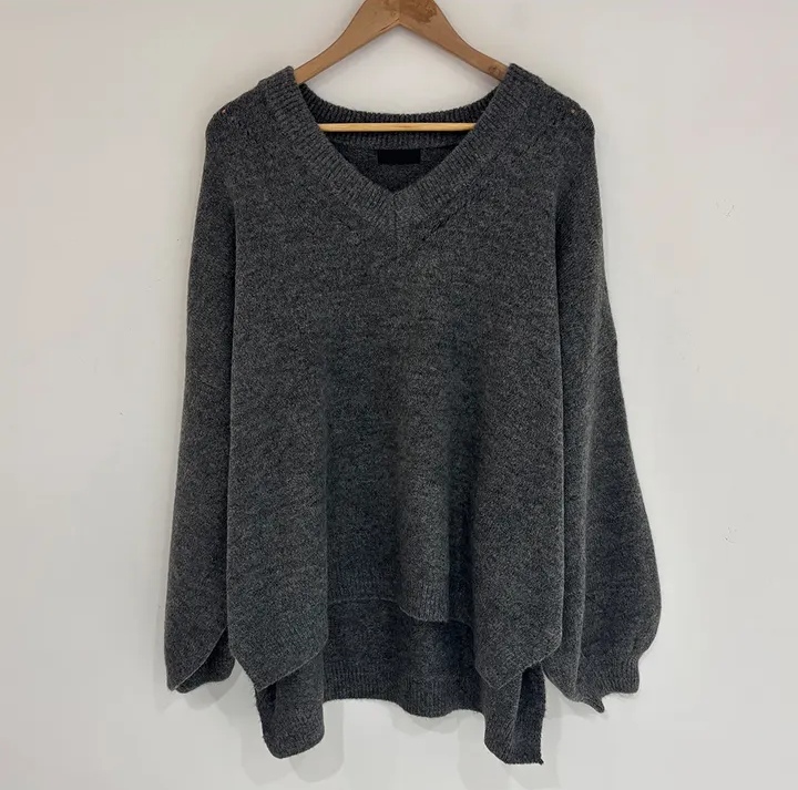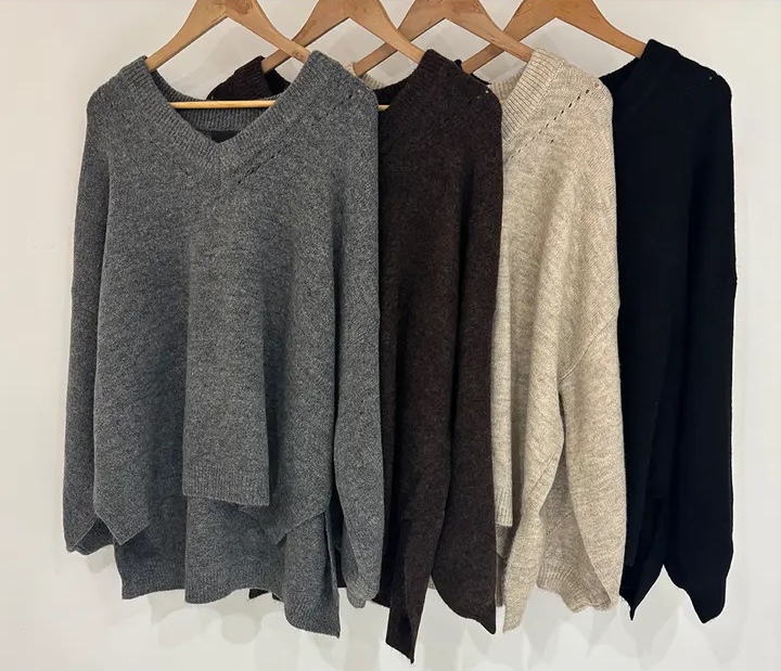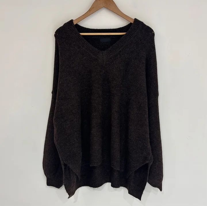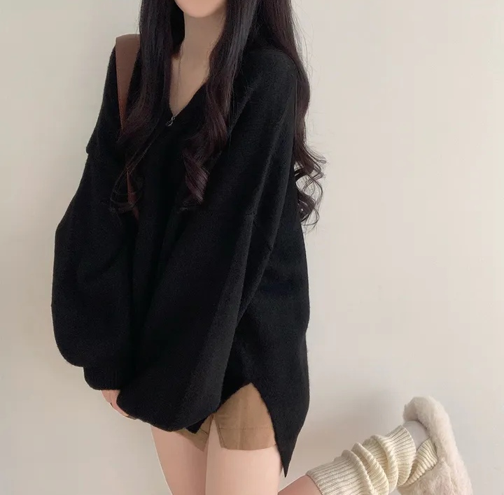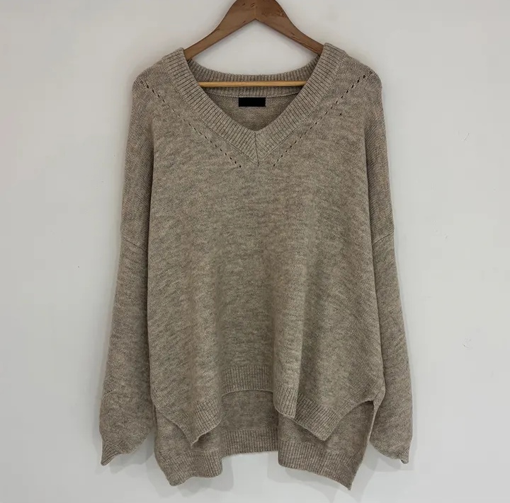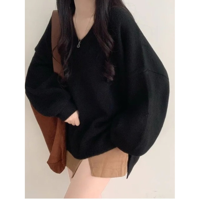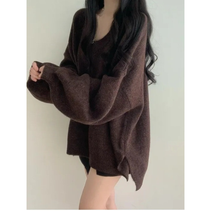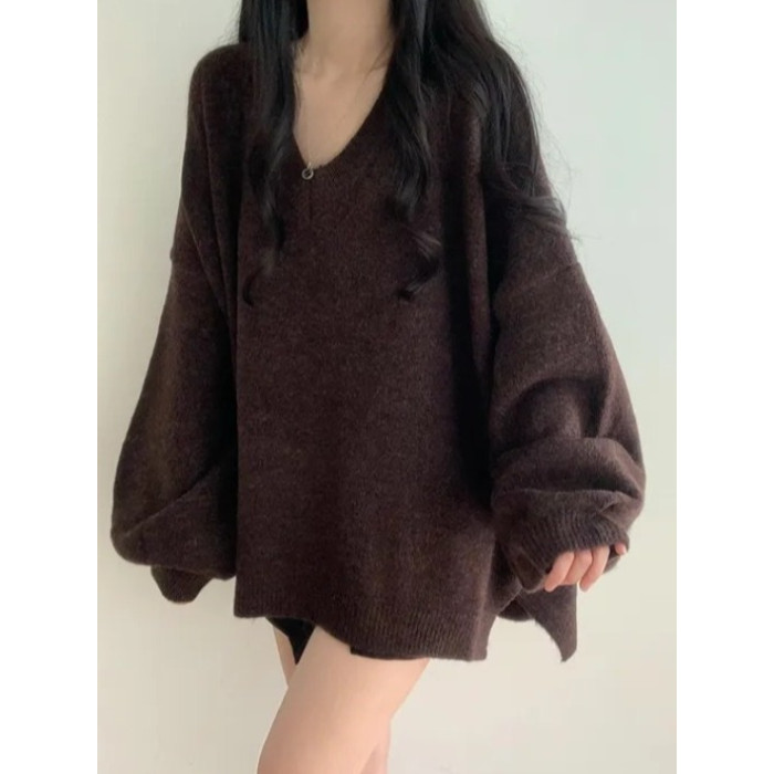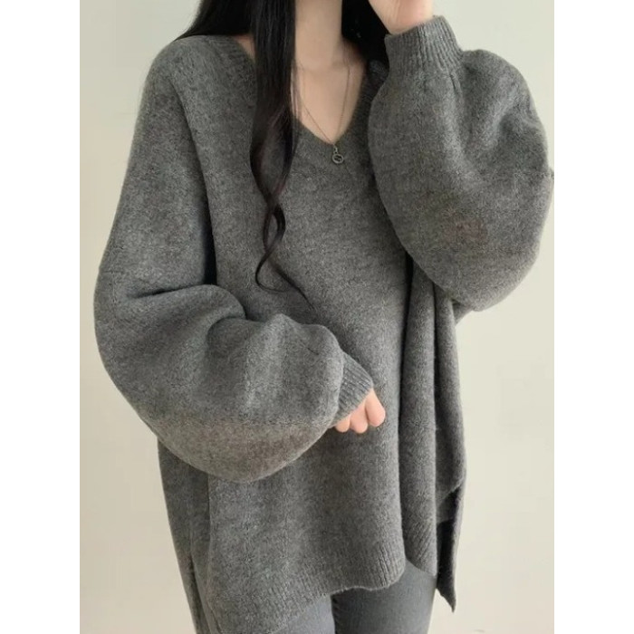 氣質獨特V領正肩針織毛衣女冬季大碼胖mm慵懶風中長款打底衫上衣