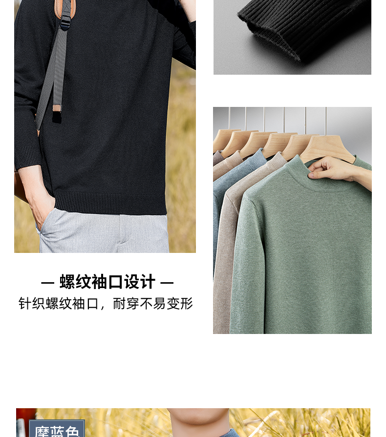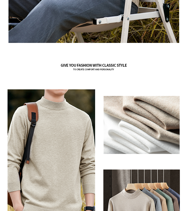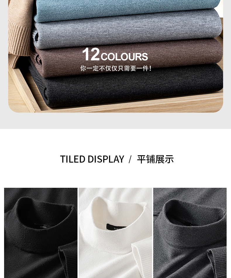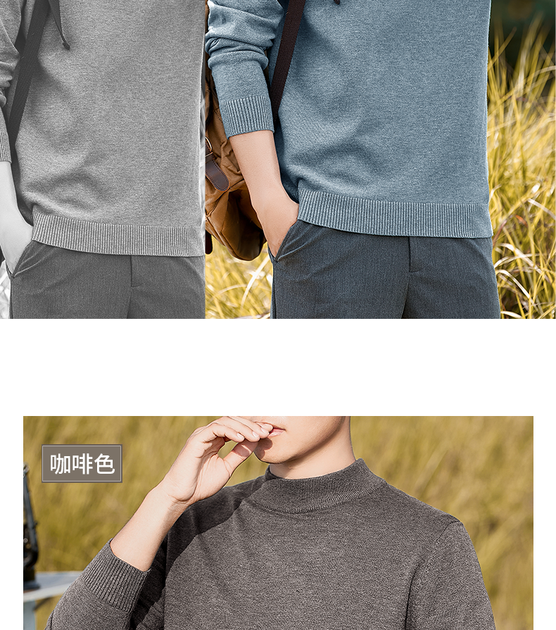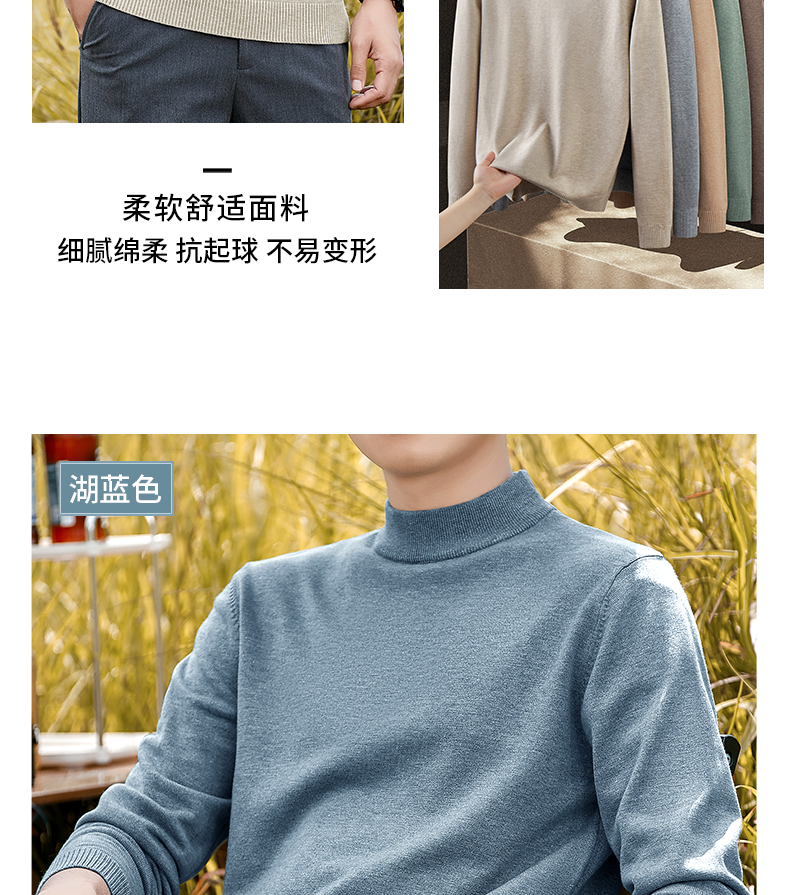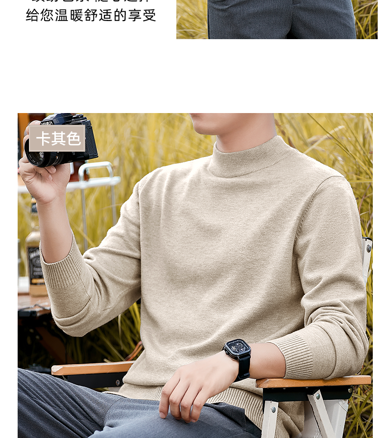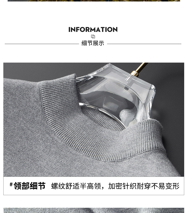 【可機洗】半高領毛衣男秋冬中領加絨加厚打底衫保暖針織衫毛線衣