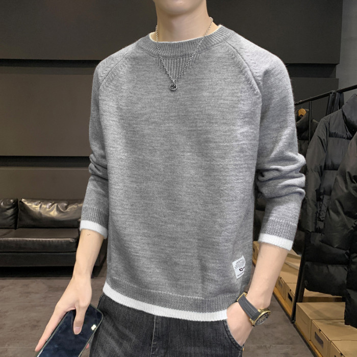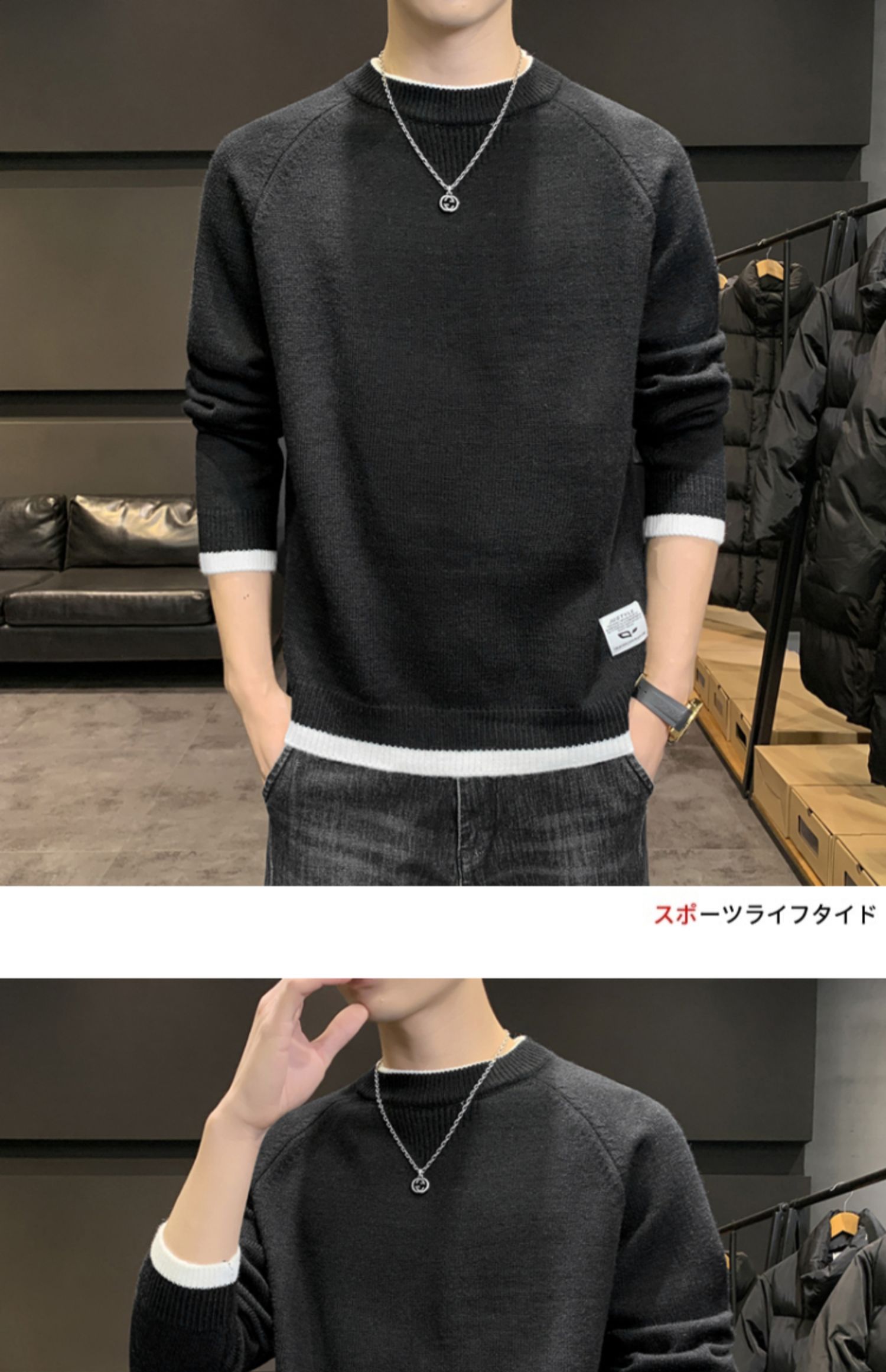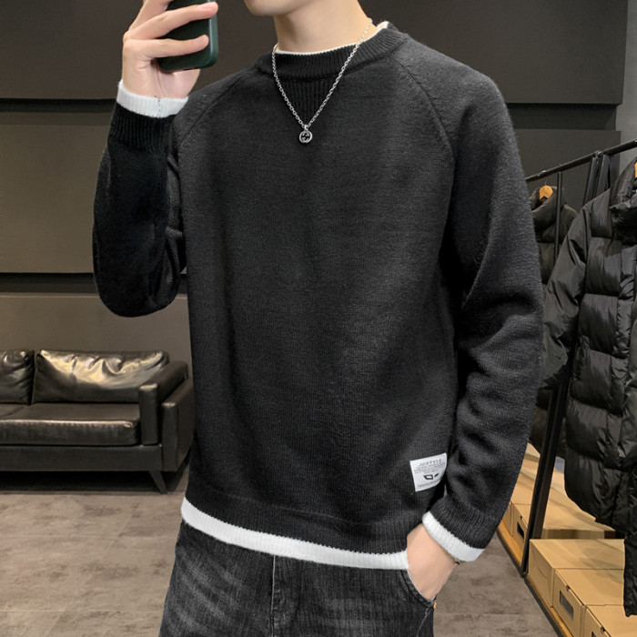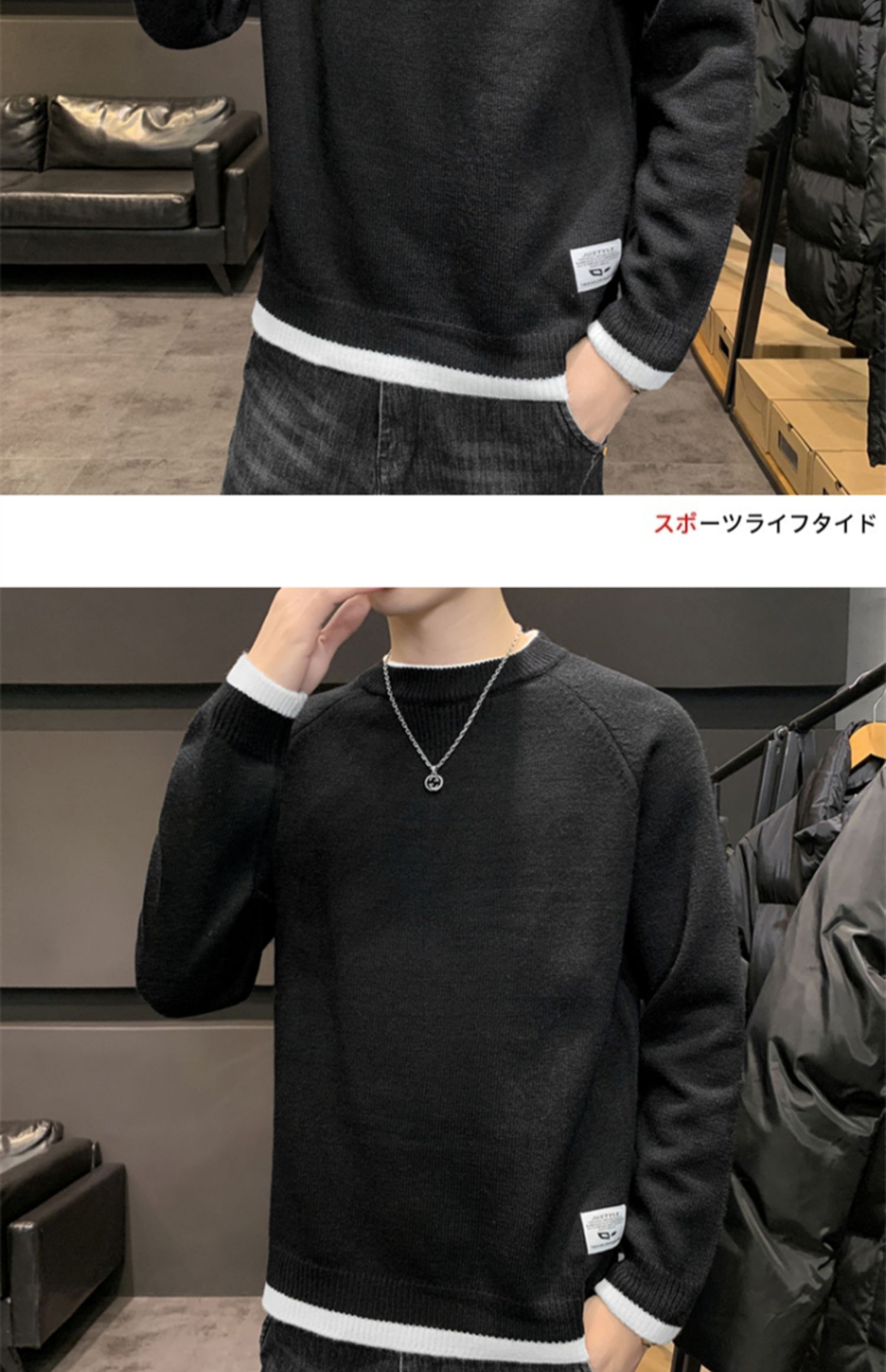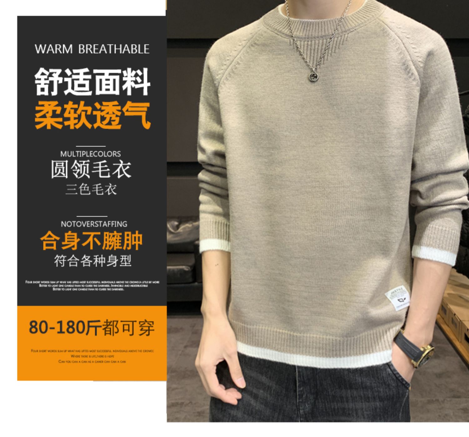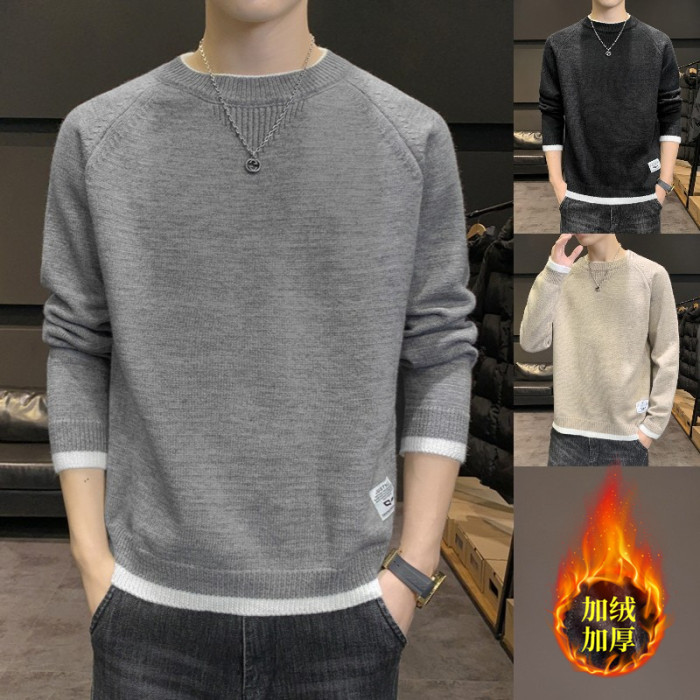 雪尼爾毛衣男秋冬季一體加絨加厚款圓領打底衫男士保暖上衣內搭潮