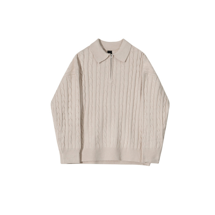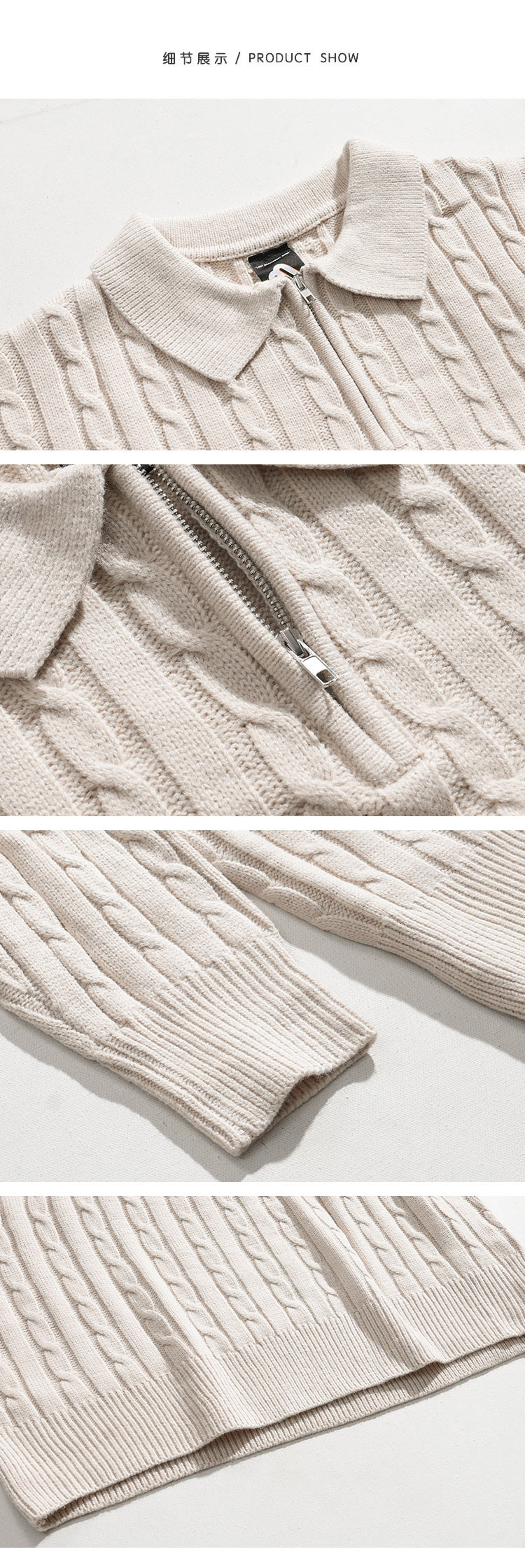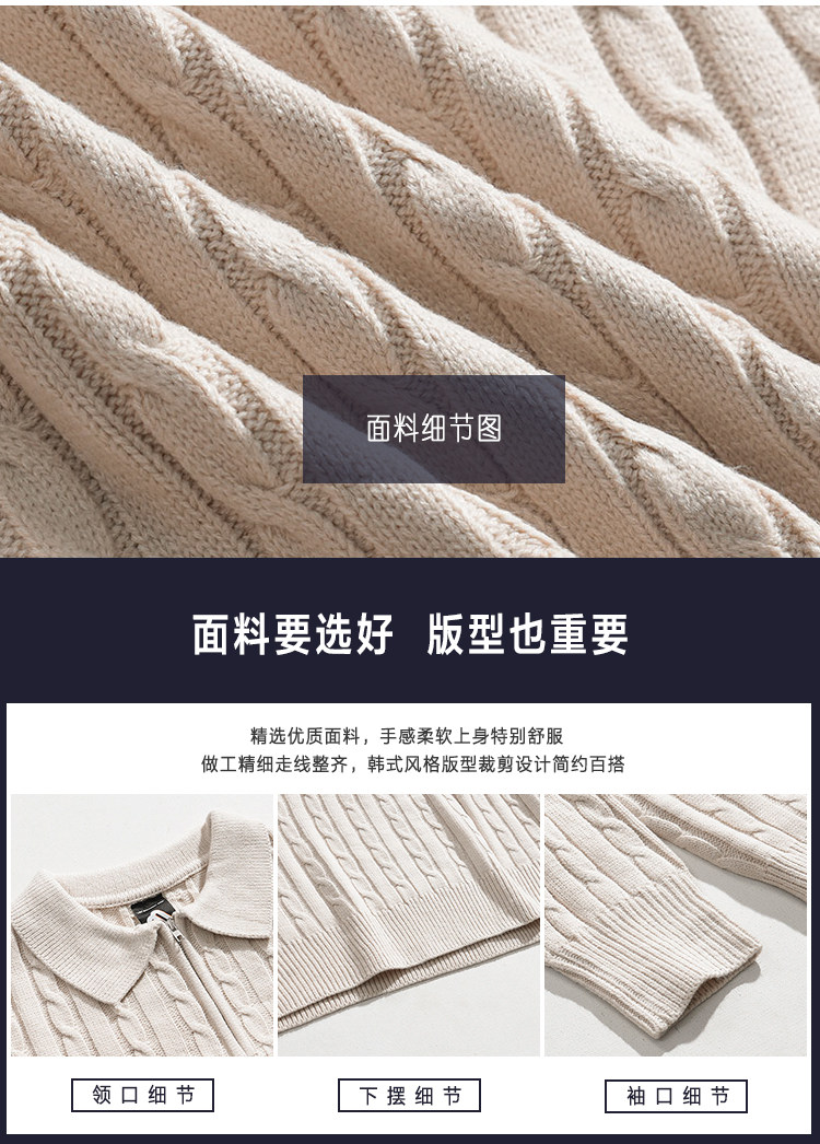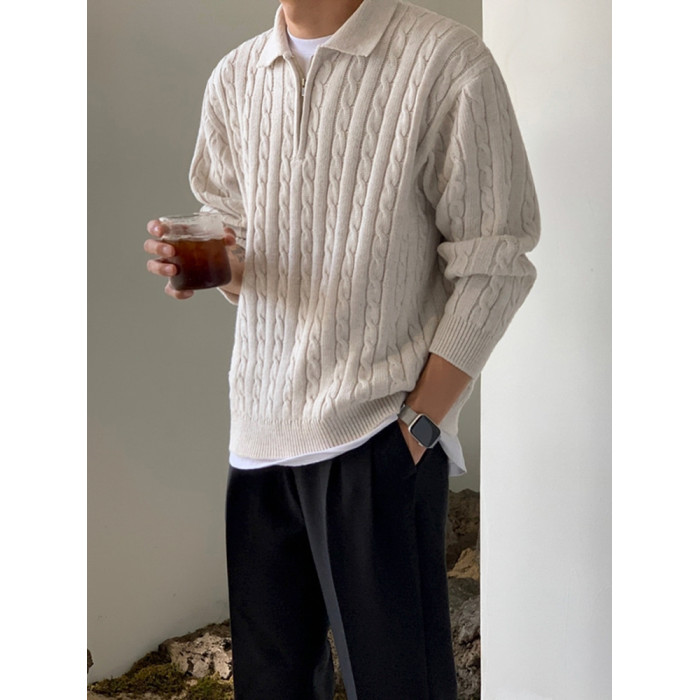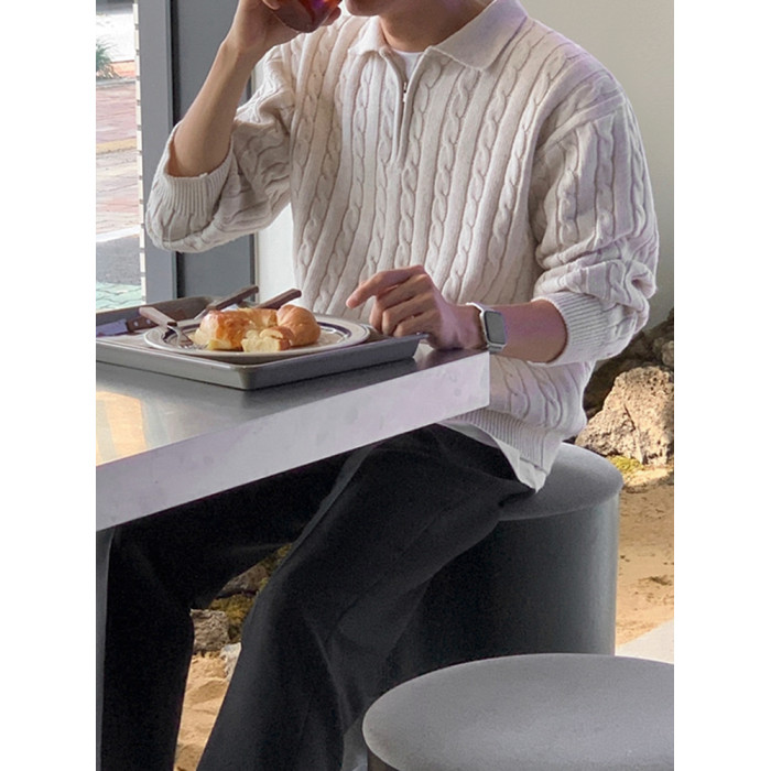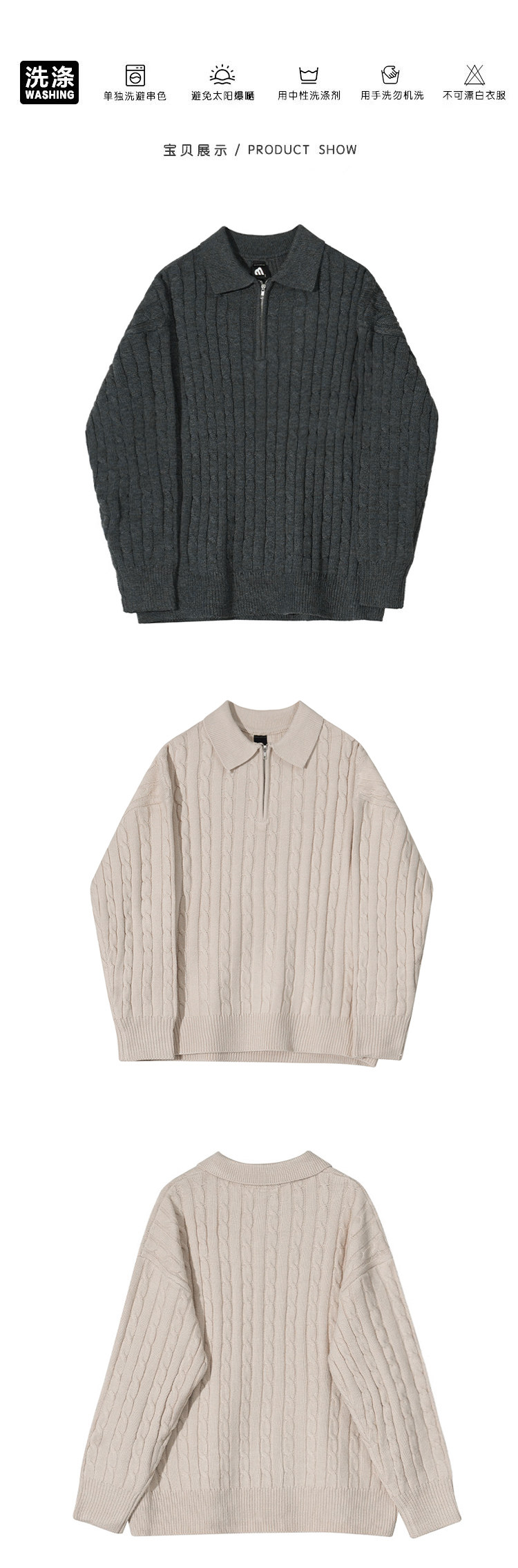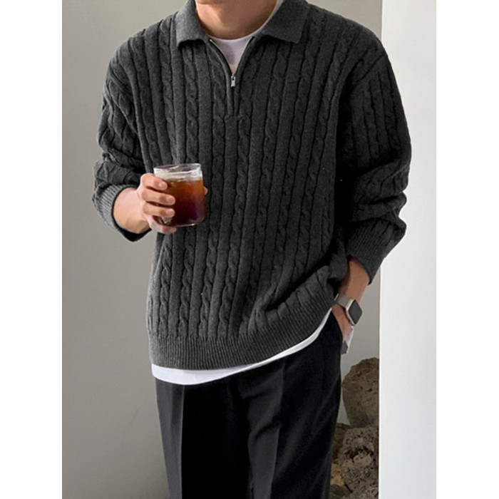 MRCYC半拉鍊麻花針織衫秋季男裝韓系寬鬆百搭設計感繙領套頭毛衣