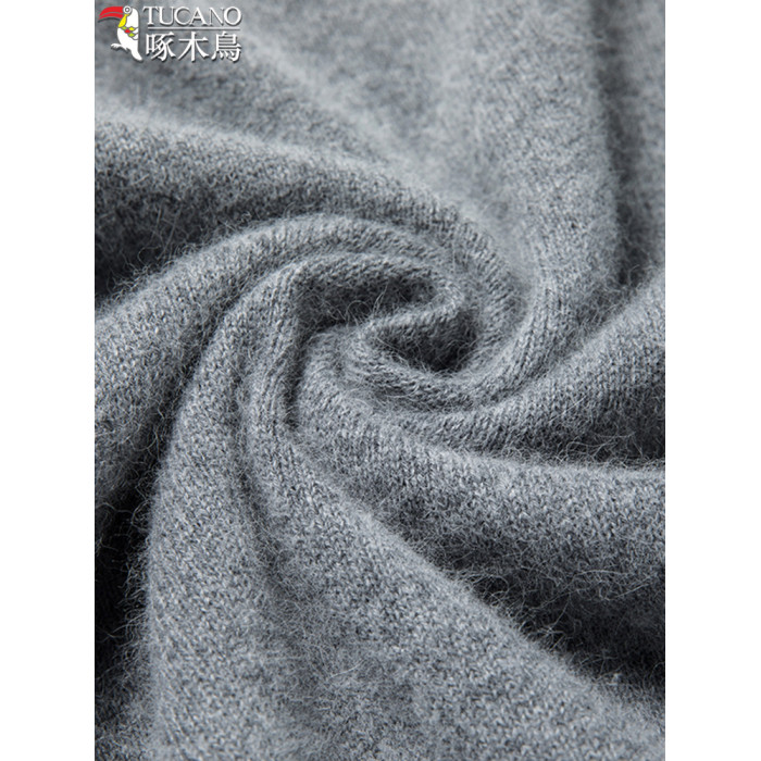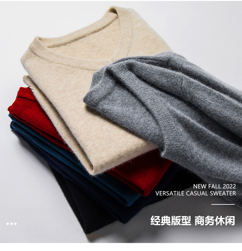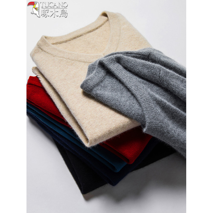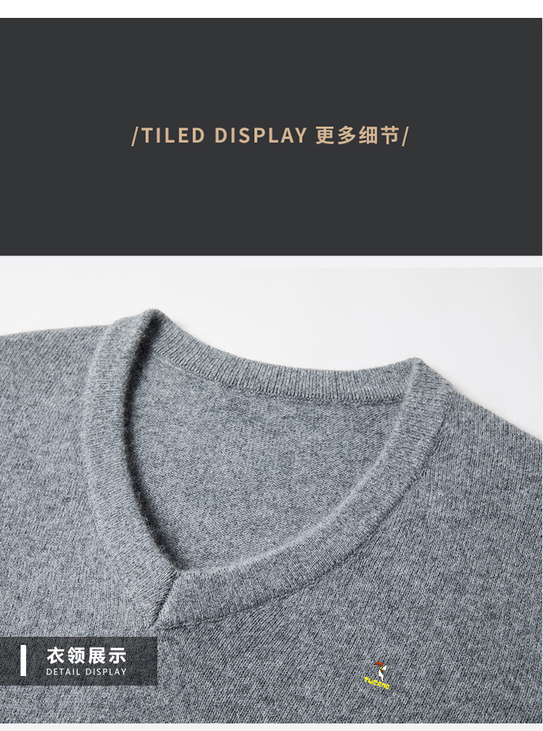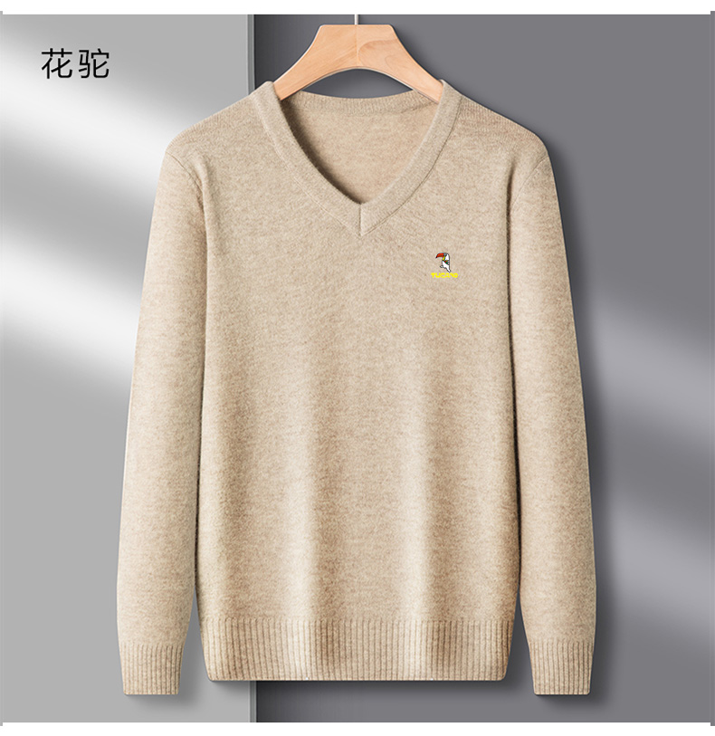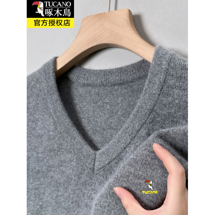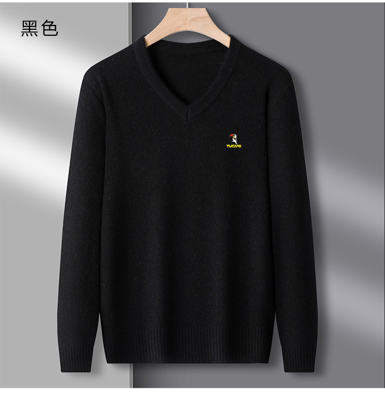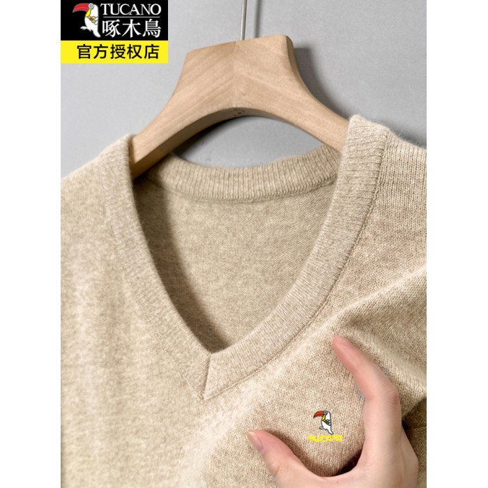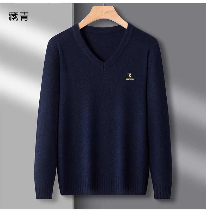 啄木鳥秋冬季加厚男士V領毛衣羊毛衫爸爸裝針織衫羊絨保暖打底衫