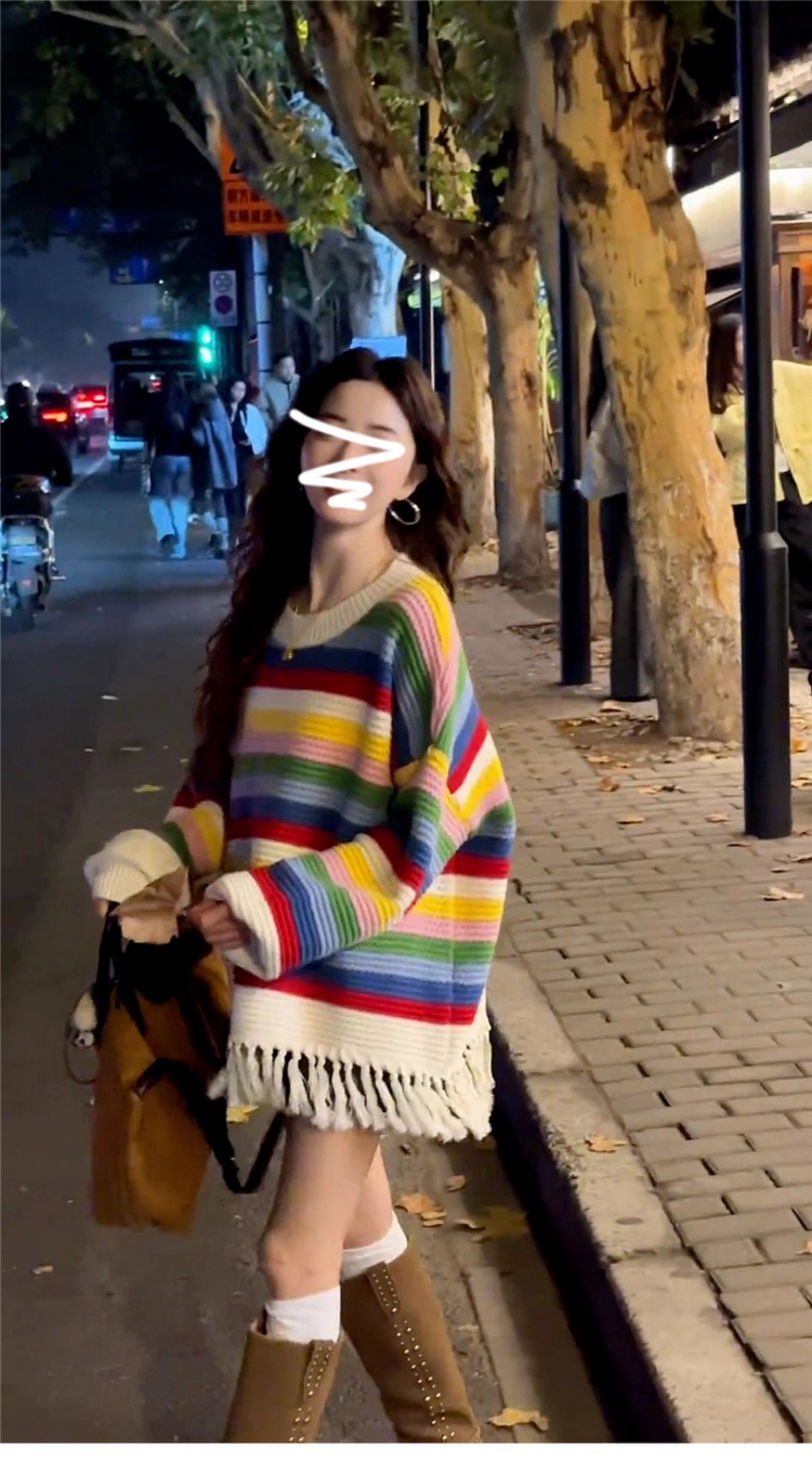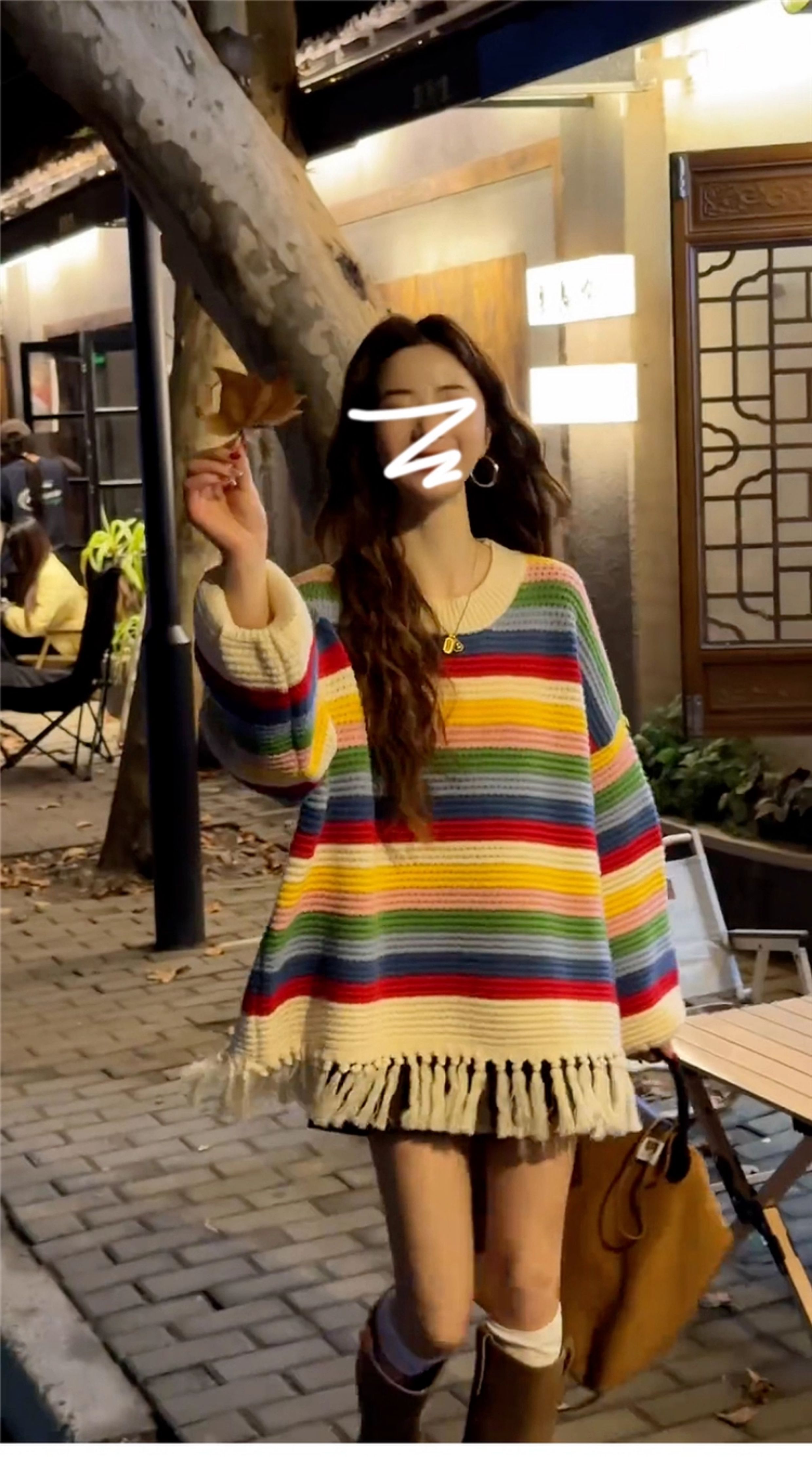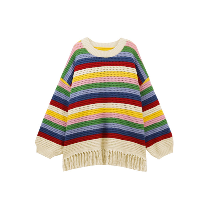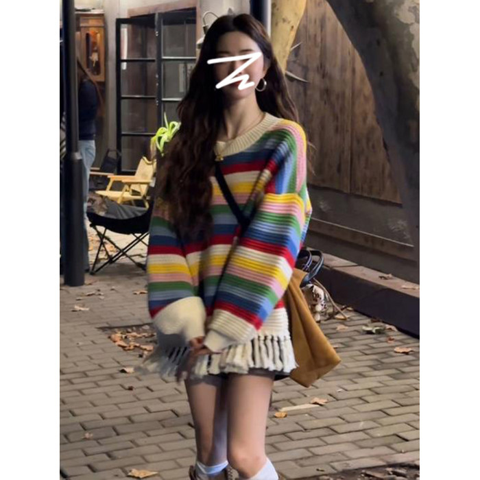 2025新款慵懶風彩虹條紋針織毛衣女秋冬季內搭高級感寬松加厚上衣