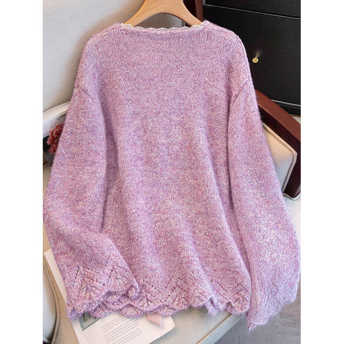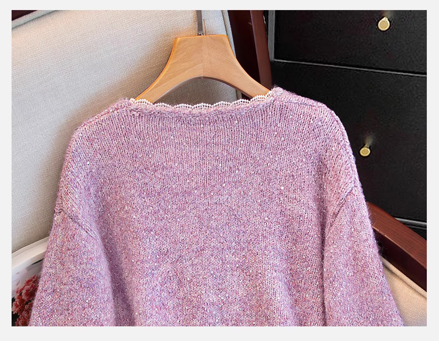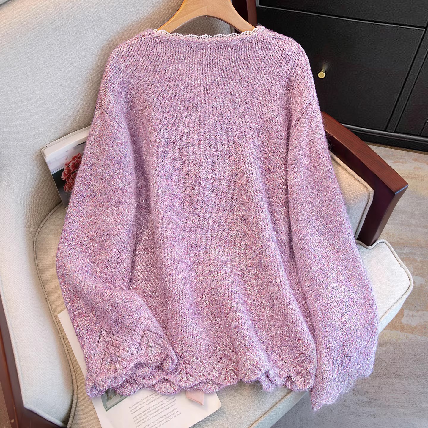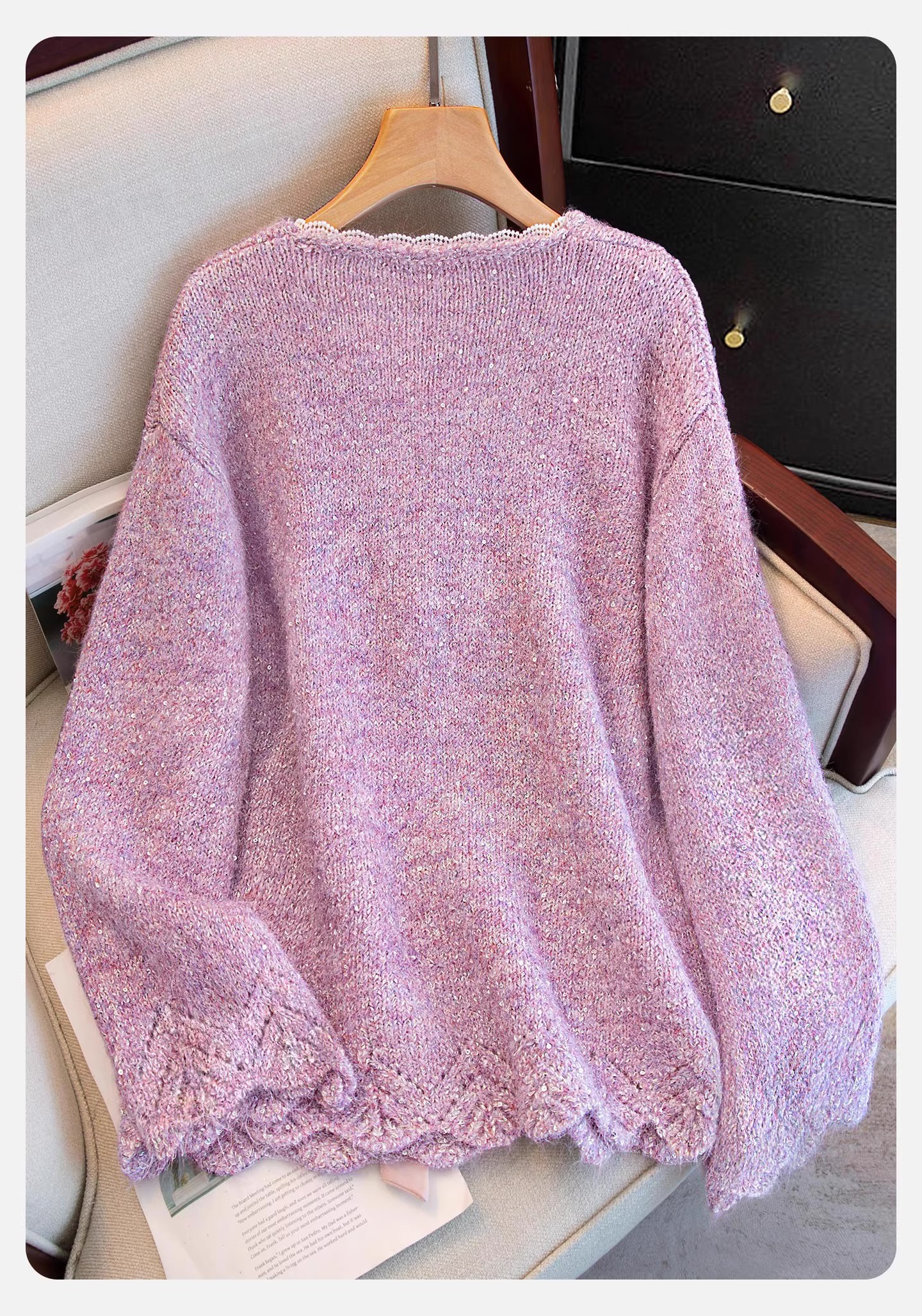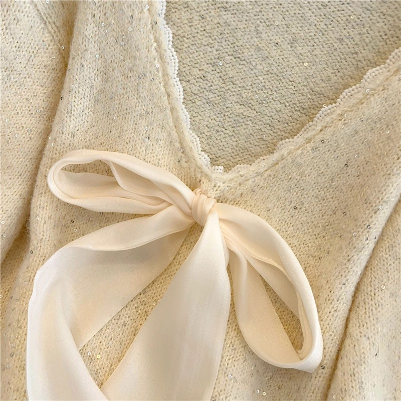 法式高級感大蝴蝶結V領毛衣女2025秋季大碼胖mm中長款針織衫上衣